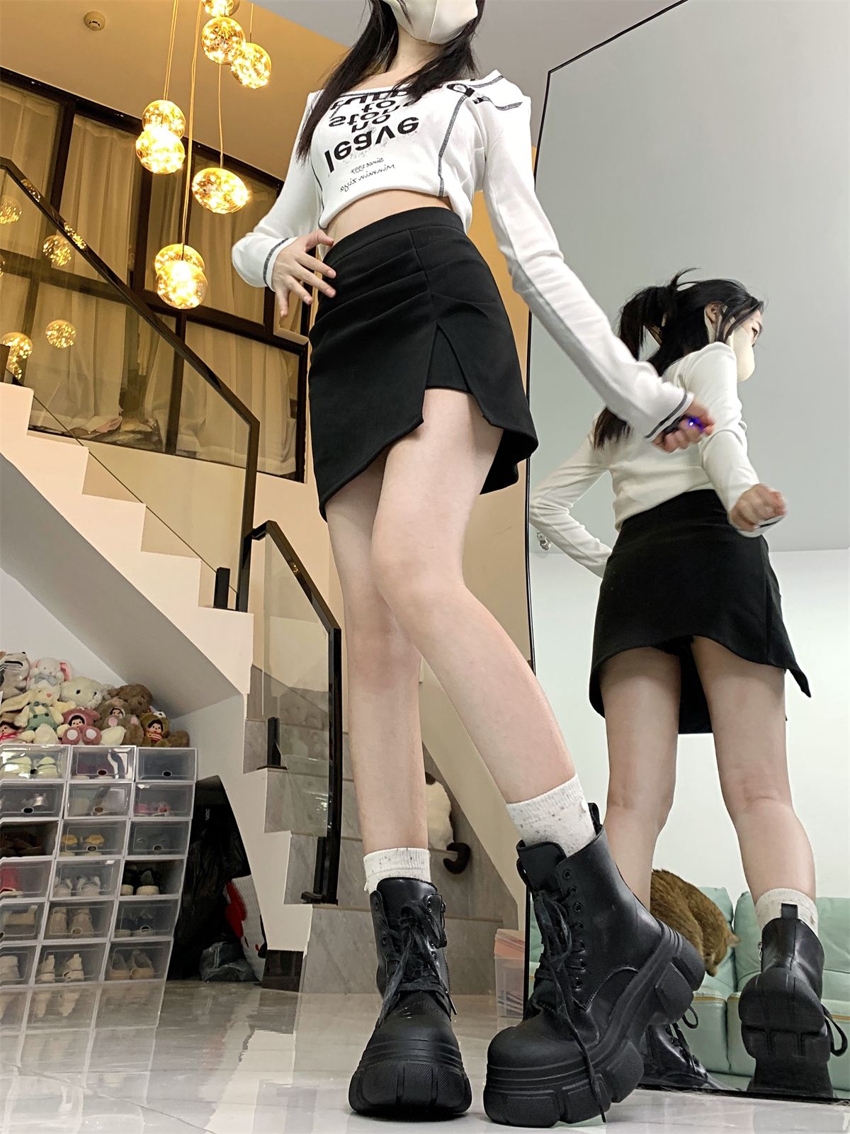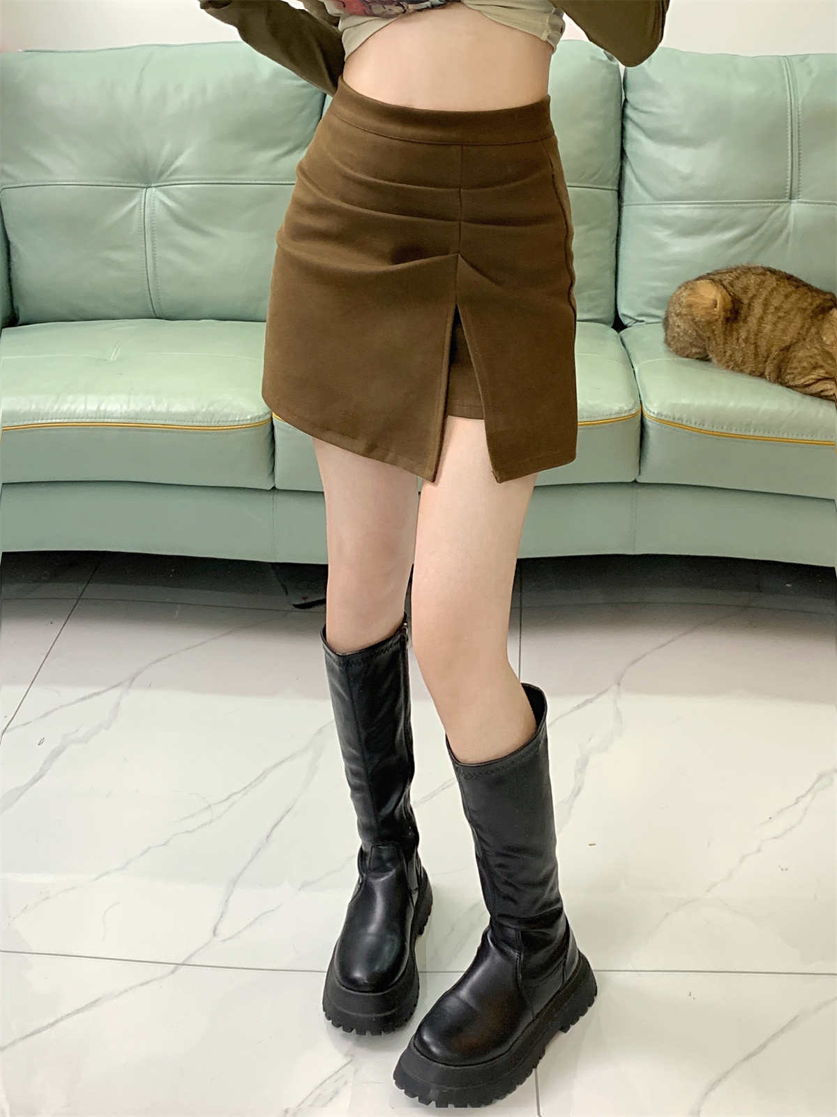 Plus-Size Woolen Design Pleated Slit Skirt for Women 2025 Autumn and Winter New High-Waisted Short Skirt for Petite Women