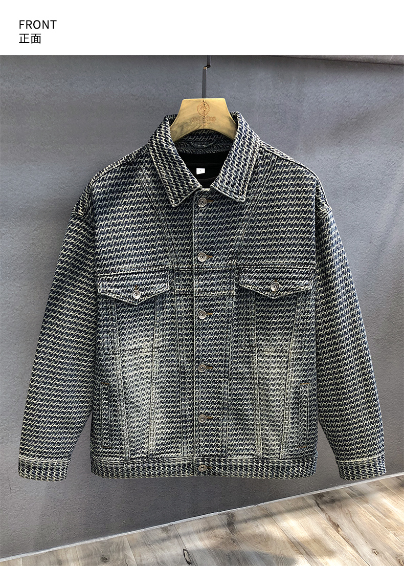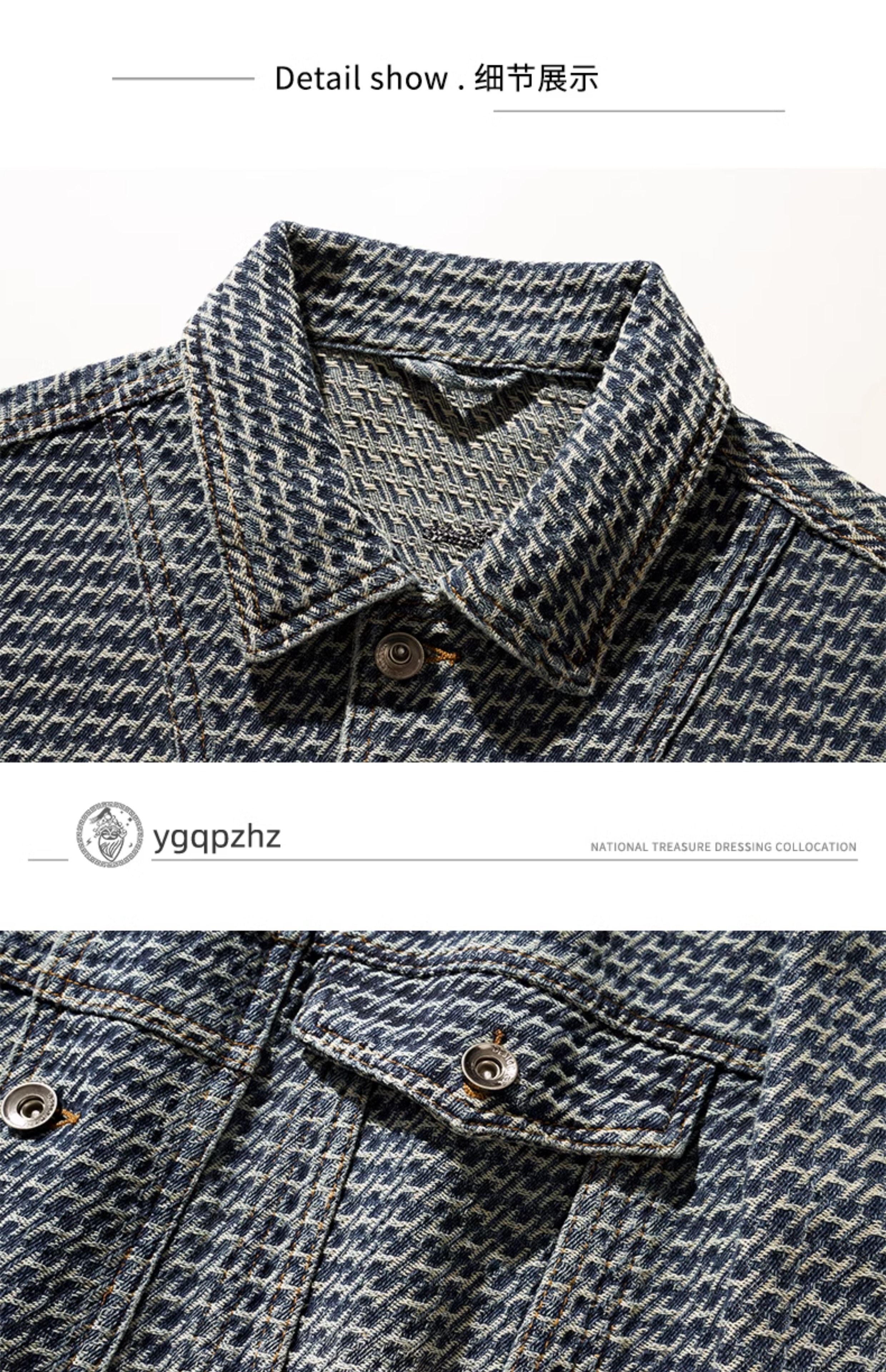 French Niche Style Retro Jacquard Craft Washed Denim Jacket for Men 2025 New Loose Workwear Jacket for Men