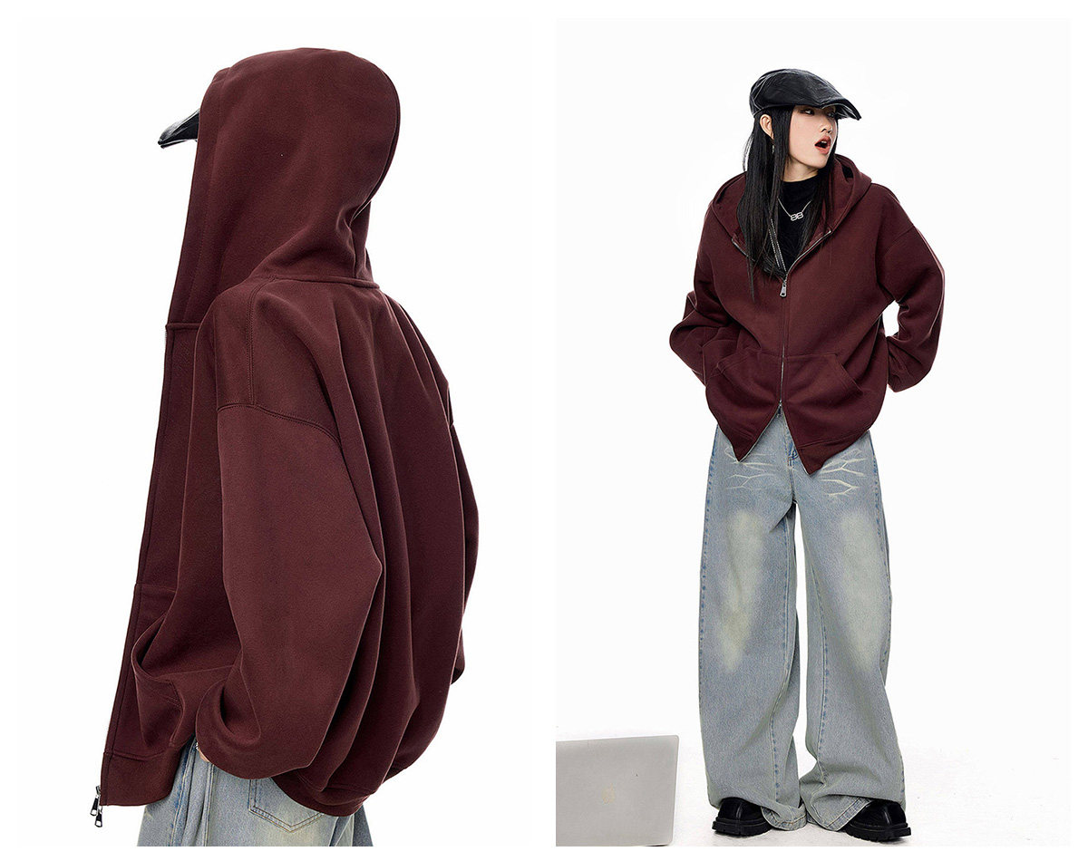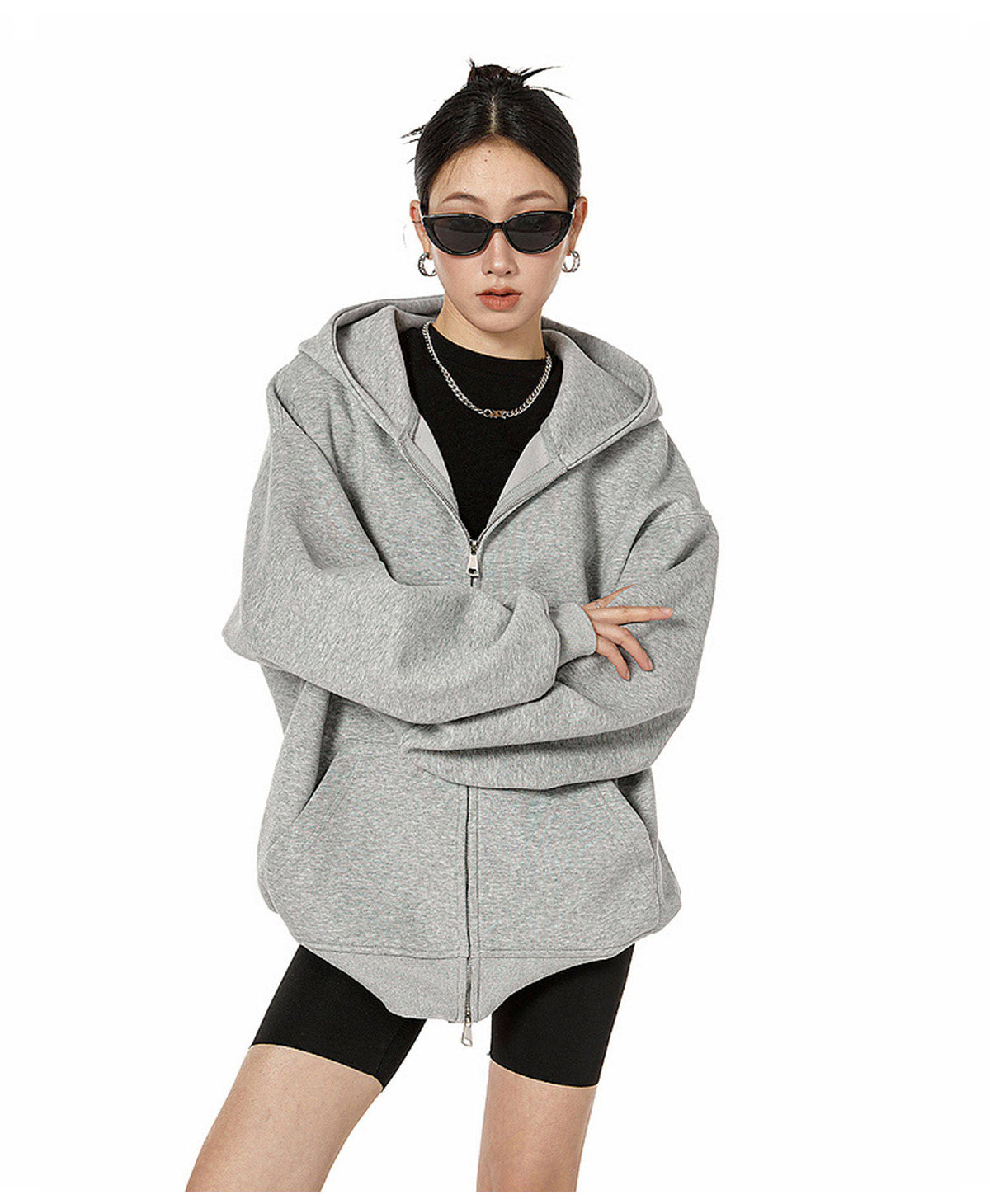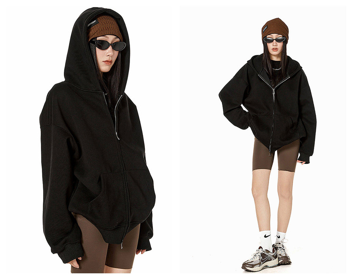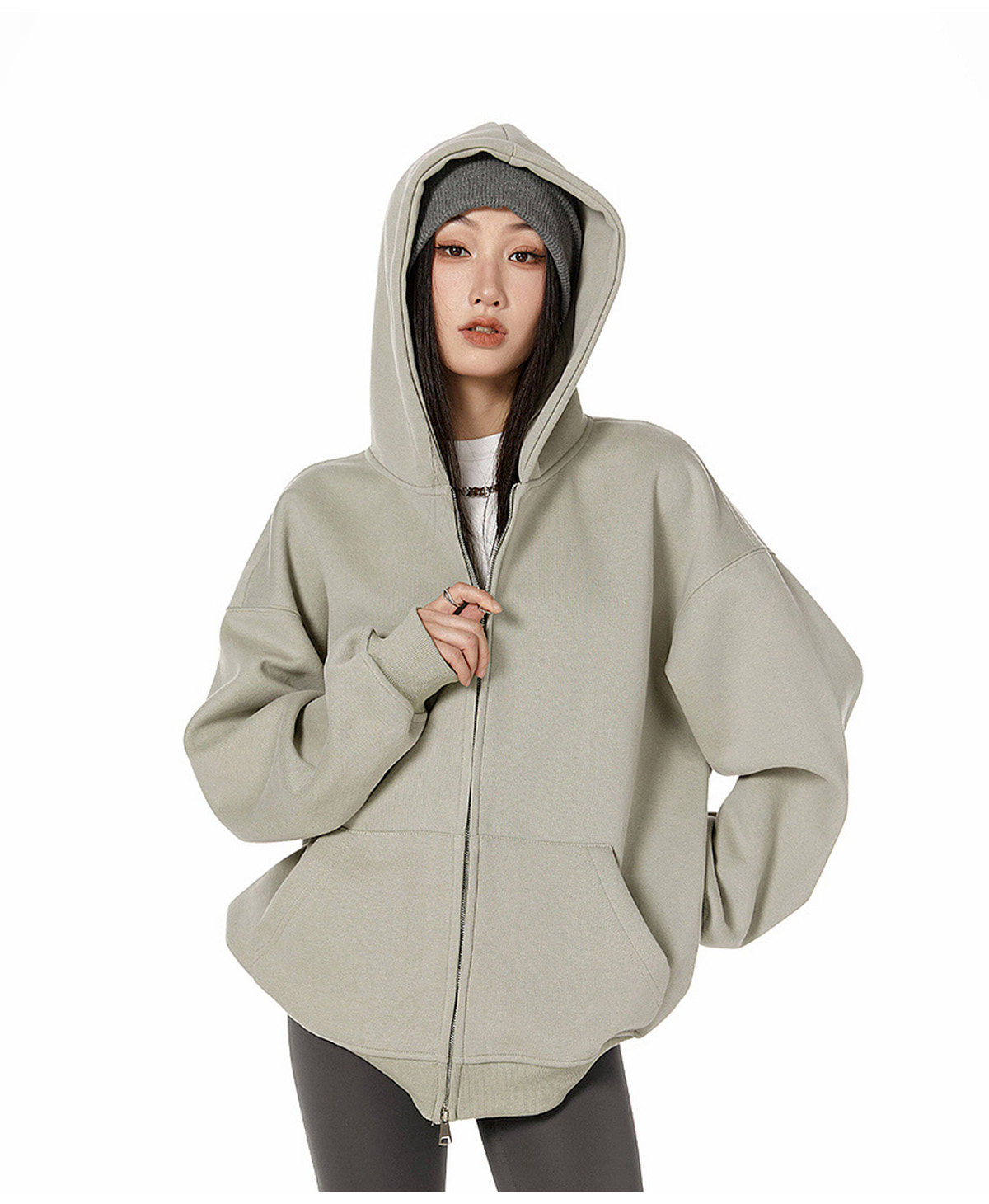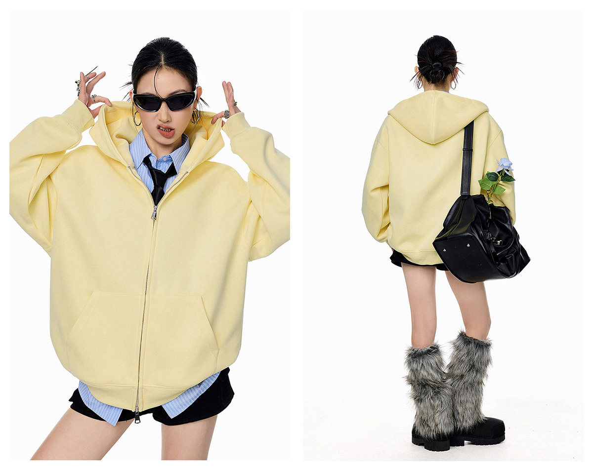 Ich Mode American-Style Heavyweight Gray Sweatshirt Jacket for Women, New Spring Loose-Fitting Hooded Zip-Up Cardigan Top