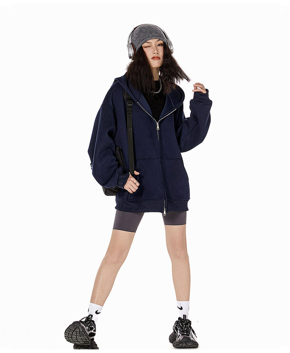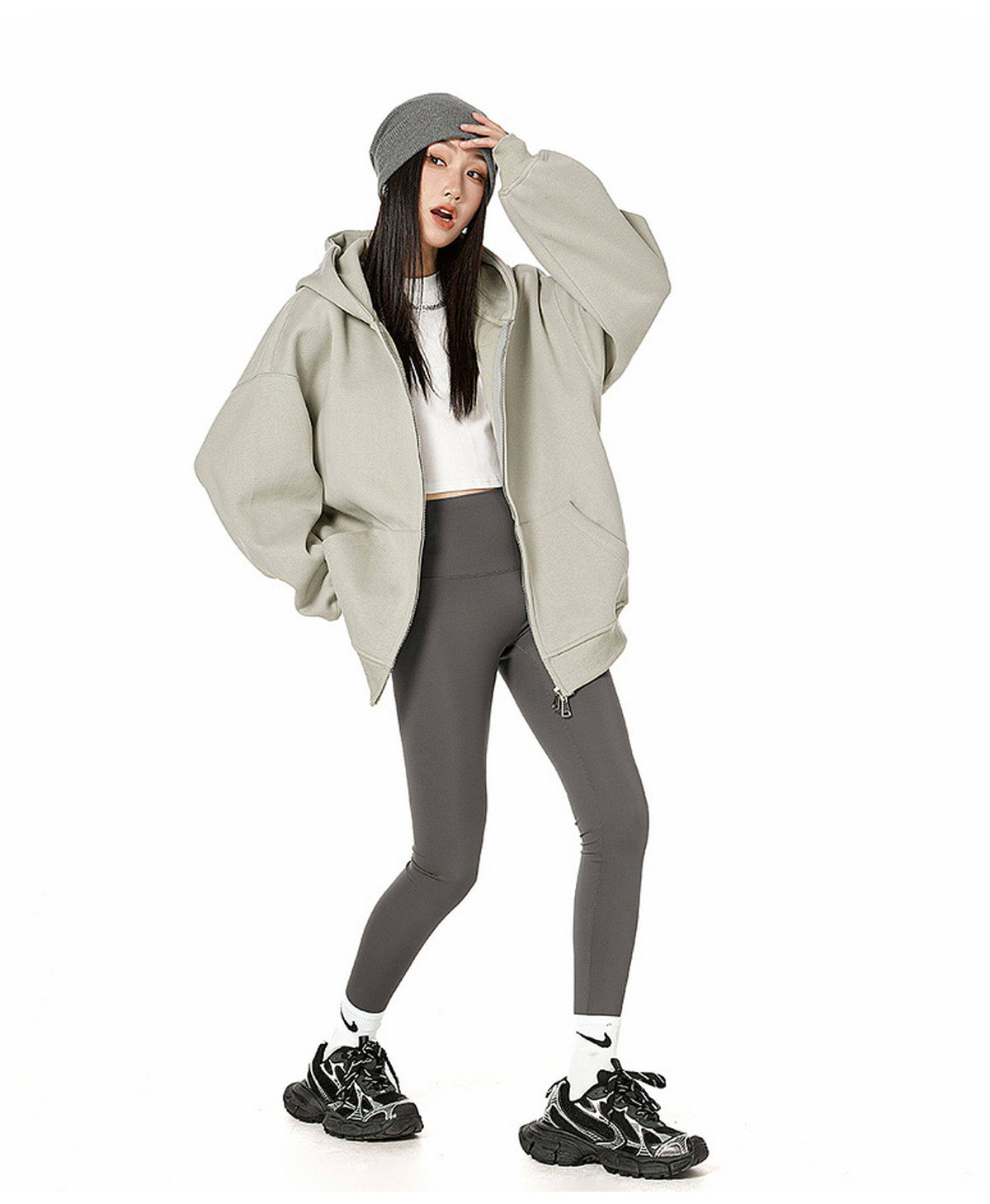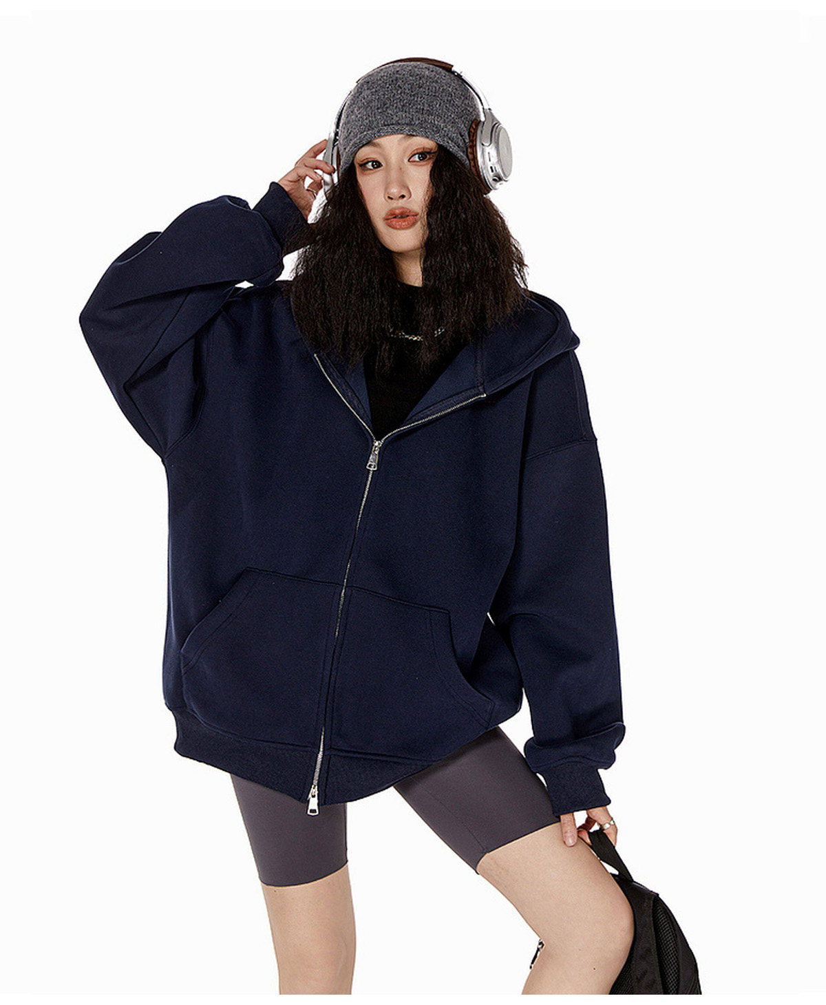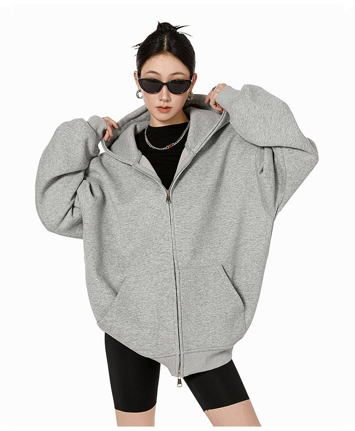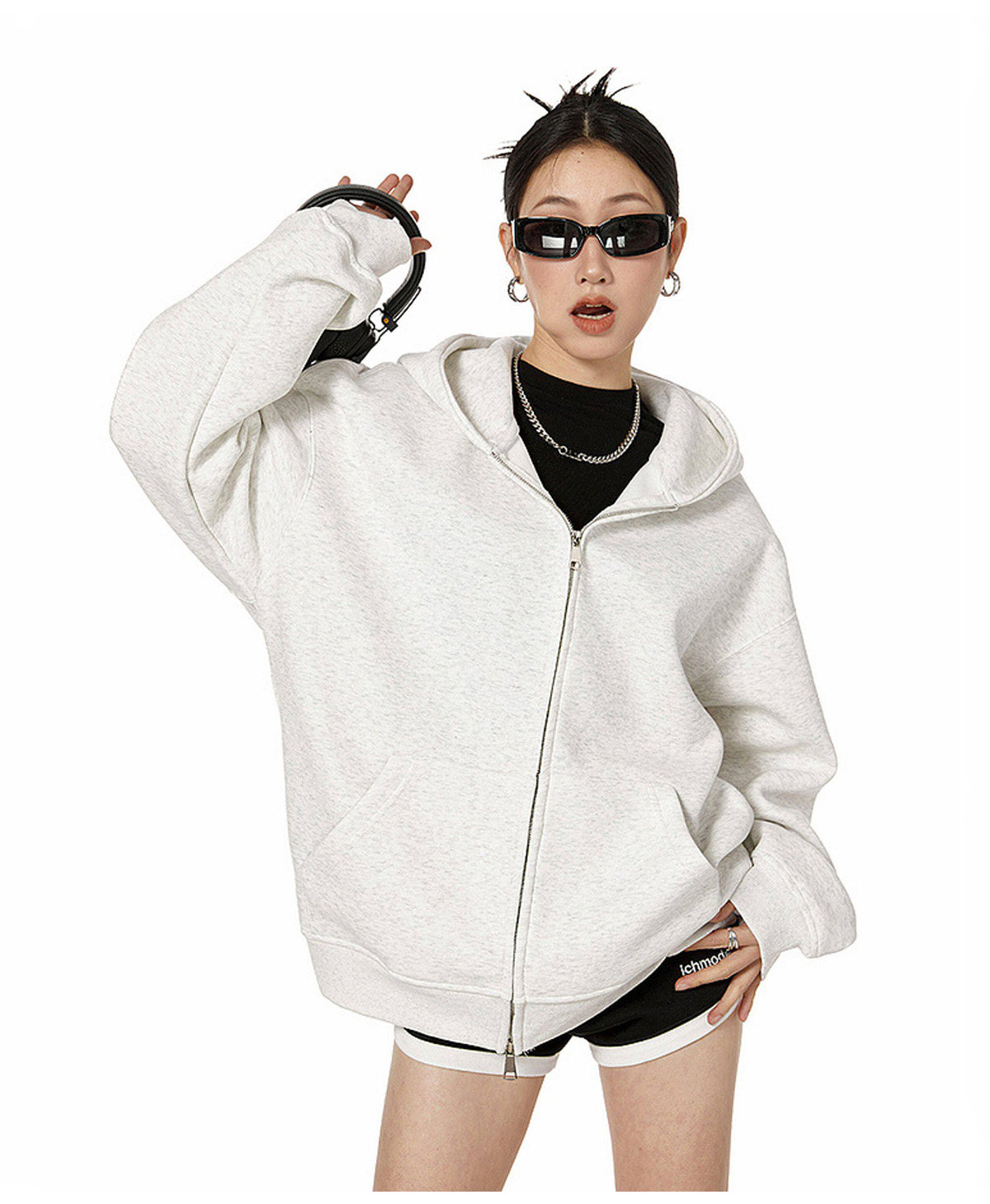 Ich Mode American-Style Heavyweight Gray Sweatshirt Jacket for Women, New Spring Loose-Fitting Hooded Zip-Up Cardigan Top