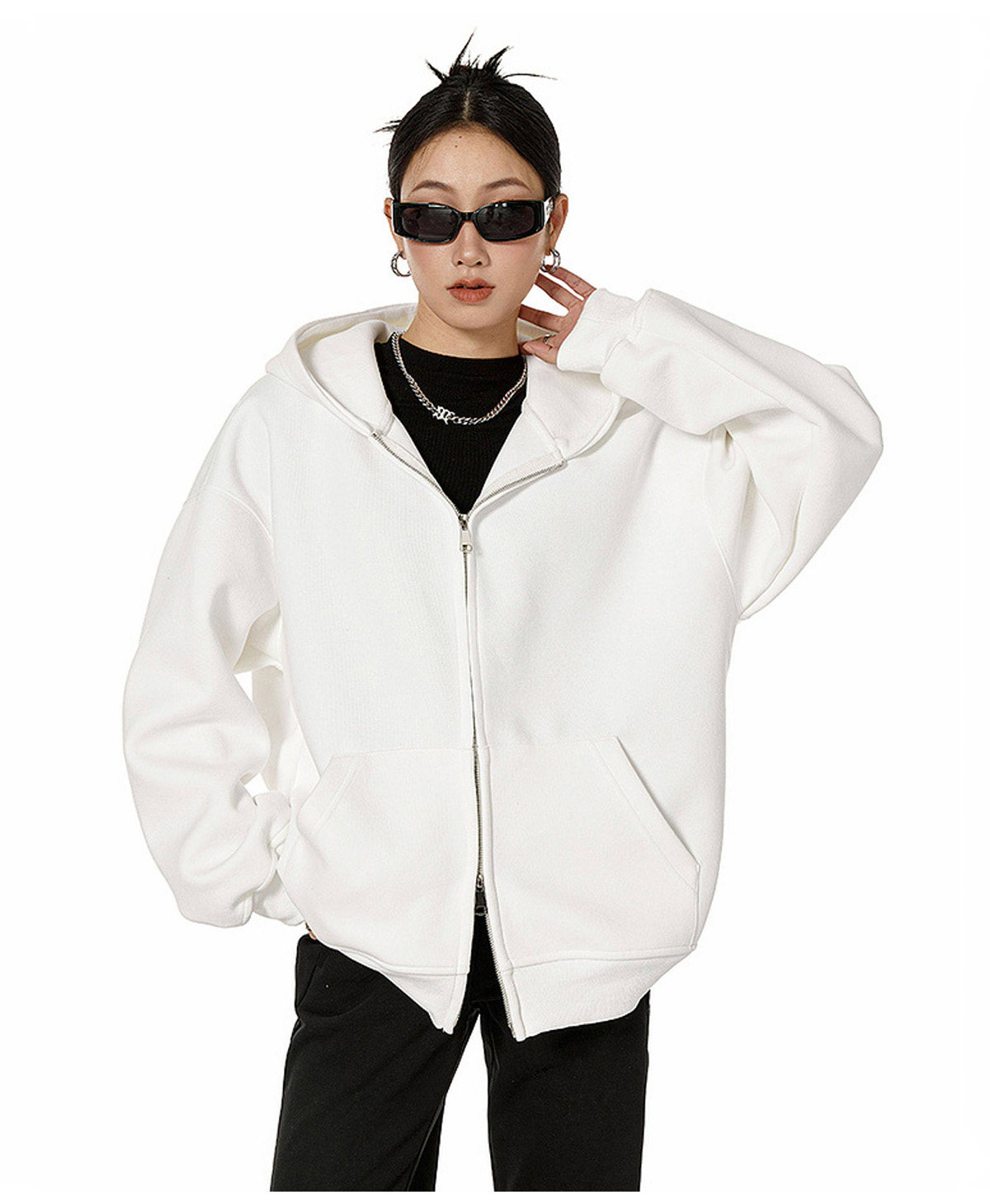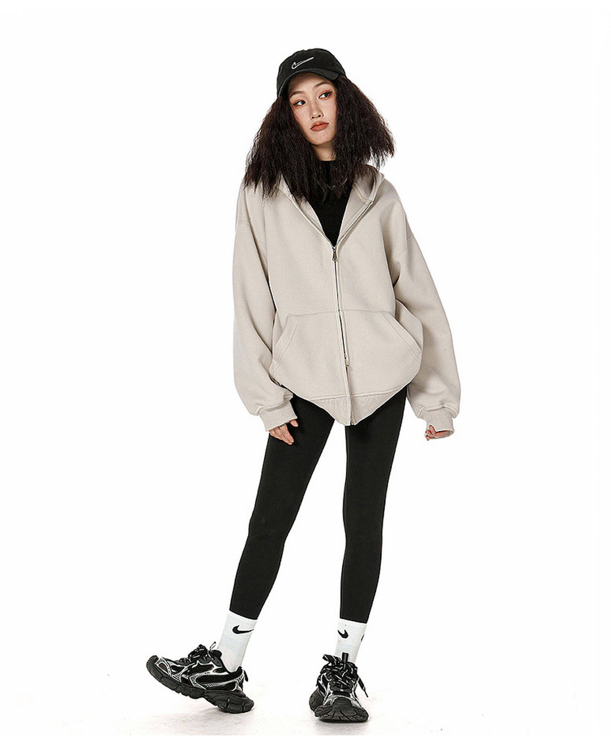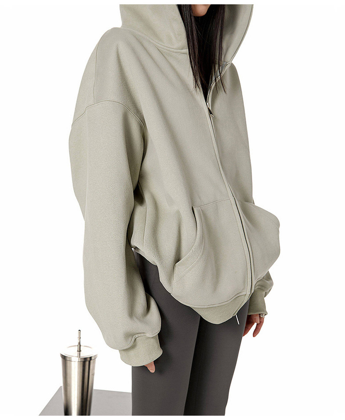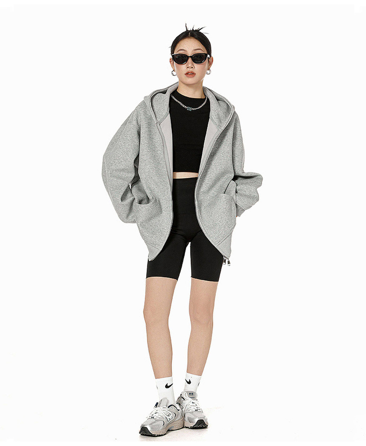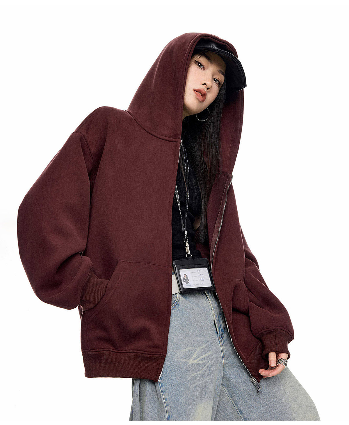 Ich Mode American-Style Heavyweight Gray Sweatshirt Jacket for Women, New Spring Loose-Fitting Hooded Zip-Up Cardigan Top