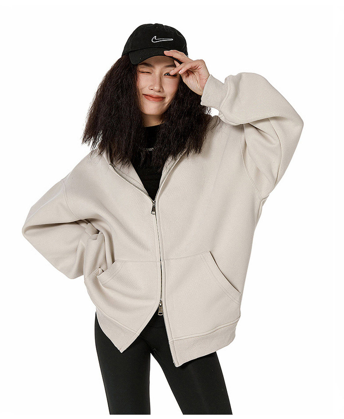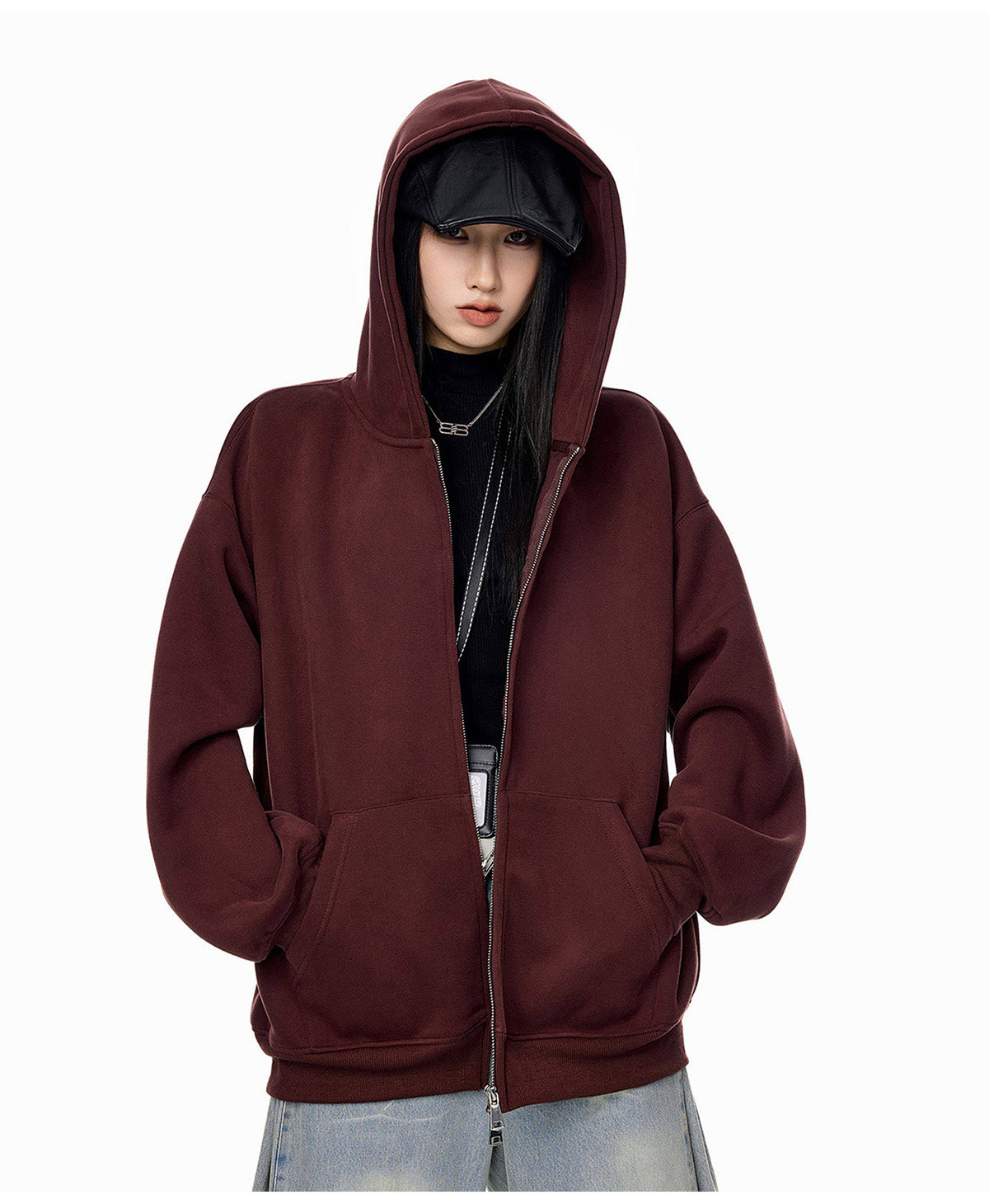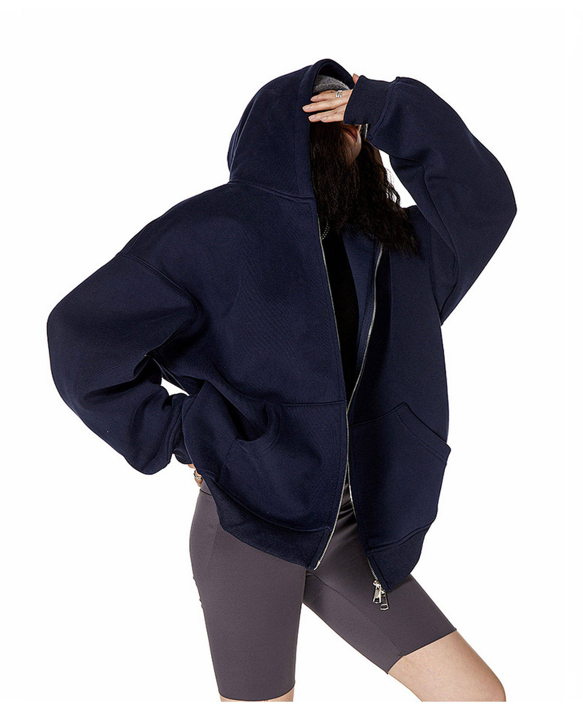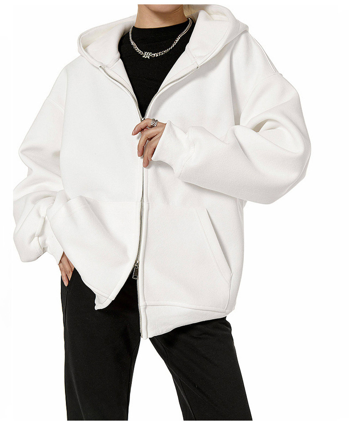 Ich Mode American-Style Heavyweight Gray Sweatshirt Jacket for Women, New Spring Loose-Fitting Hooded Zip-Up Cardigan Top