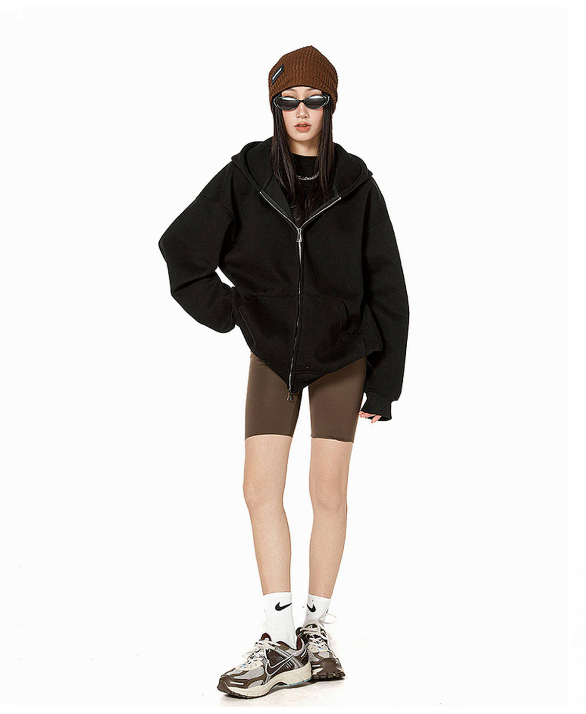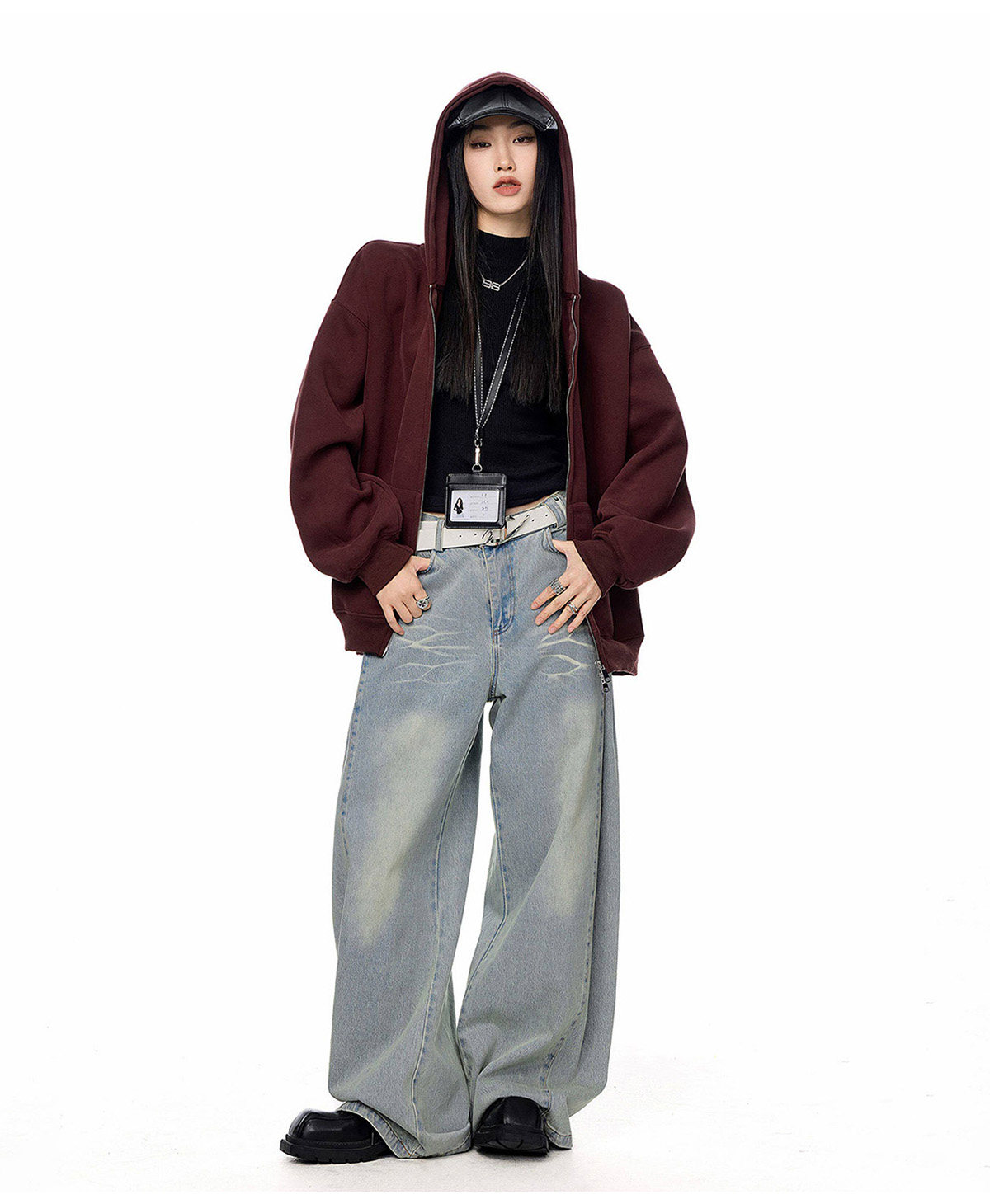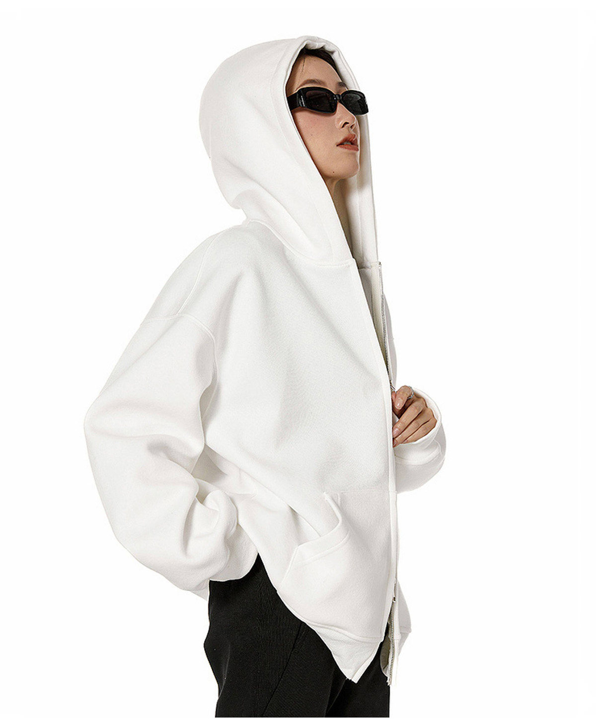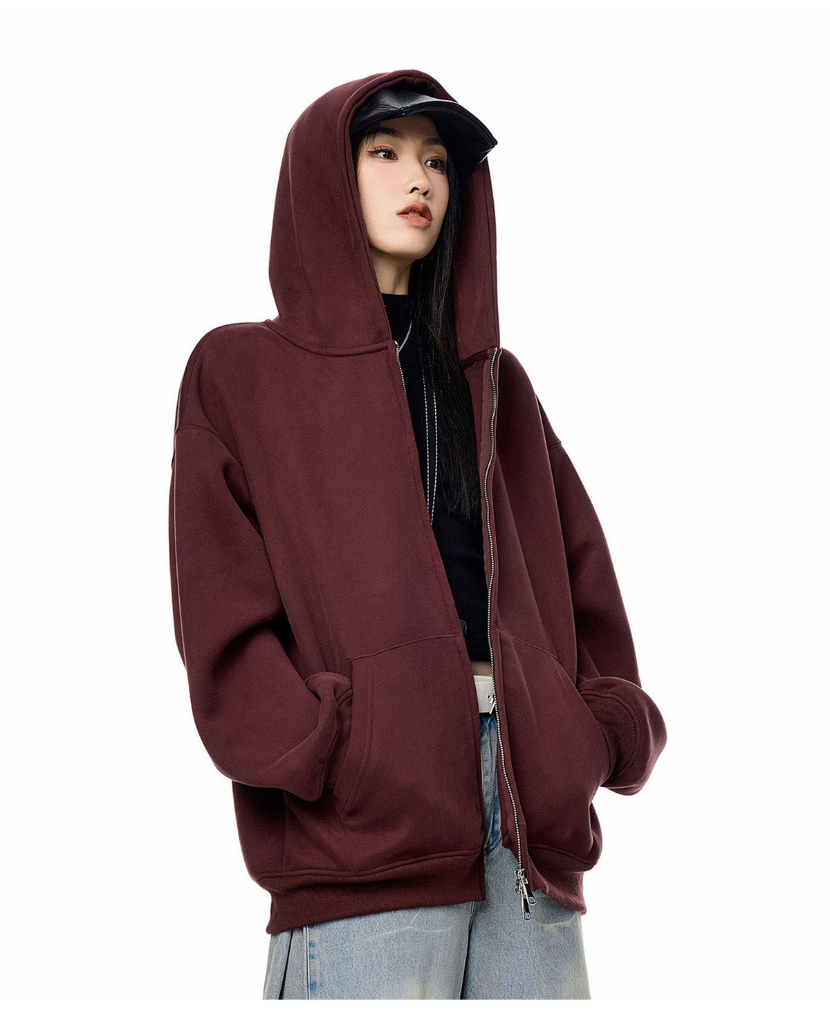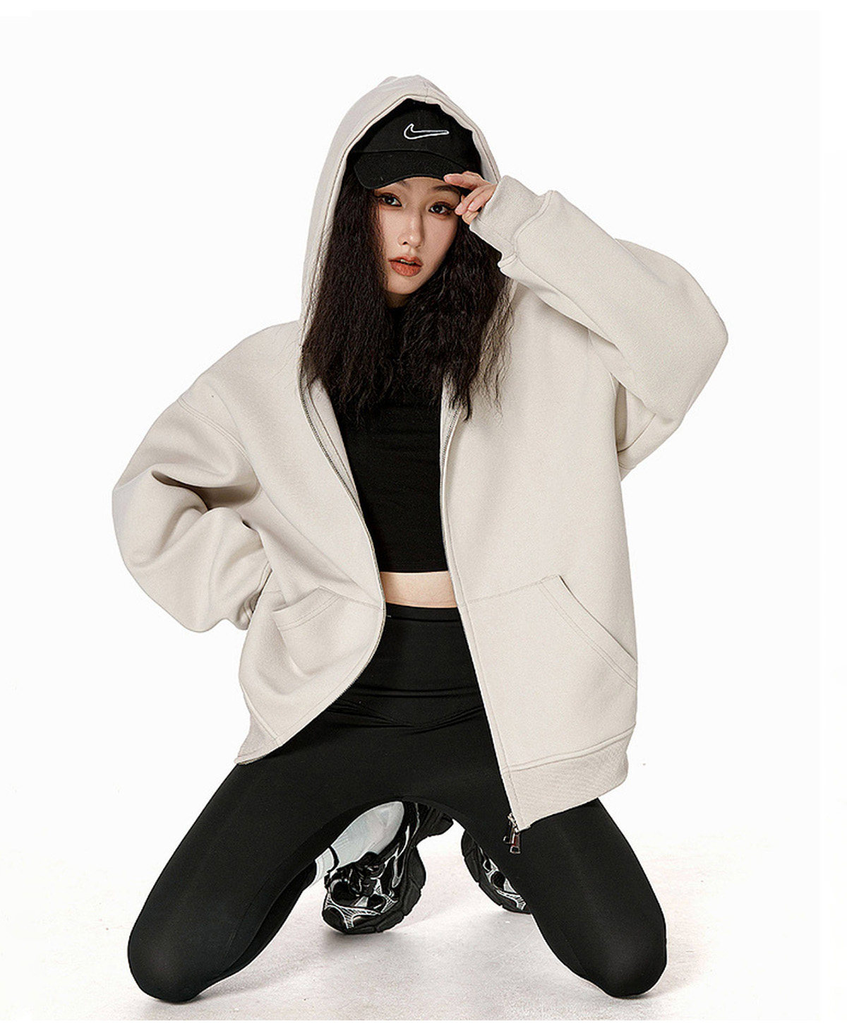 Ich Mode American-Style Heavyweight Gray Sweatshirt Jacket for Women, New Spring Loose-Fitting Hooded Zip-Up Cardigan Top