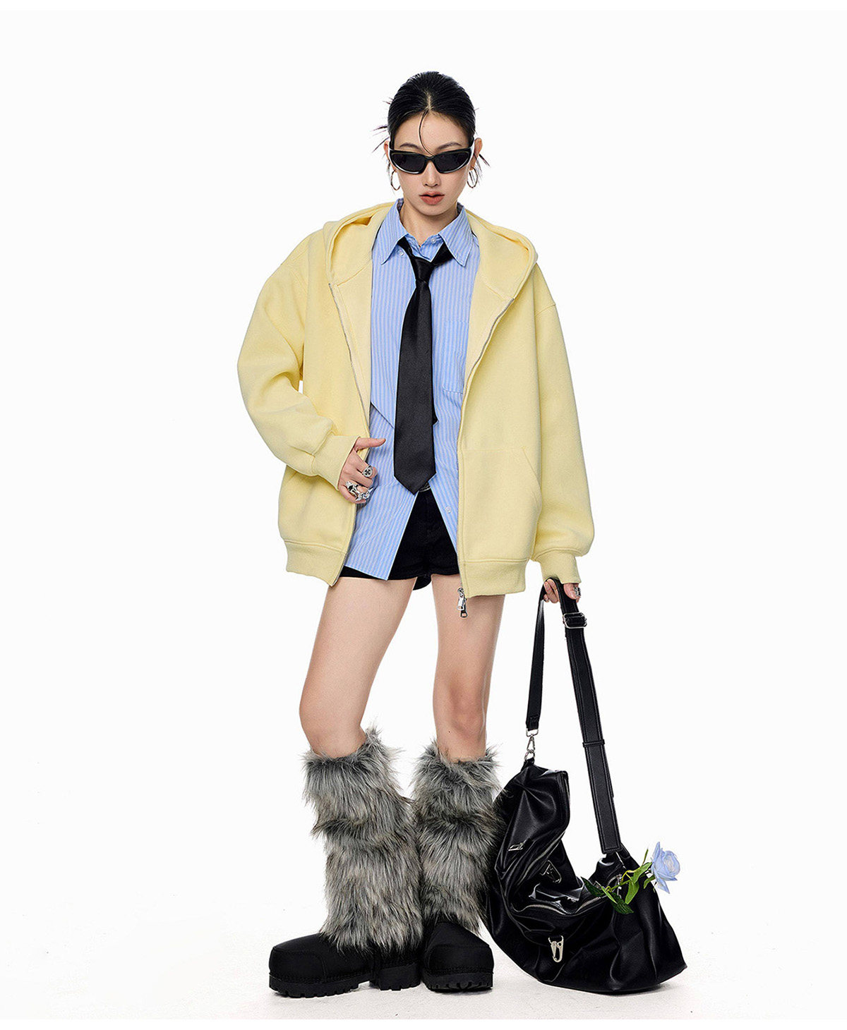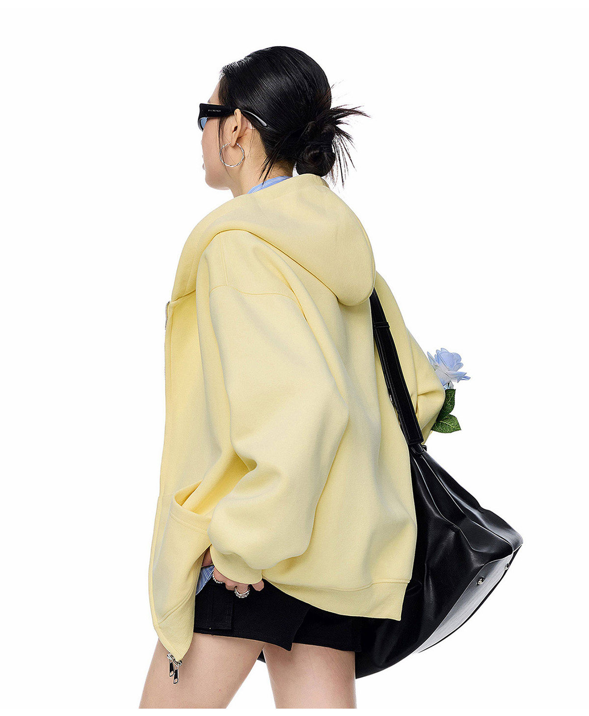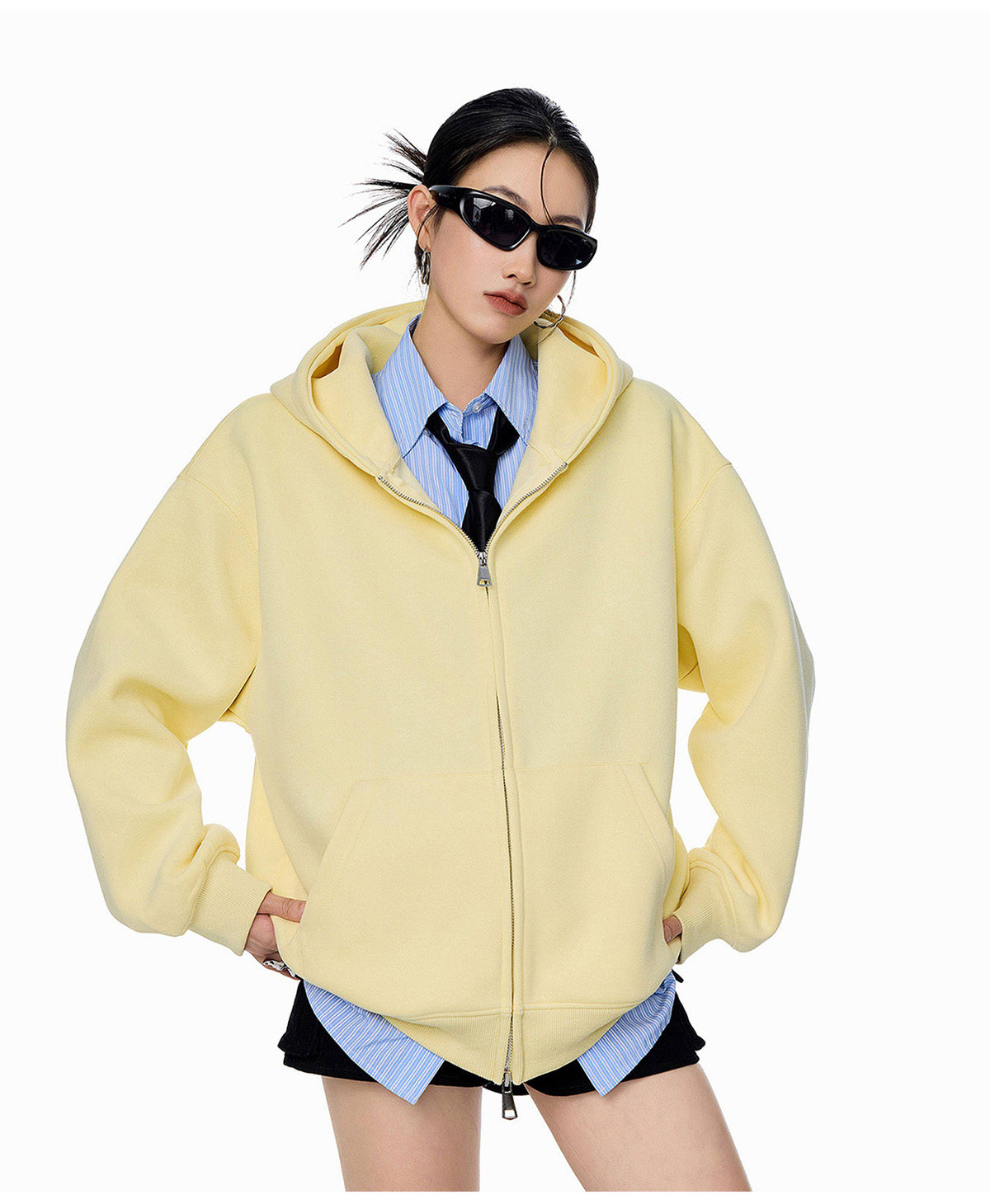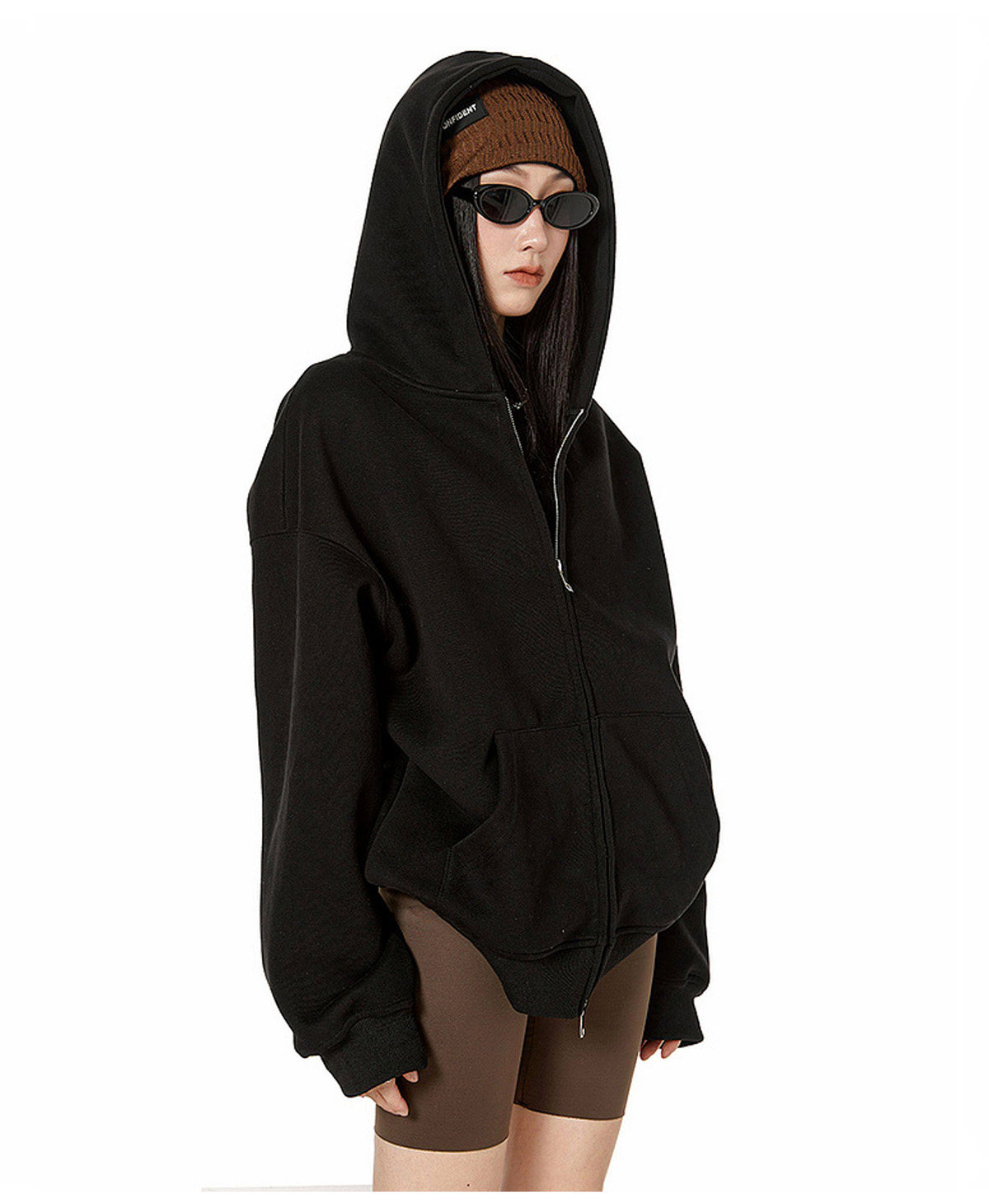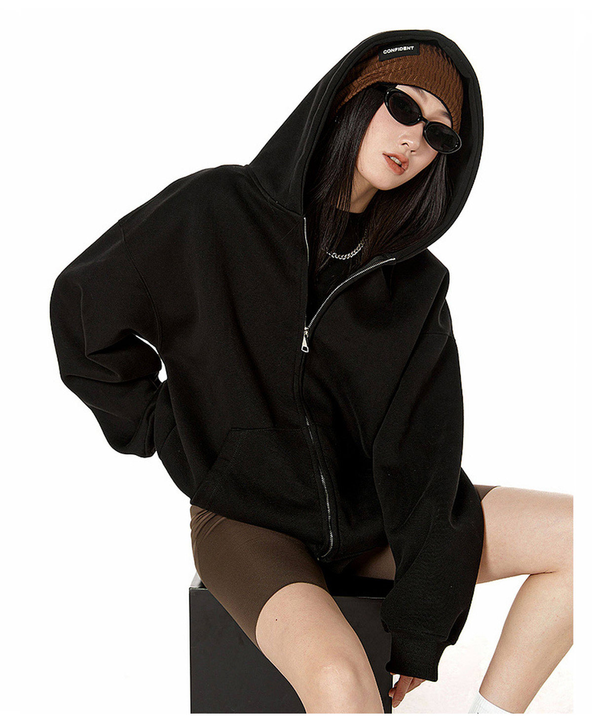 Ich Mode American-Style Heavyweight Gray Sweatshirt Jacket for Women, New Spring Loose-Fitting Hooded Zip-Up Cardigan Top
