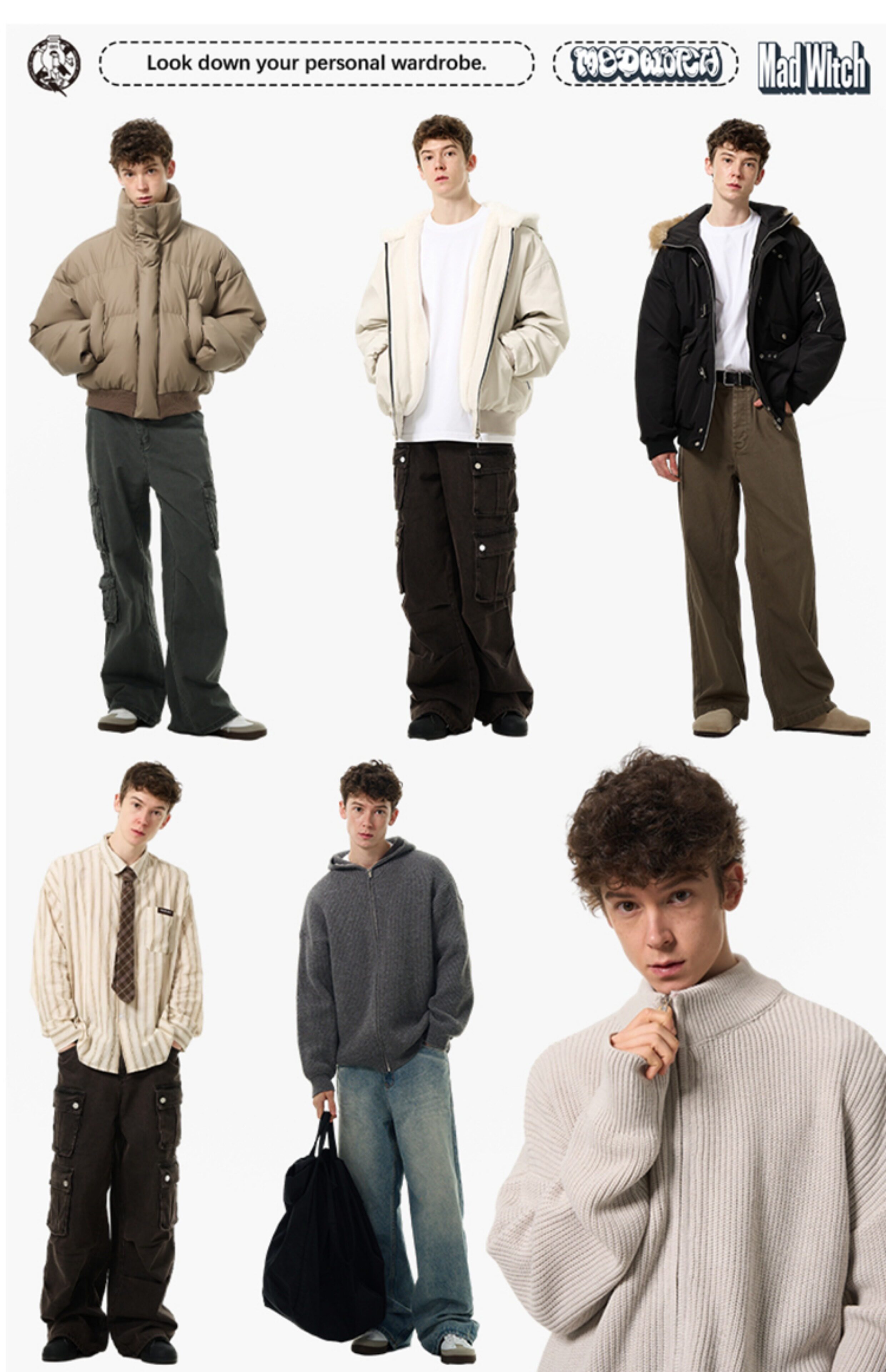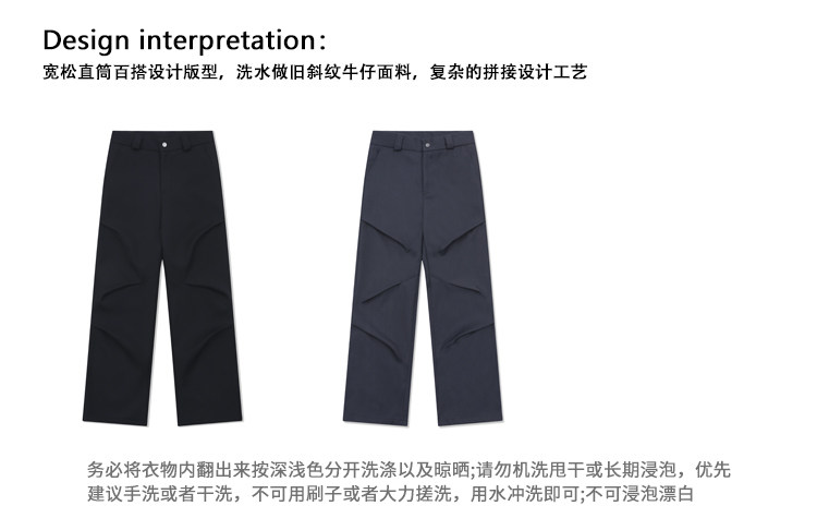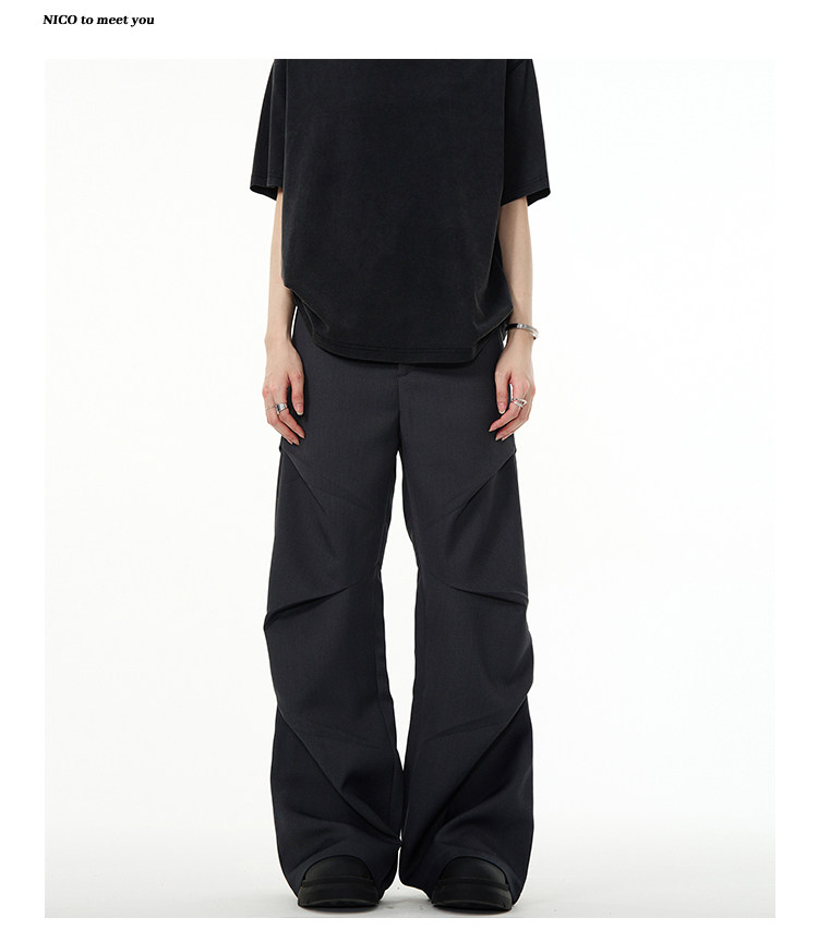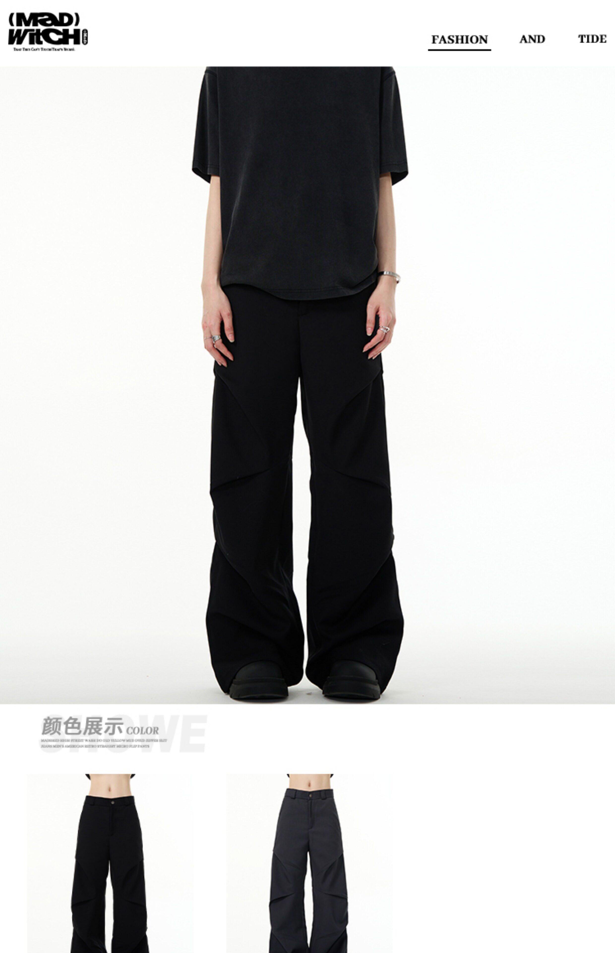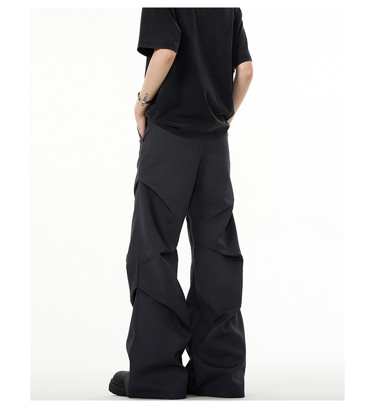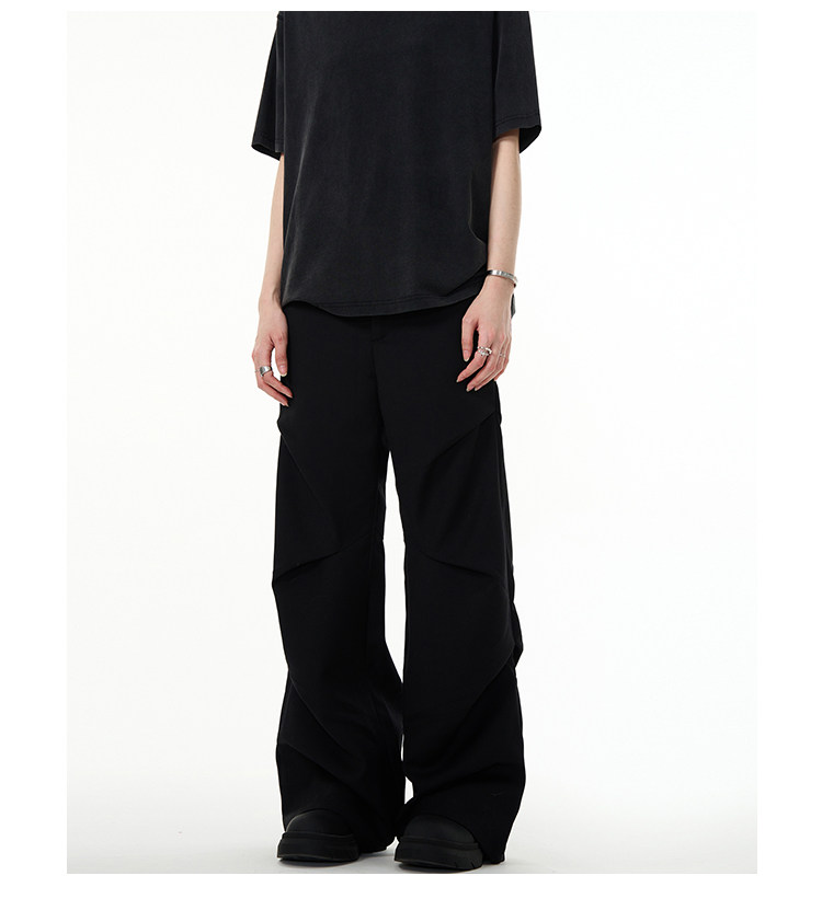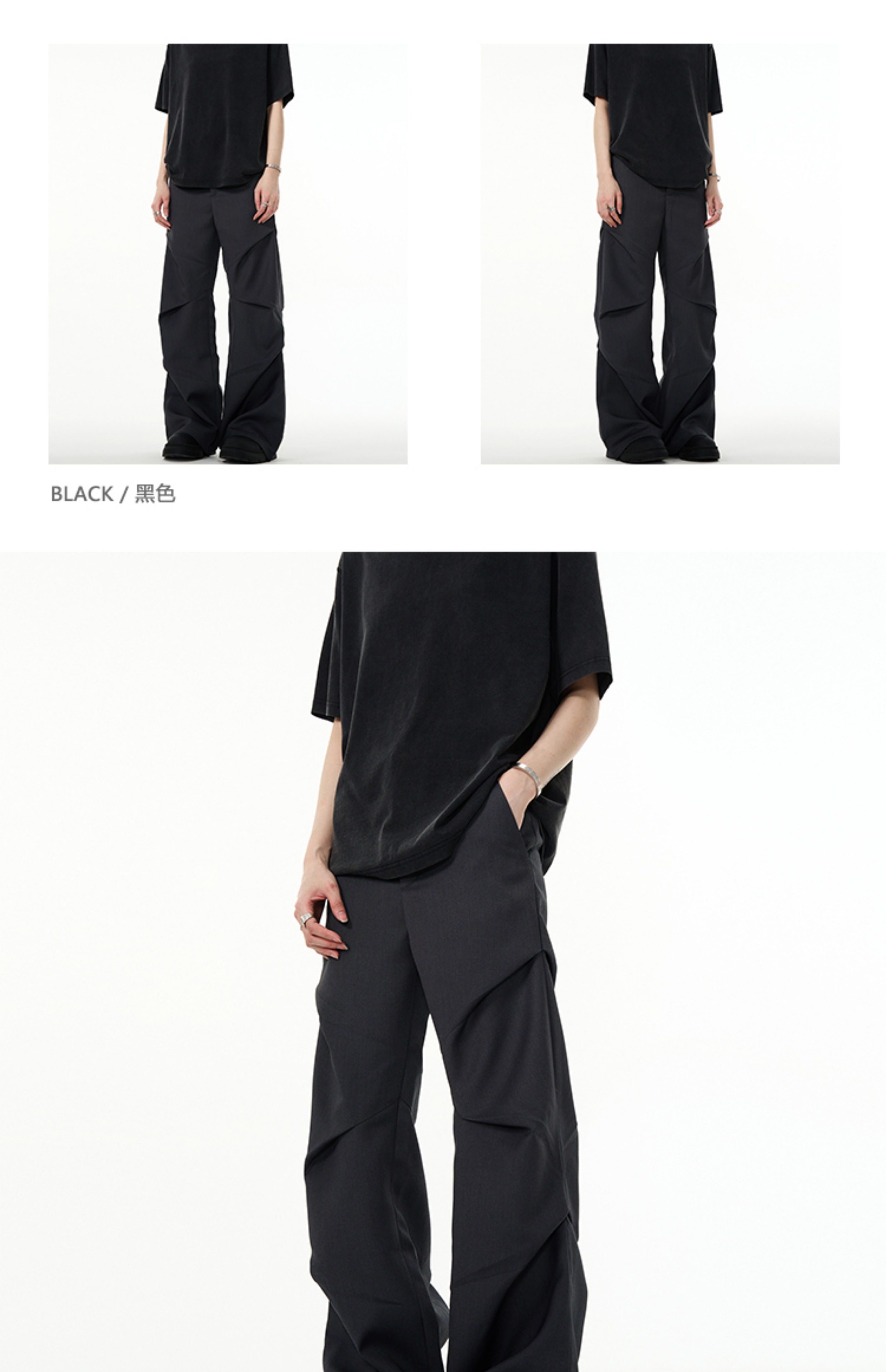 Madwitch American Retro Cleanfit High-End Casual Pants with Pleated Design, Loose and Slightly Flared Black Pants