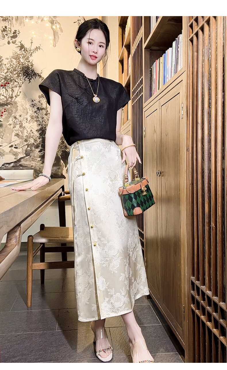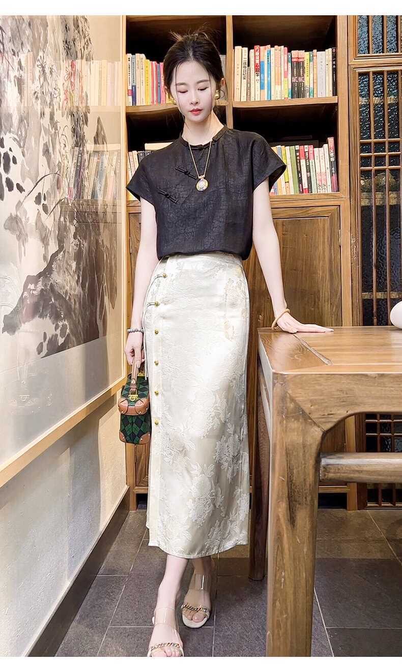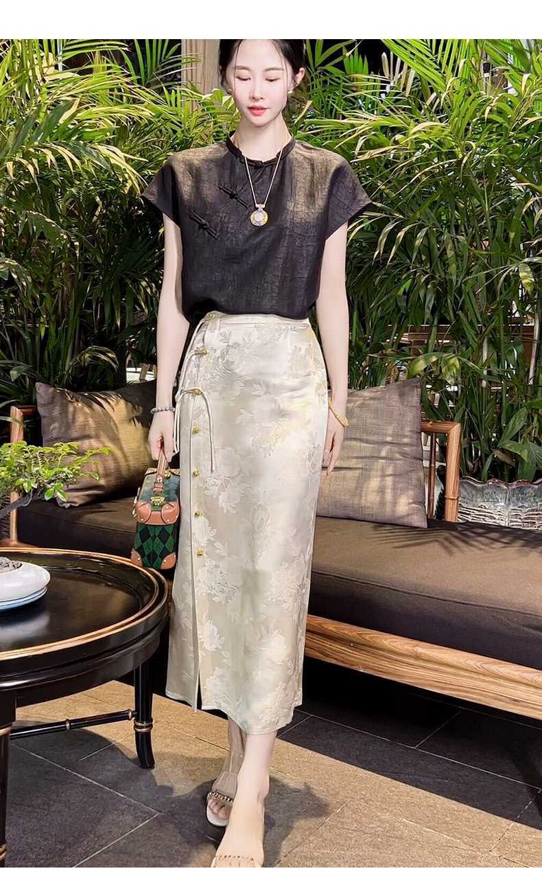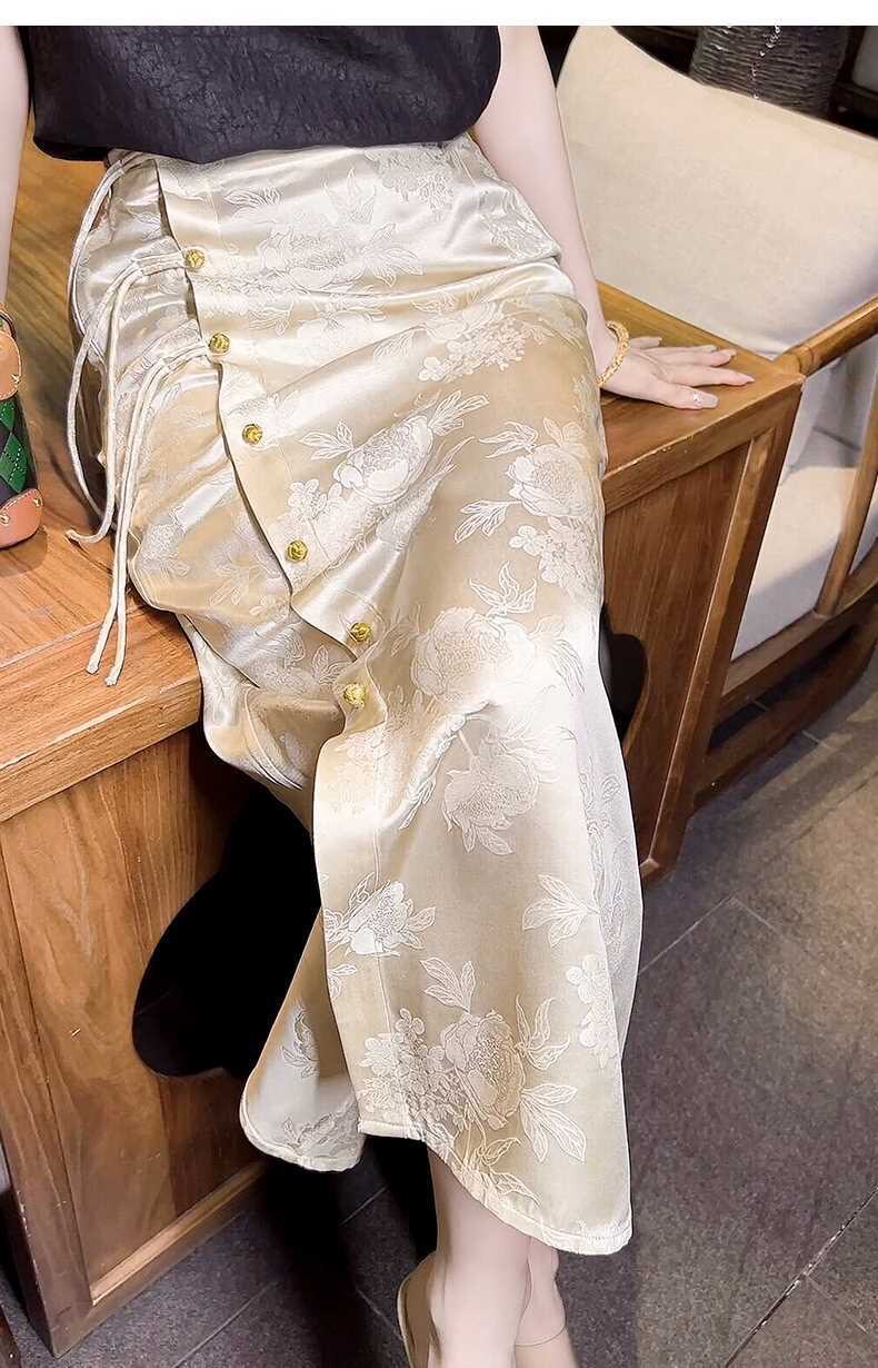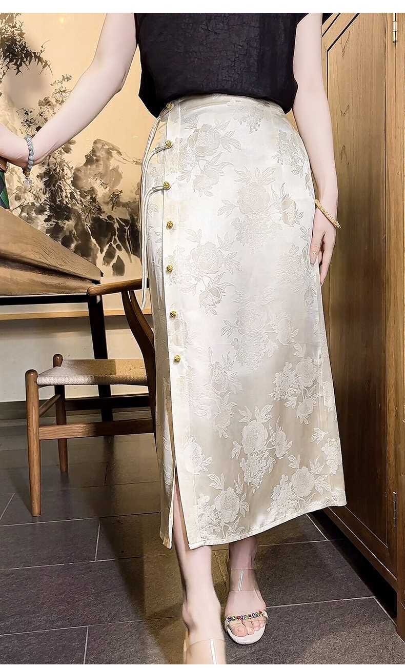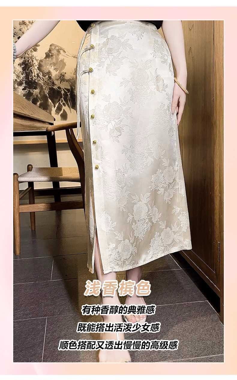 Italian High-End New Chinese-Style Jacquard Skirt for Women, Early Spring New National Style High-Waisted Slit Pencil Skirt for Women, Silk