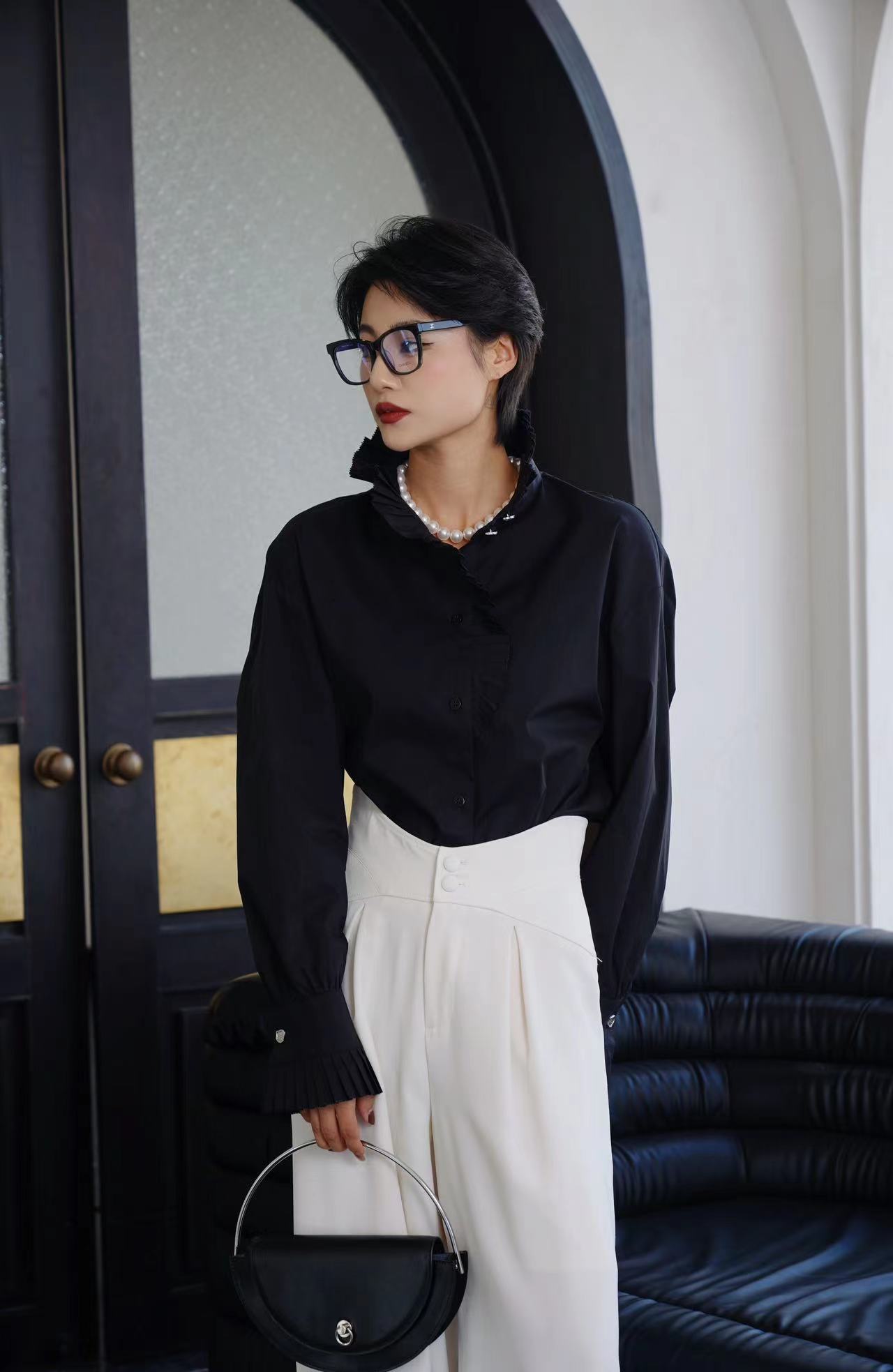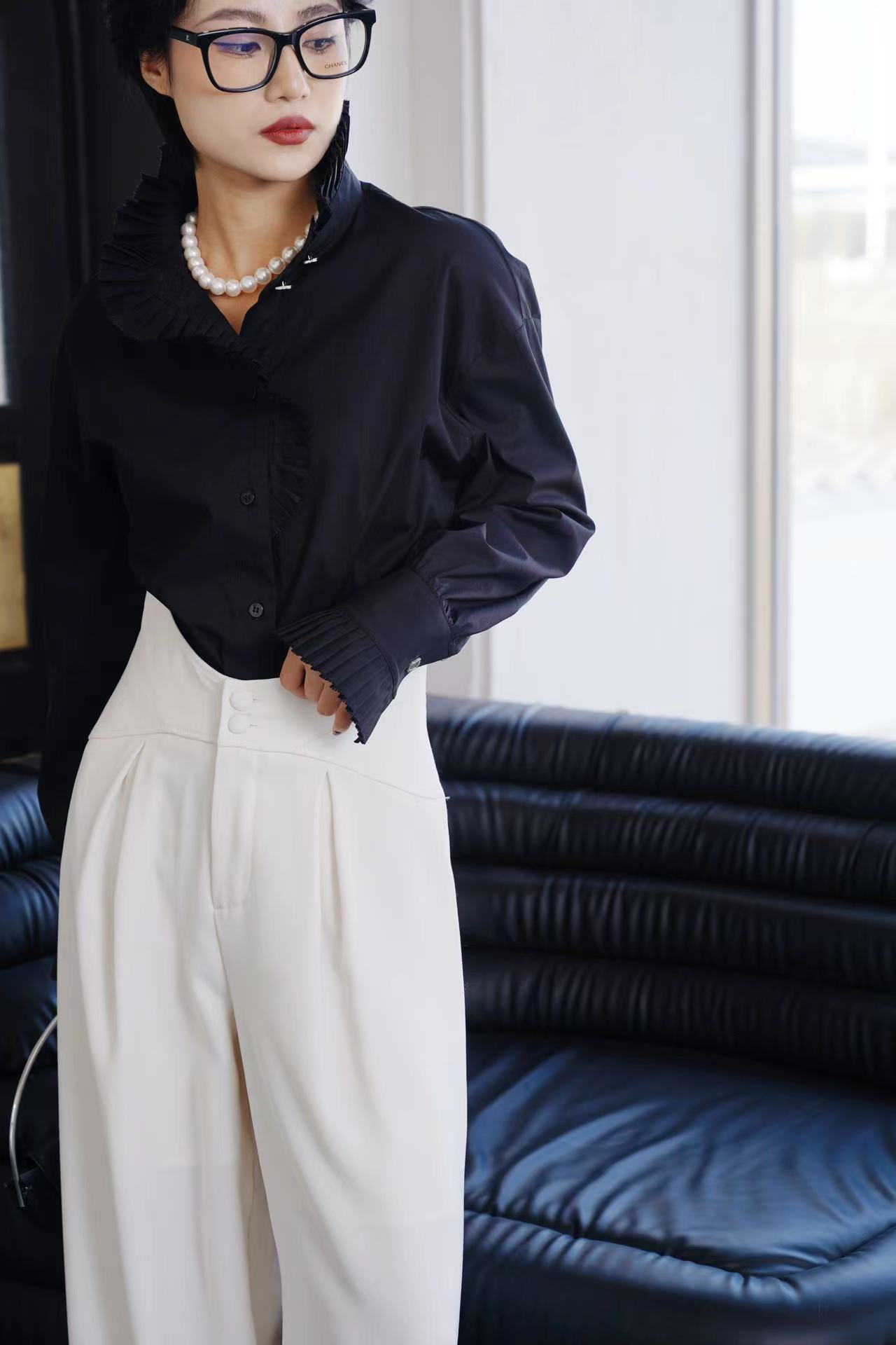 [Slimming Butterfly Waist] Elegant Black Casual Long Pants for Women, Autumn Design with Waist Cinching and Wide Legs