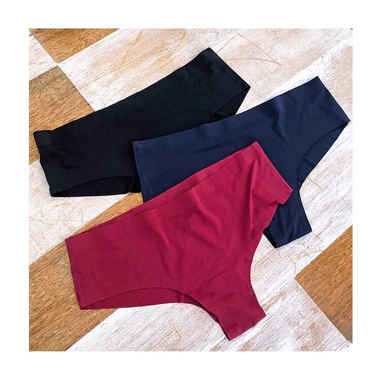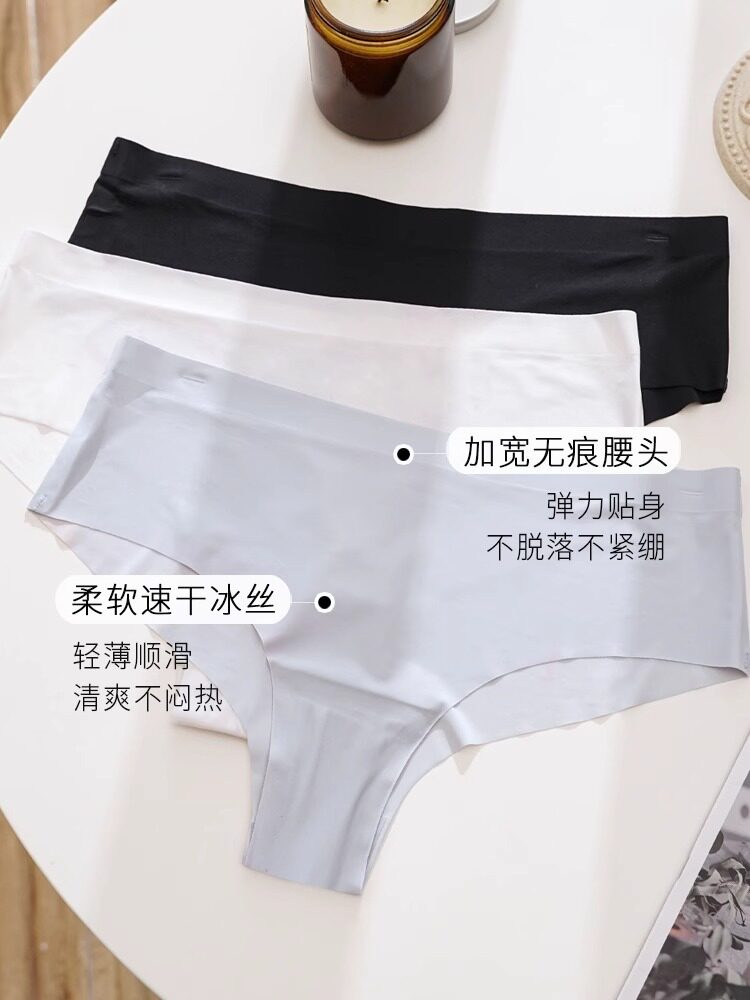 Half-Coverage Thong Panties for Women, Invisible Seamless One-Piece Ice Silk Women's Fitness Yoga Underwear, Mid-Waist Briefs
