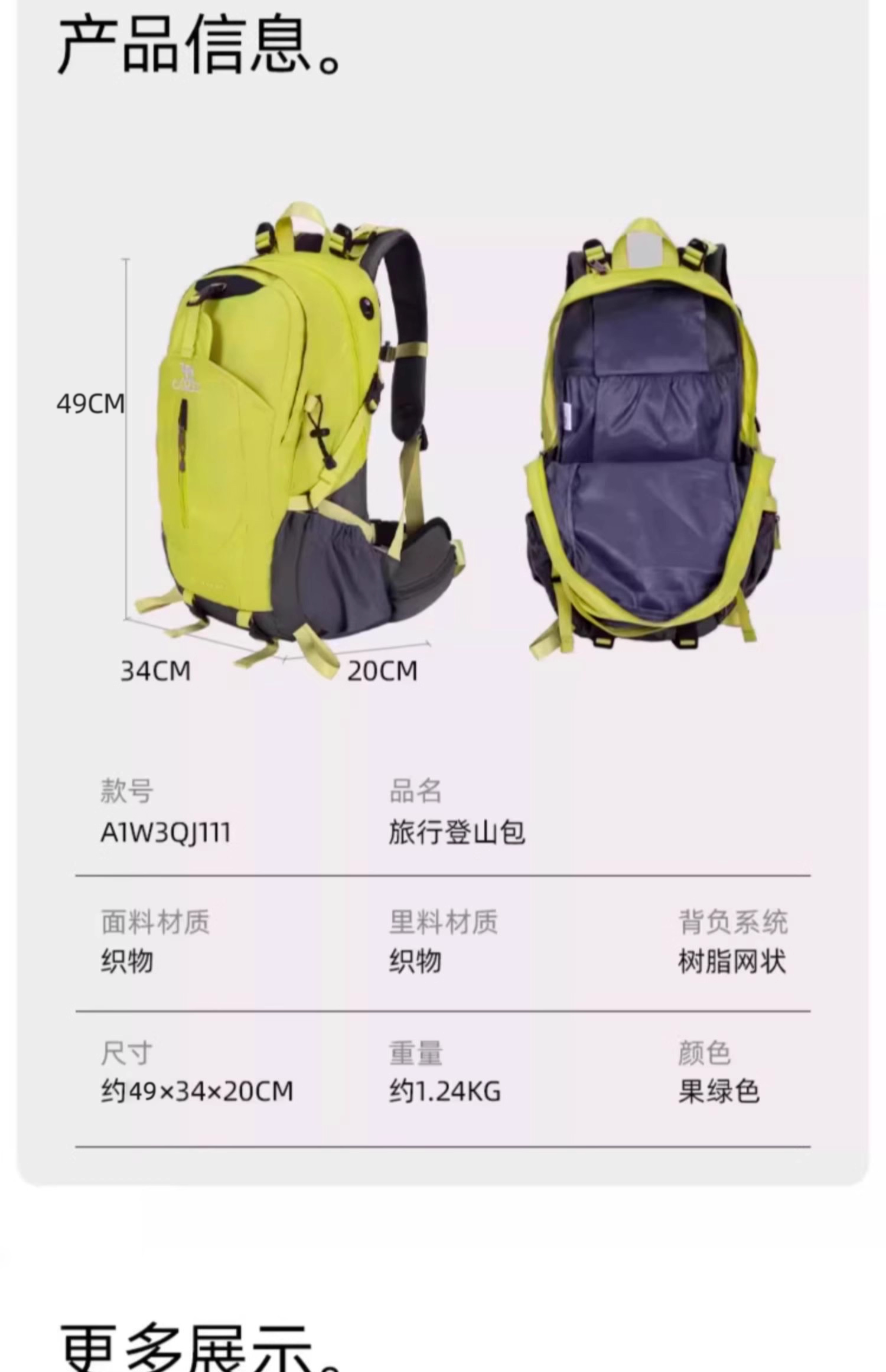 Camel Outdoor Mountaineering Bag for Men and Women, Large Capacity, Portable, Lightweight, Splash-Proof, Wear-Resistant, Hiking Backpack