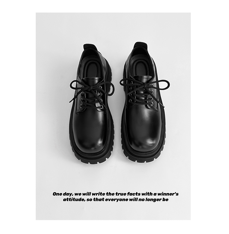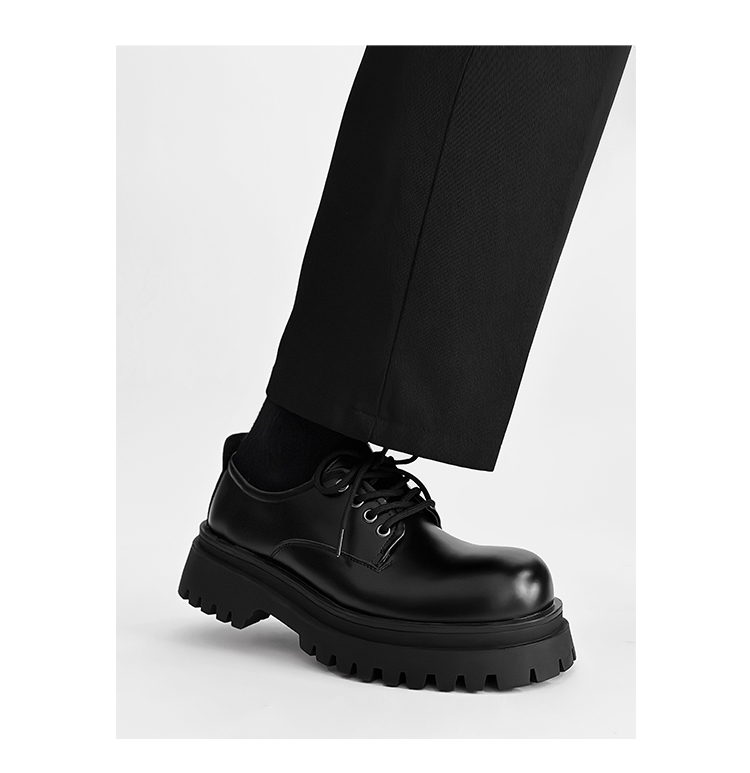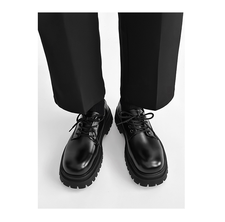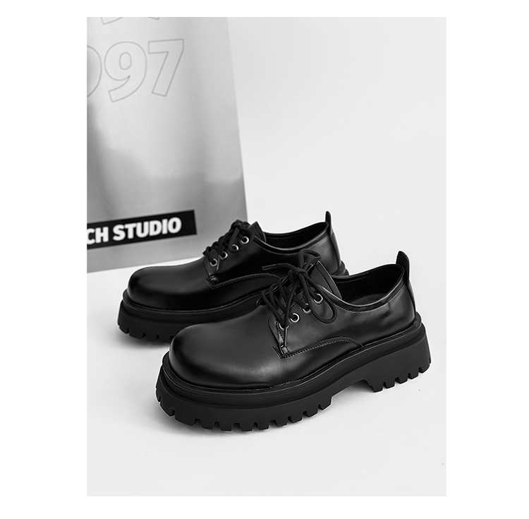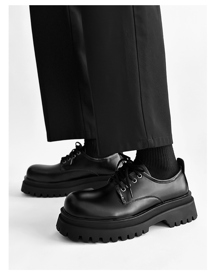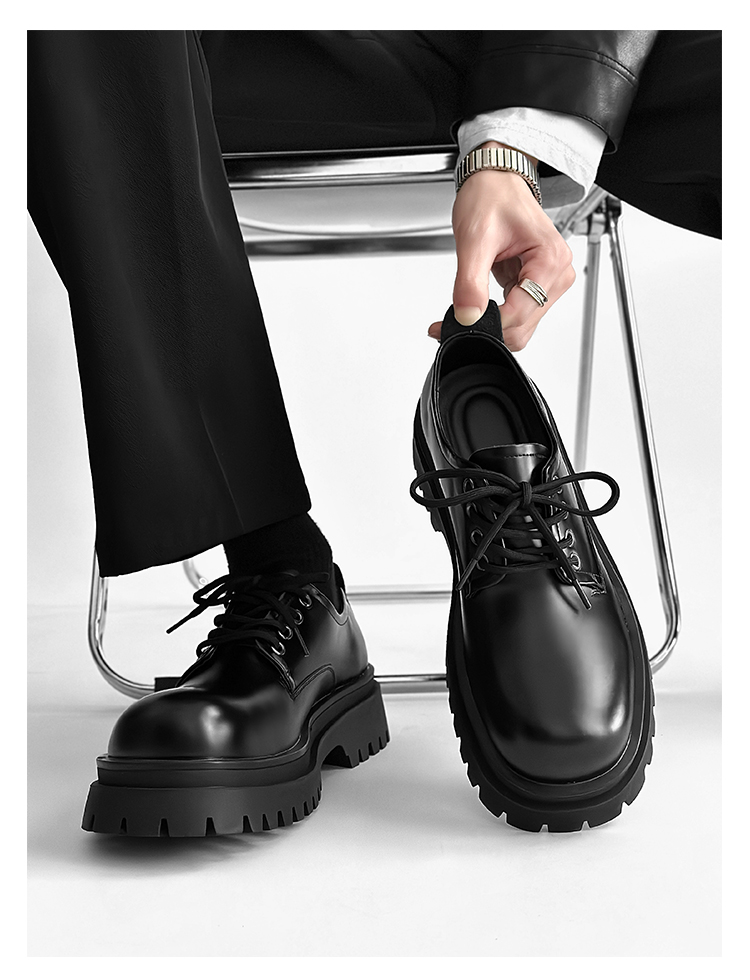 Paris Thick-Soled Derby Shoes for Men, High-End Niche Cleanfit Black Height-Increasing Leather Shoes, British Formal Big-Toe Shoes