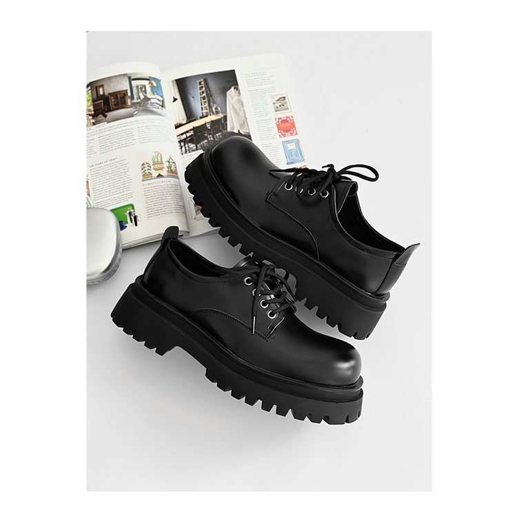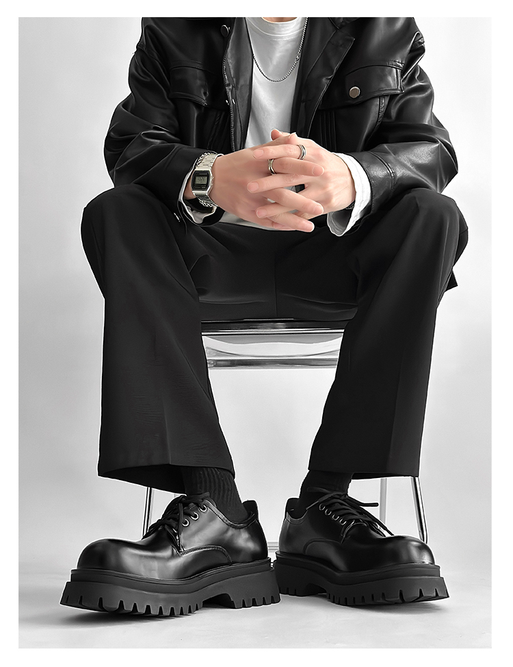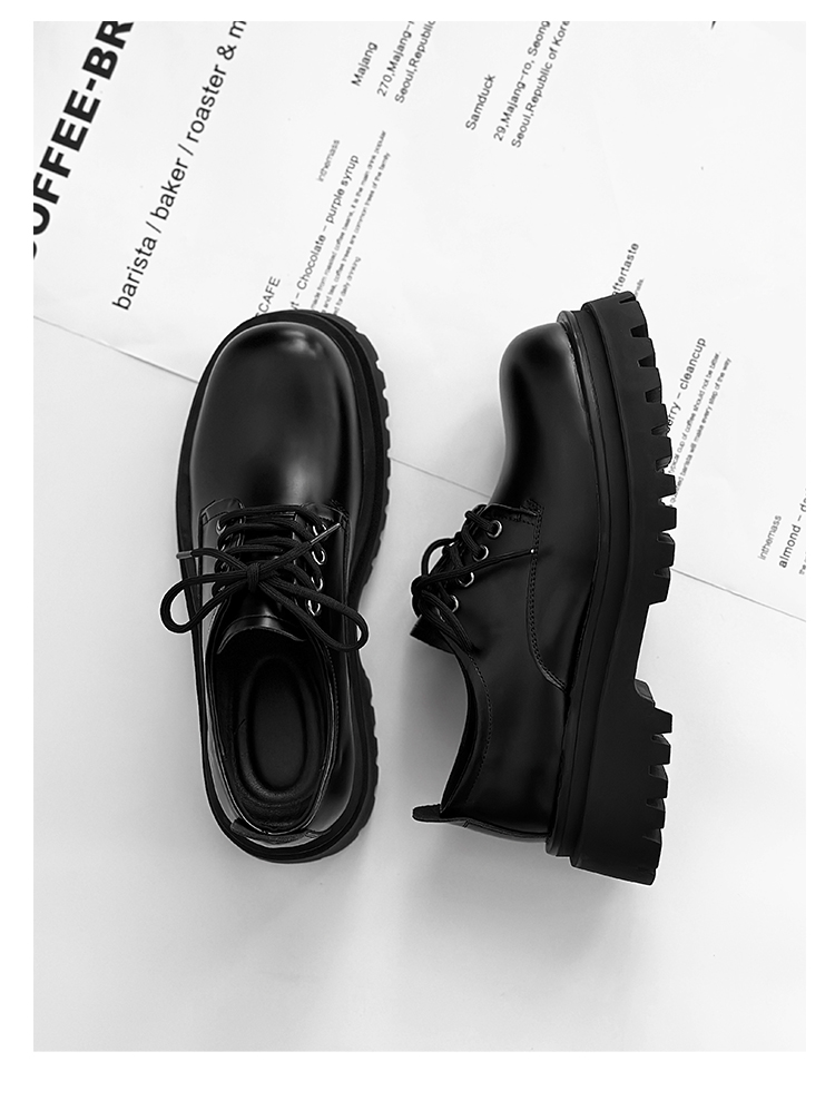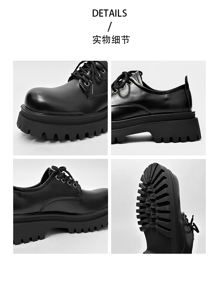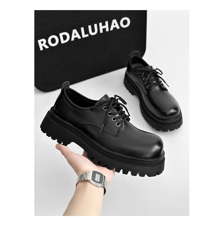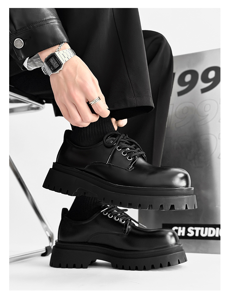 Paris Thick-Soled Derby Shoes for Men, High-End Niche Cleanfit Black Height-Increasing Leather Shoes, British Formal Big-Toe Shoes