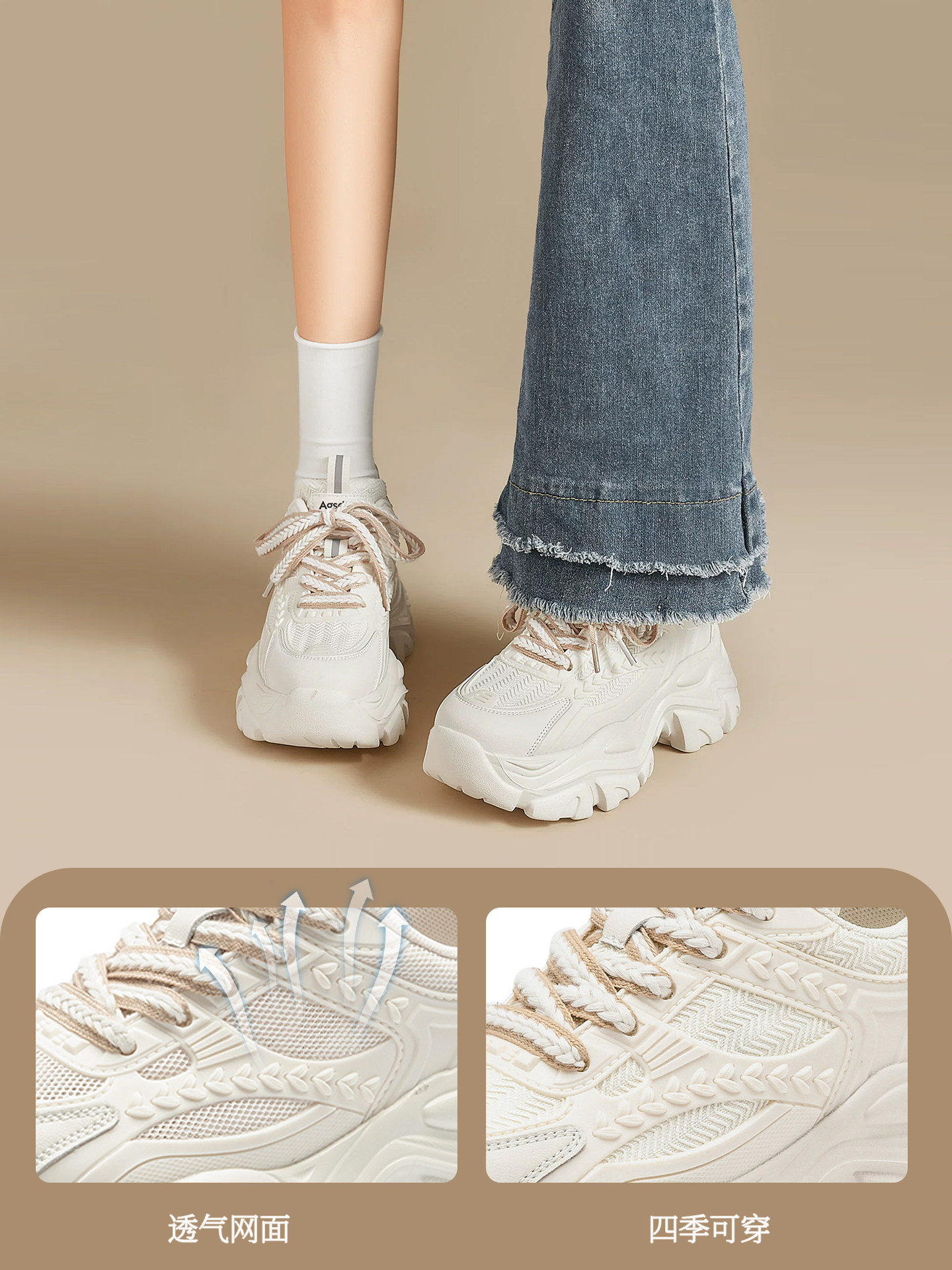 Dad Sneakers for Women 2026 New Spring/Summer Sports Thick-Soled Height-Increasing Versatile Breathable Super Stylish White Sneakers