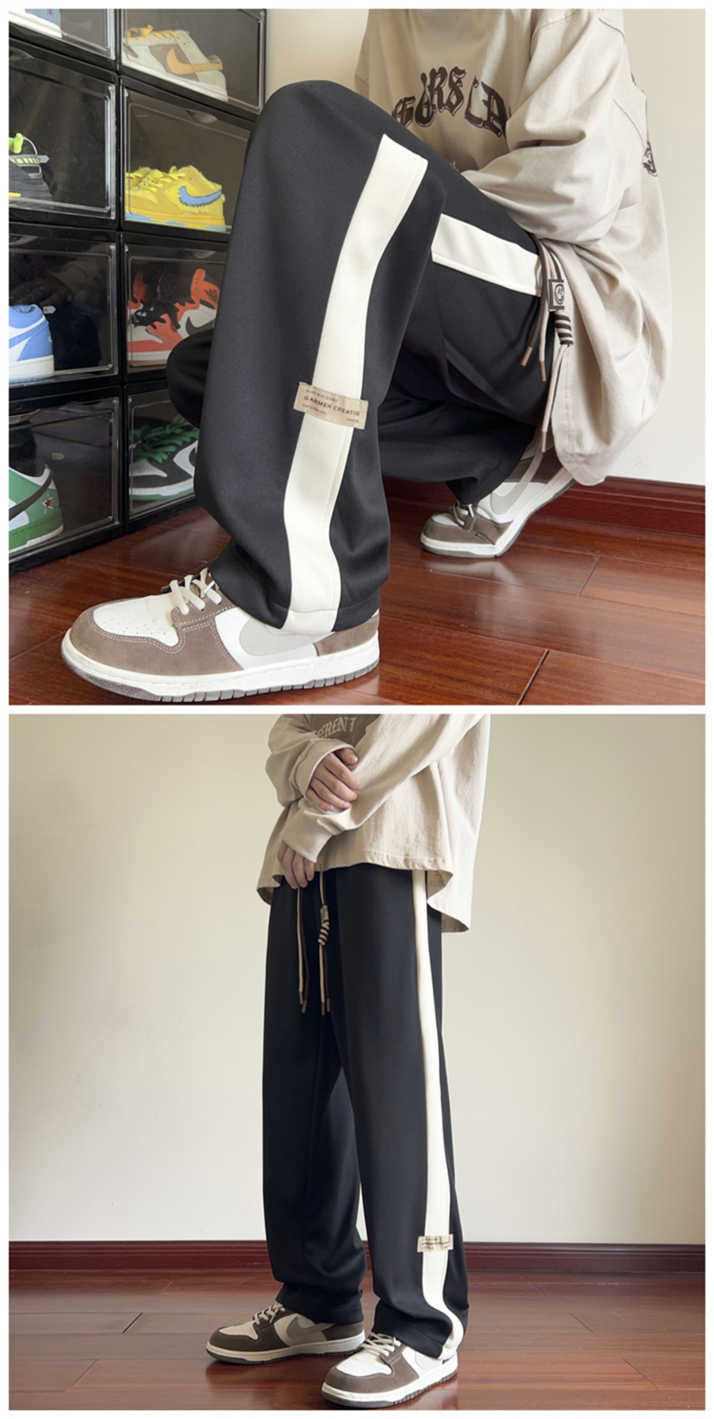 Wassup Happy Striped Pants Men's Autumn and Winter Trendy Loose Wide-Leg Straight Pants Casual Sports Sweatpants