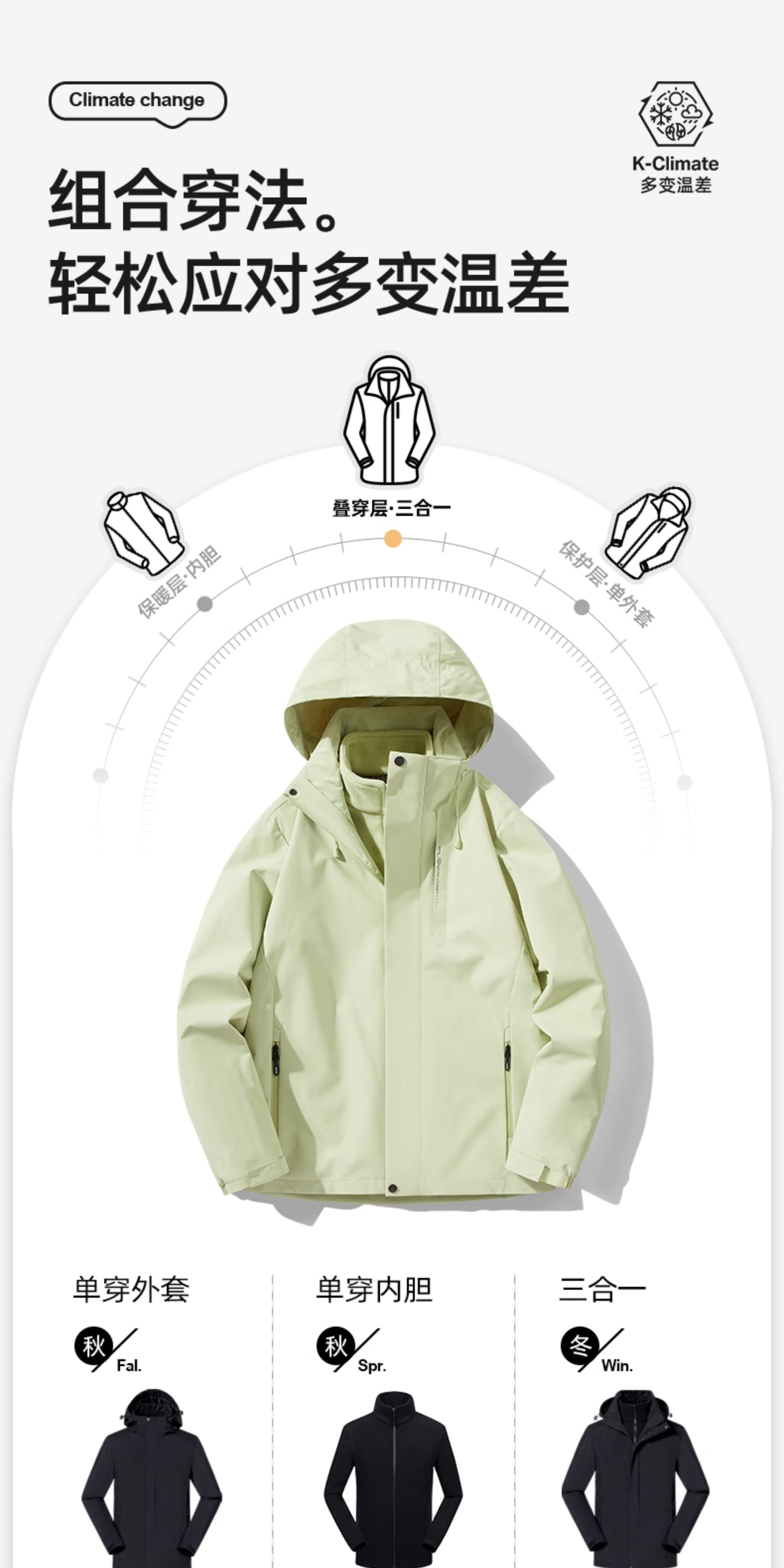 Woodpecker down Jacket for Women 2025 New Style Windbreaker Outdoor Three-In-One Windproof Jacket with Fleece Lining, Super Nice-Looking