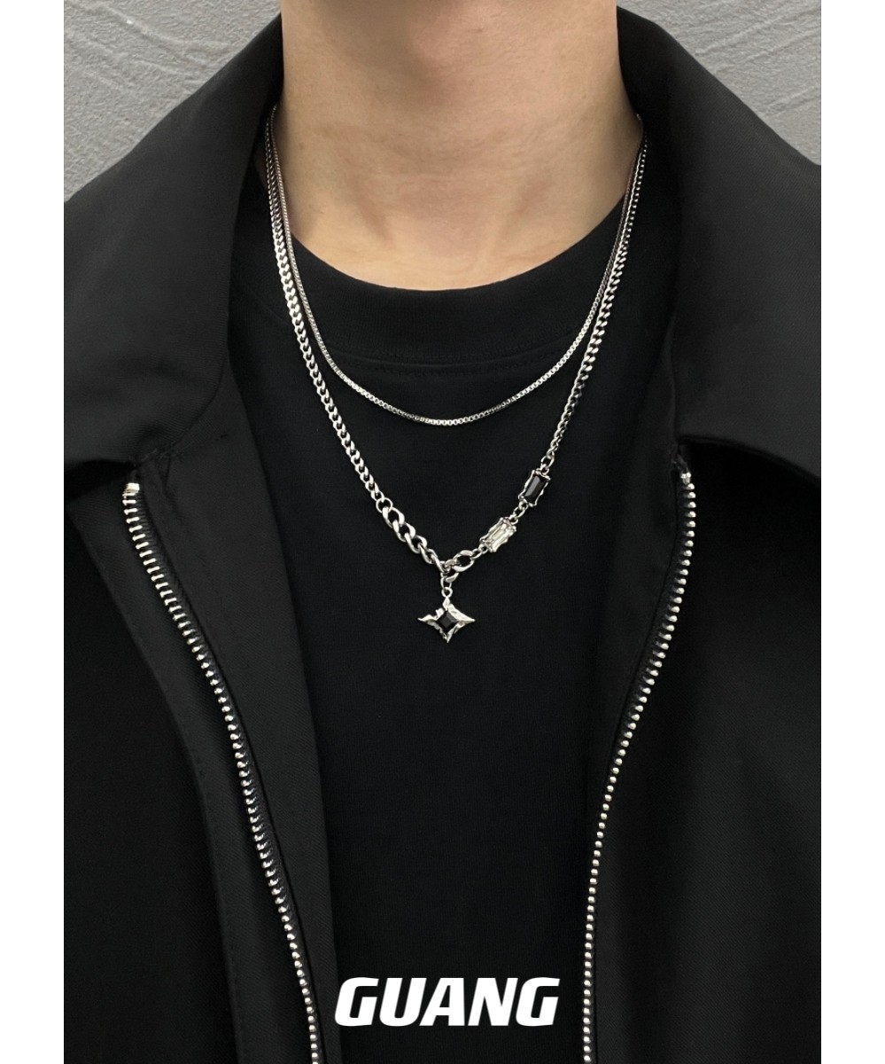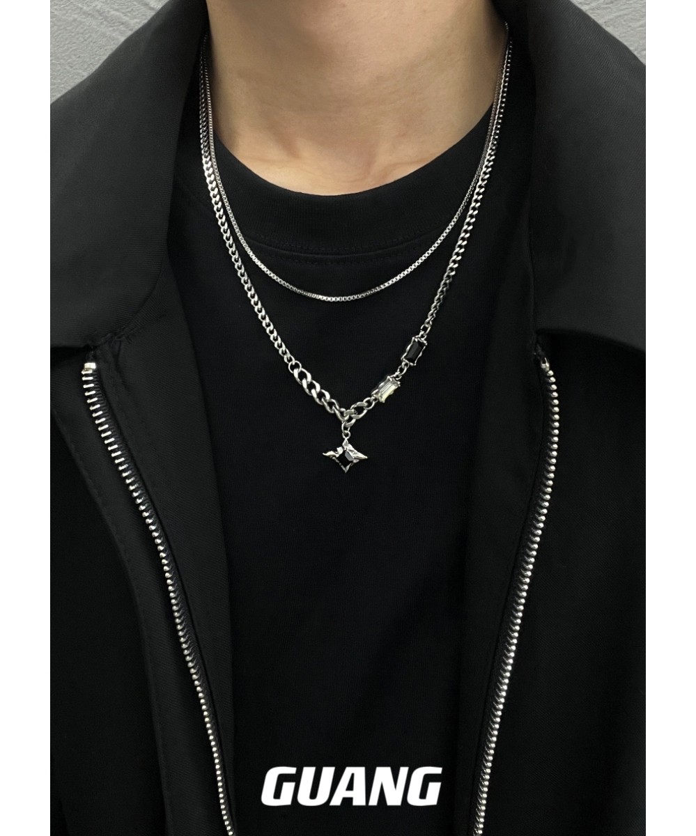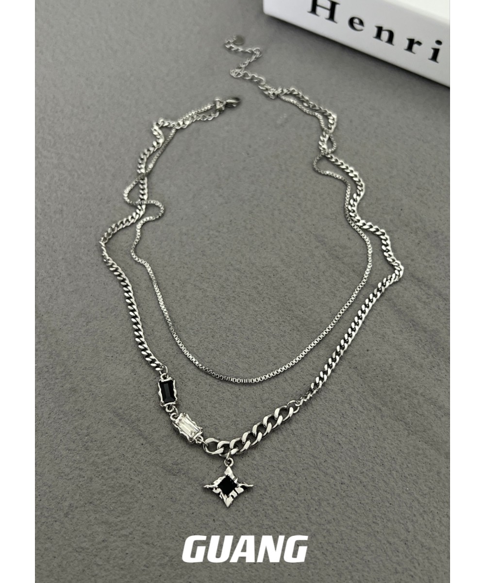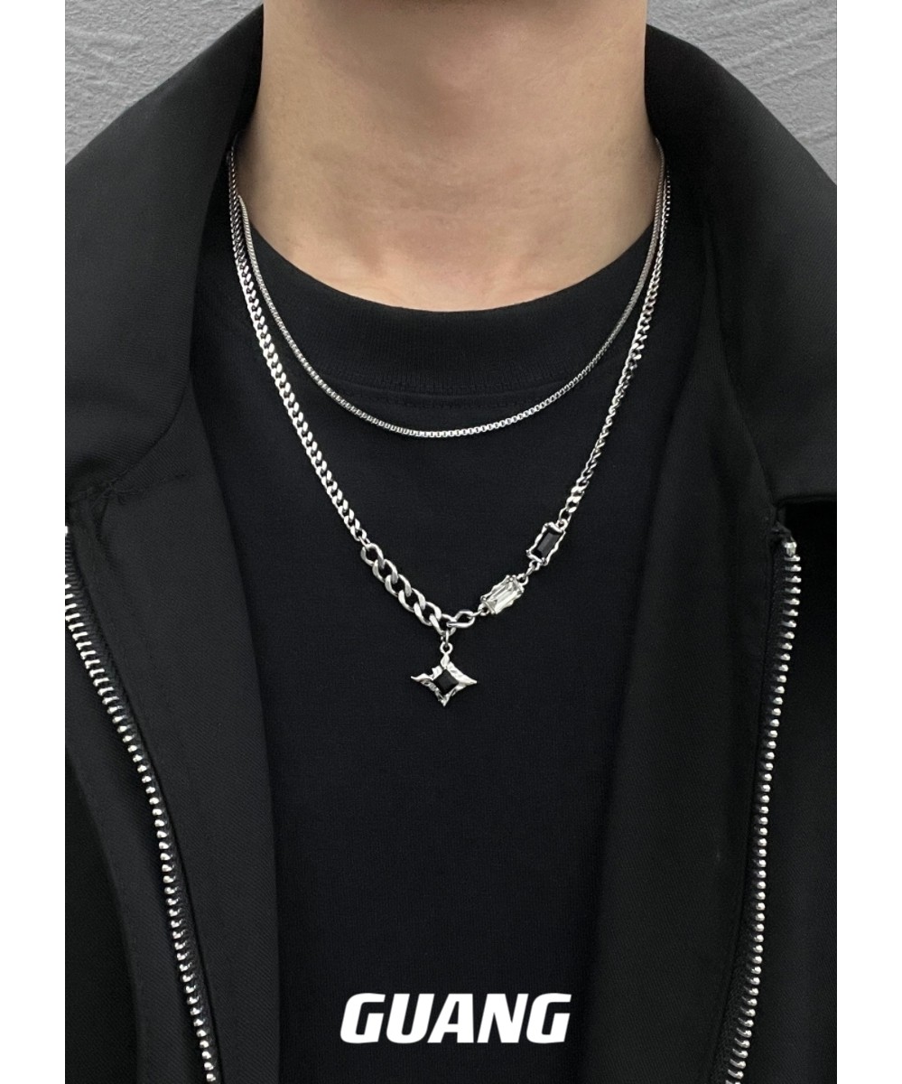 Guang Starburst Double Layer Necklace Men's Trendy Hip-Hop Light Luxury Niche Women's Sweater Chain High-End Layered Sweatshirt Chain