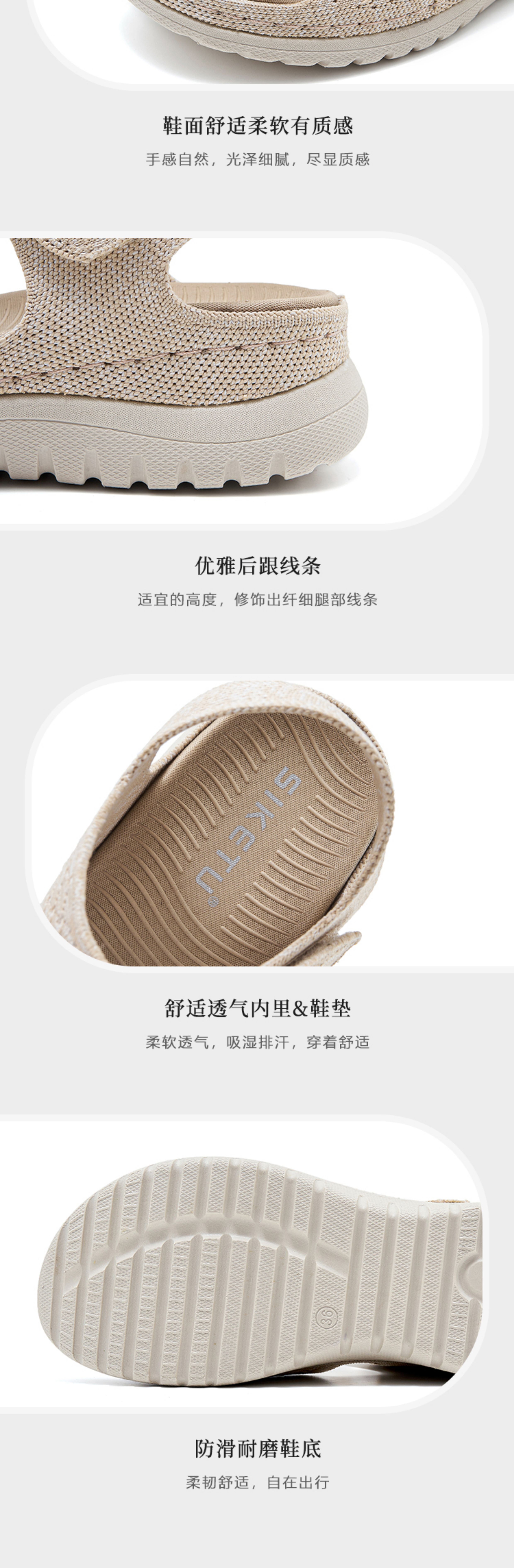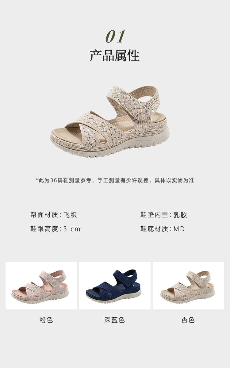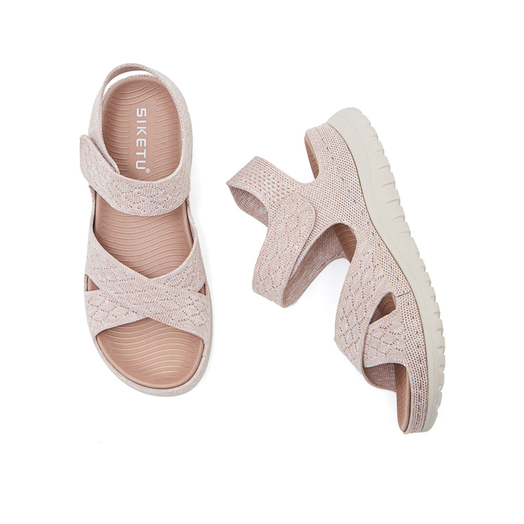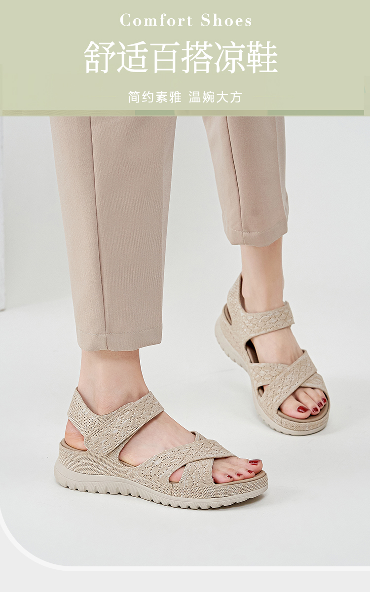 Summer Lightweight Water-Resistant Stitched Non-Slip Sandals for Women, Suitable for Outdoor Wear, Soft Sole, Vacation Travel, Beach, Flat, Large Size