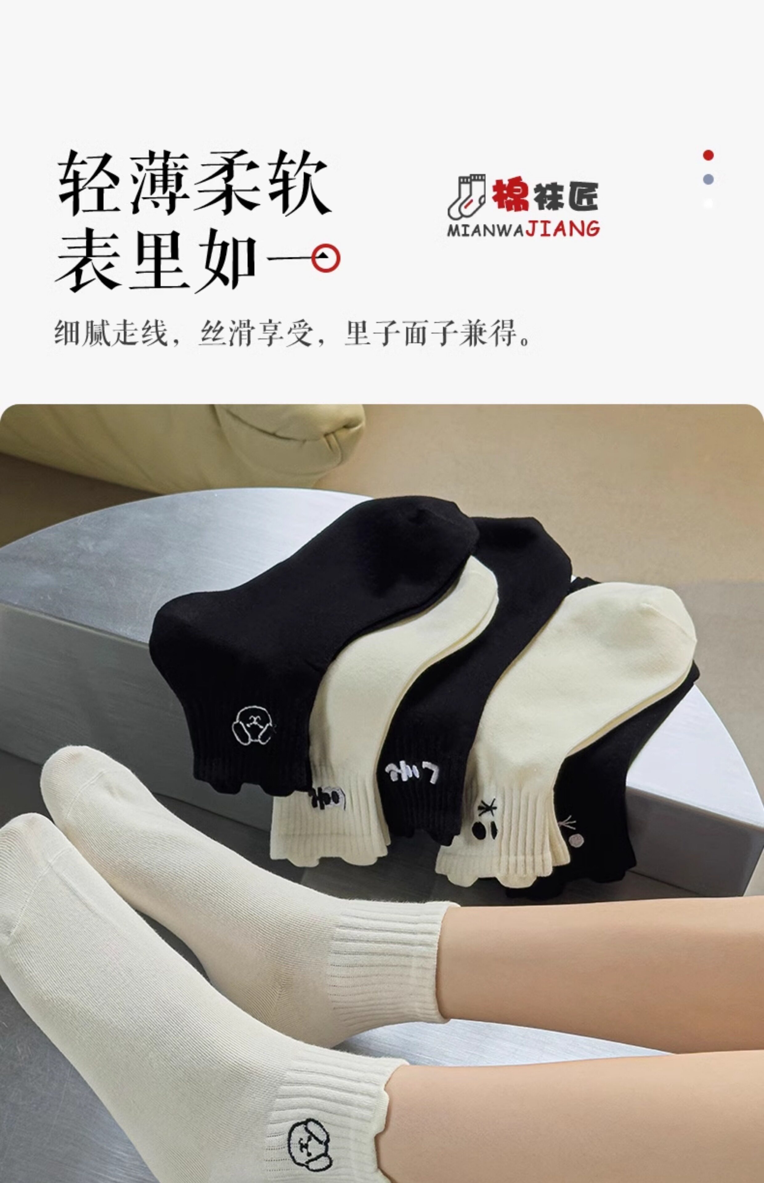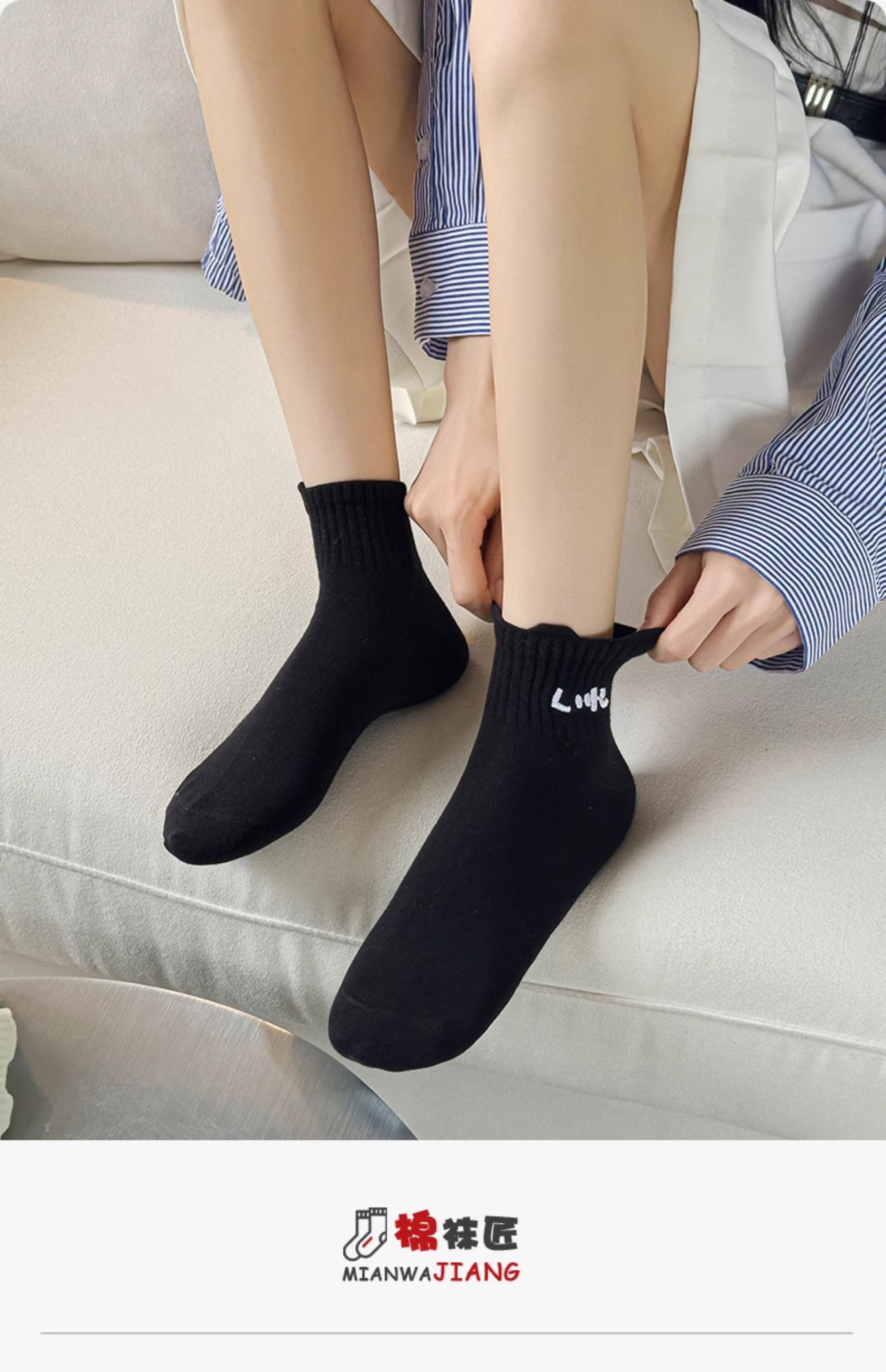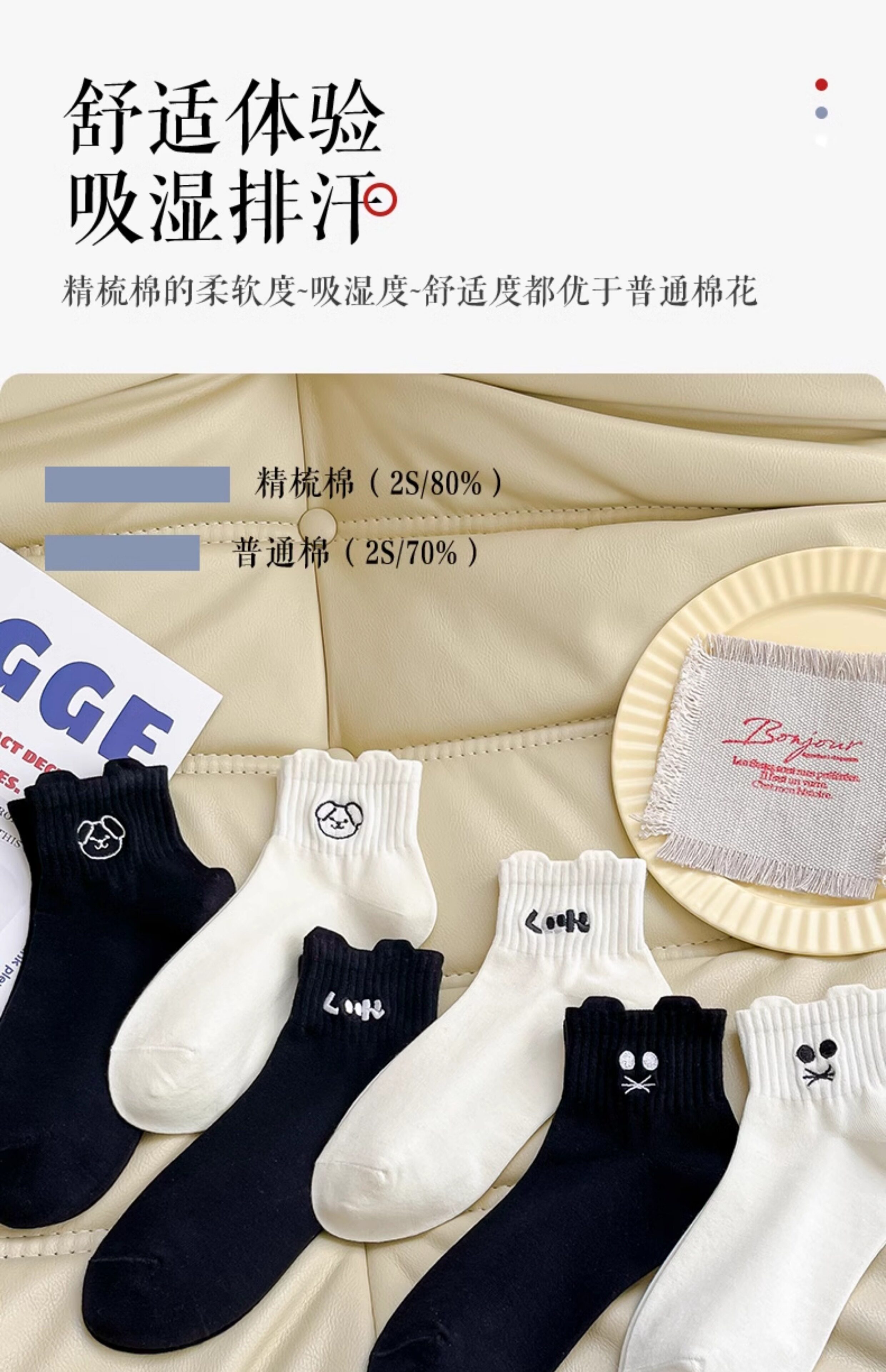 White Socks for Women, Pure Cotton Short Socks, Cute Embroidered Low-Cut Boat Socks, Black Japanese-Style Solid Color Cotton Socks, Versatile Women's Socks