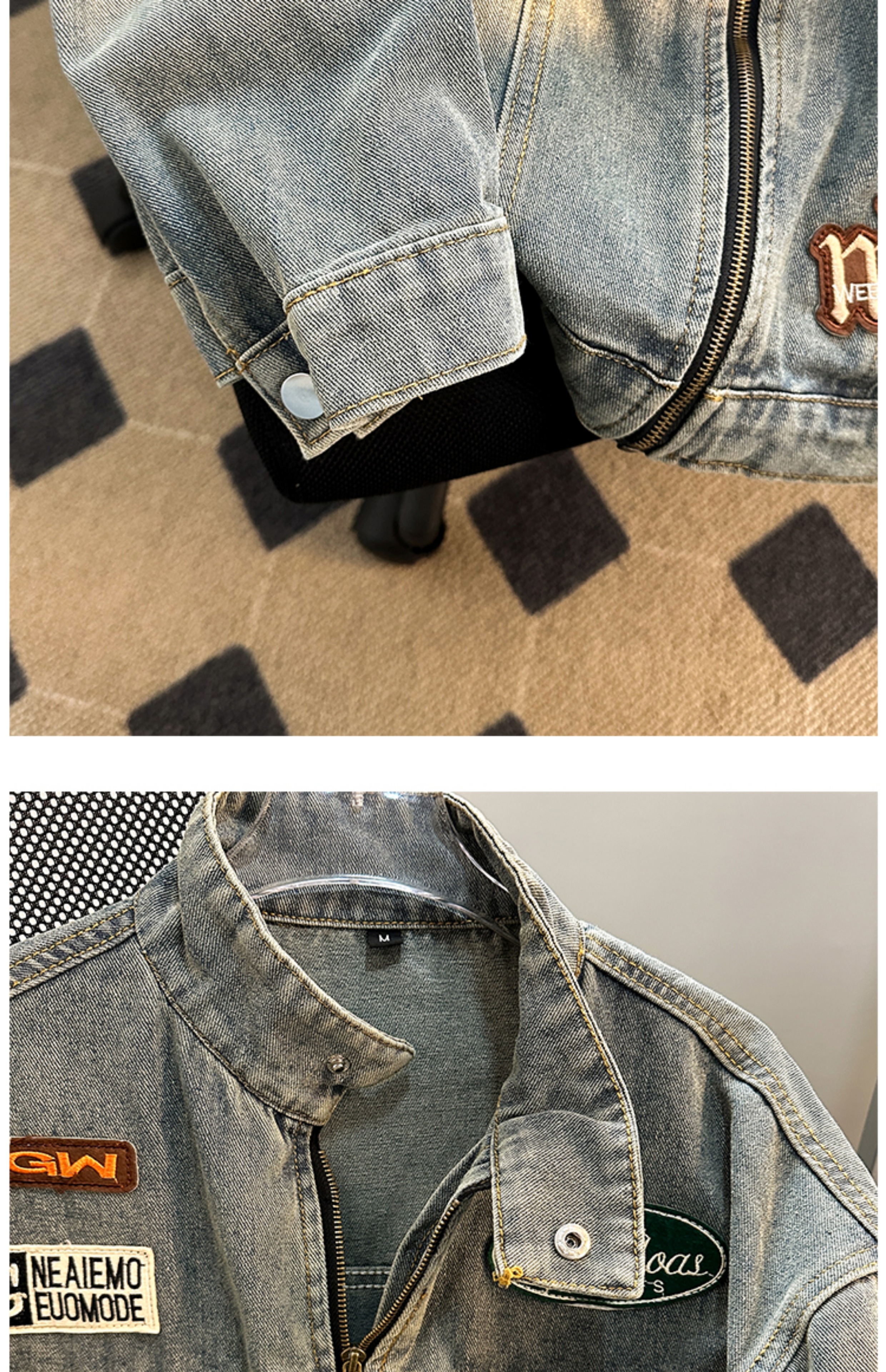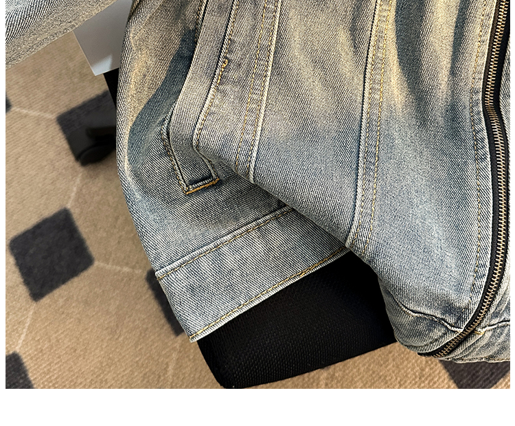 Stand Collar Biker Denim Jacket for Men, Spring and Autumn, American Style Trendy Brand Vibe, Cool and Loose, Versatile Zipper Jacket