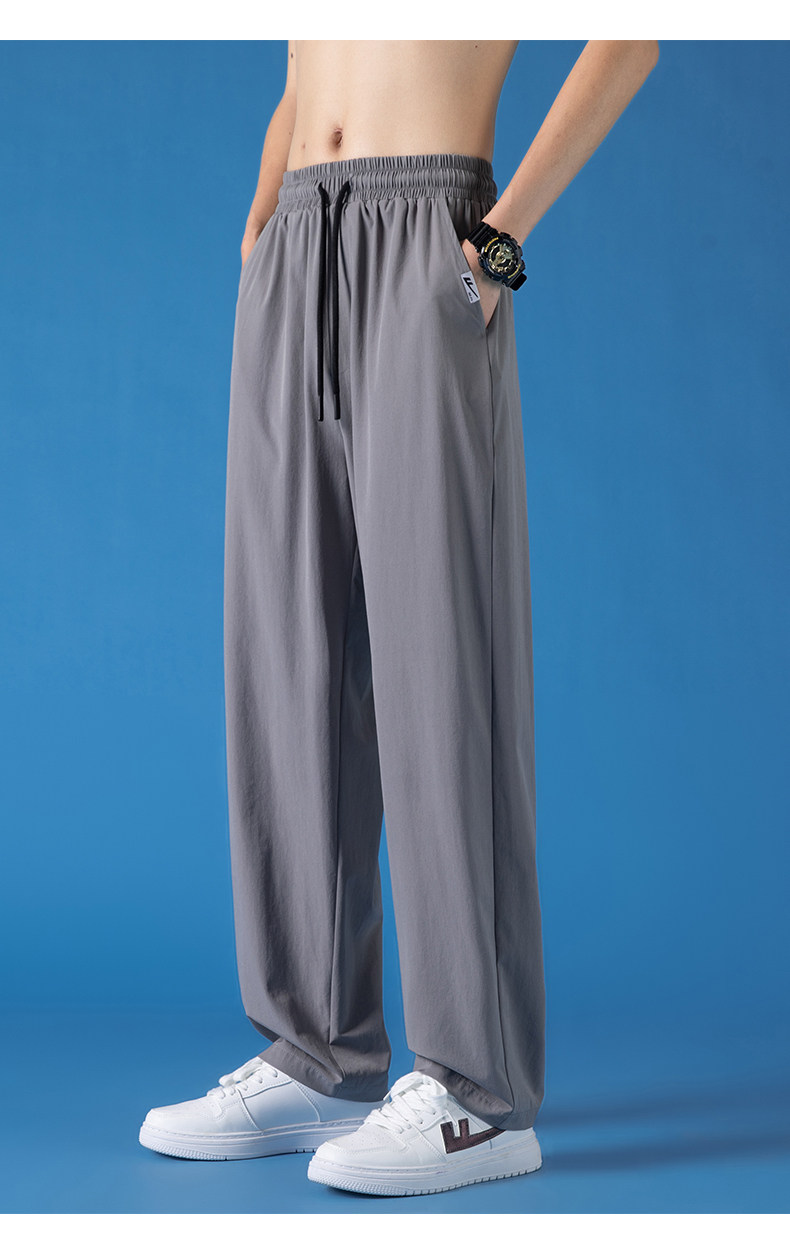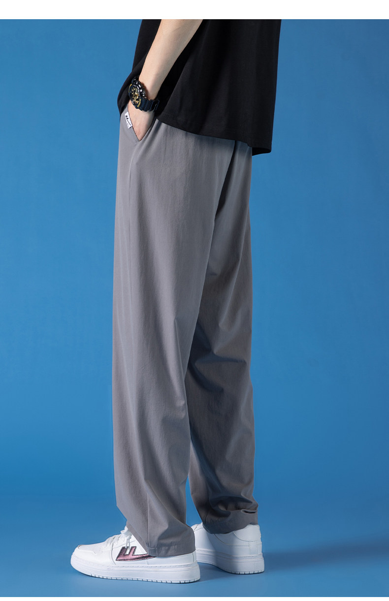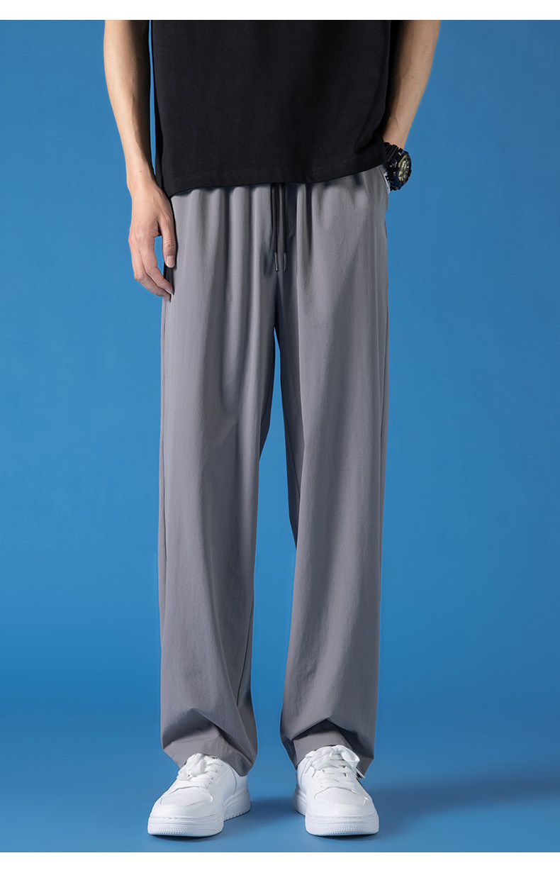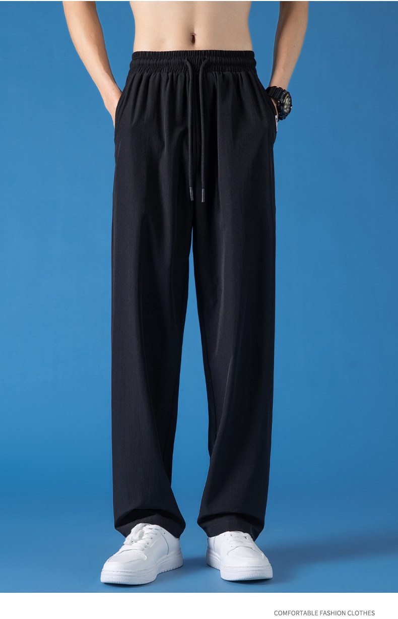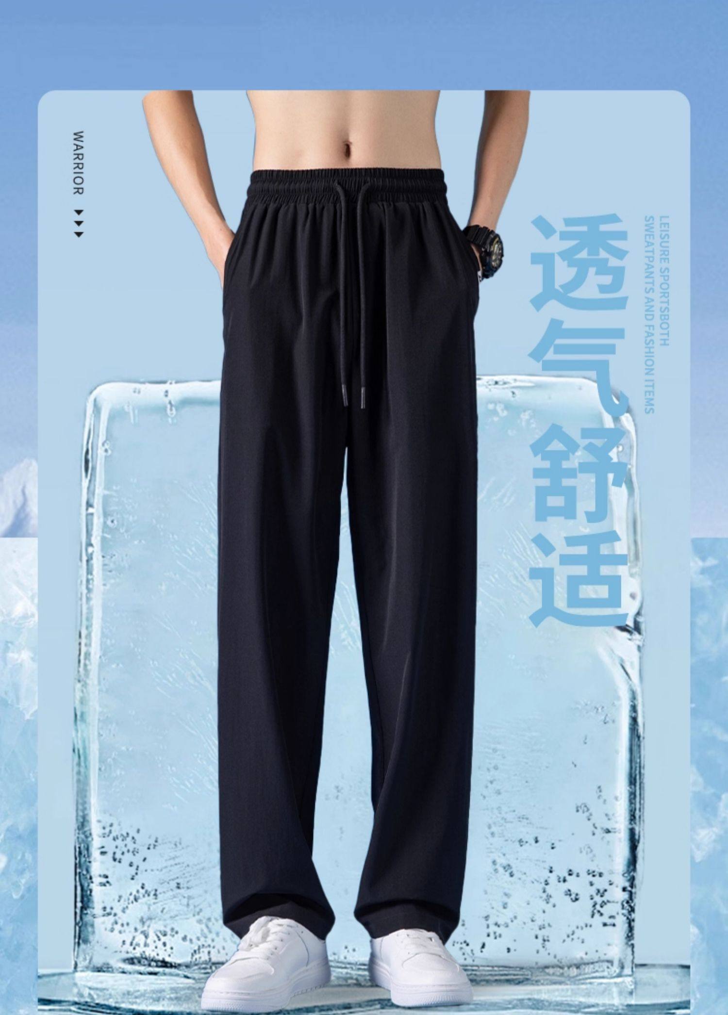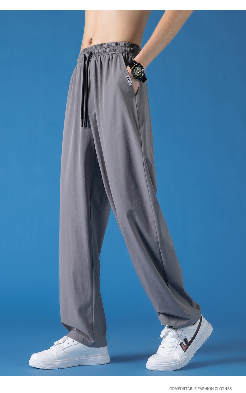Pull-Back Ice Silk Pants for Men, Summer Thin Sports Quick-Drying Pants, Men's Drapey Straight-Leg Casual Pants for Spring and Autumn