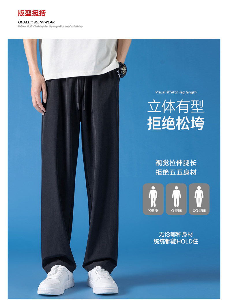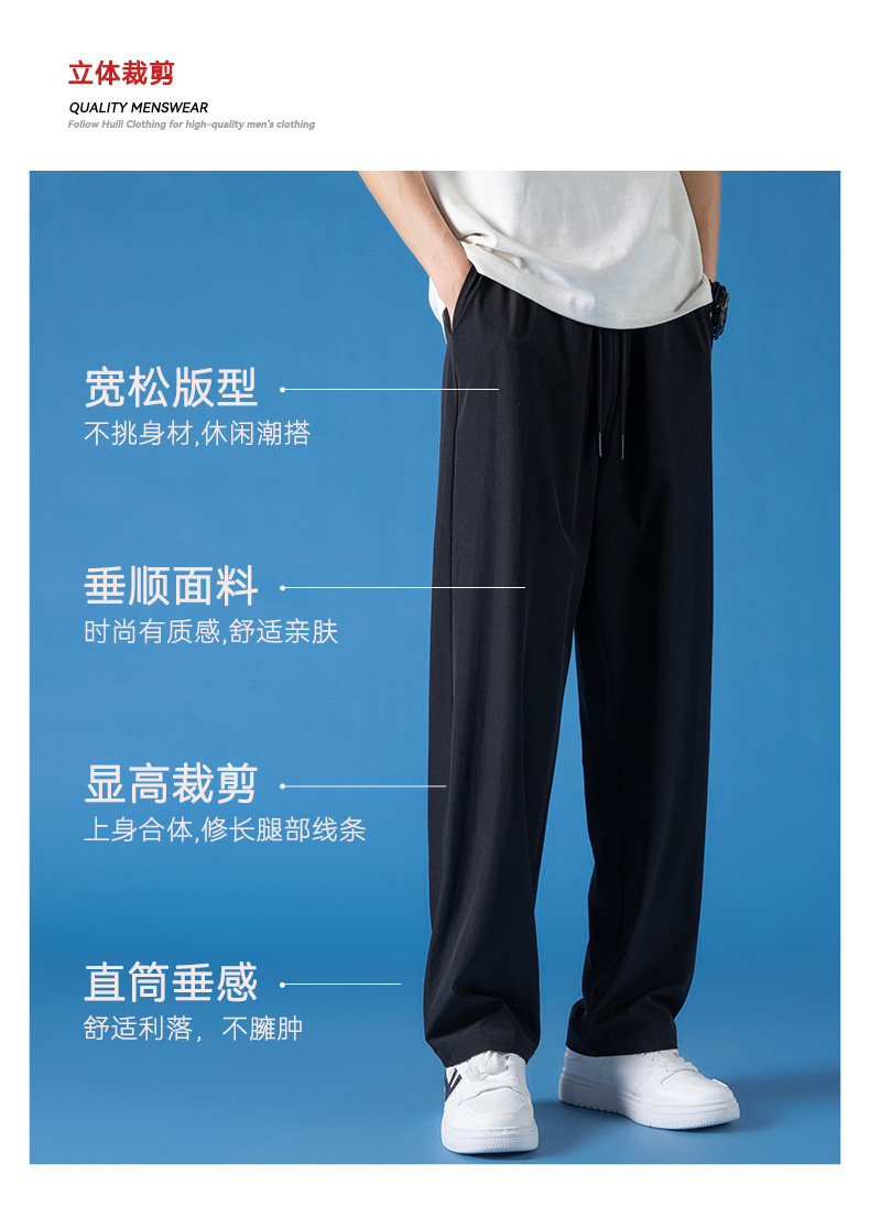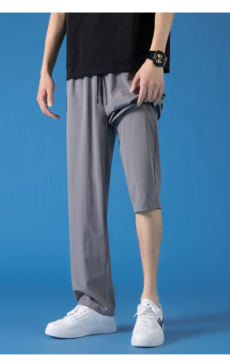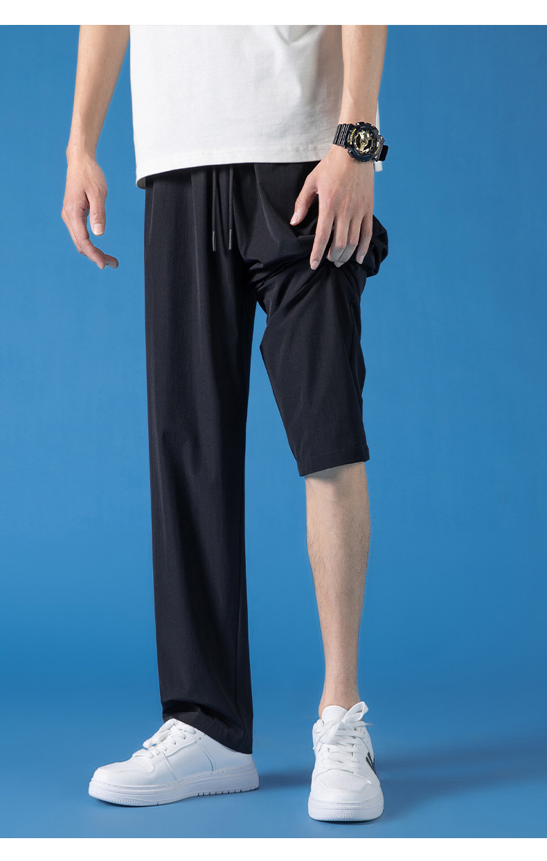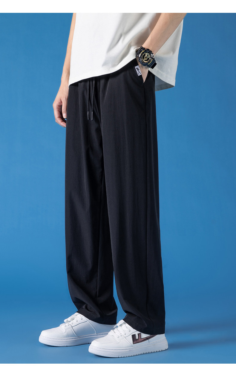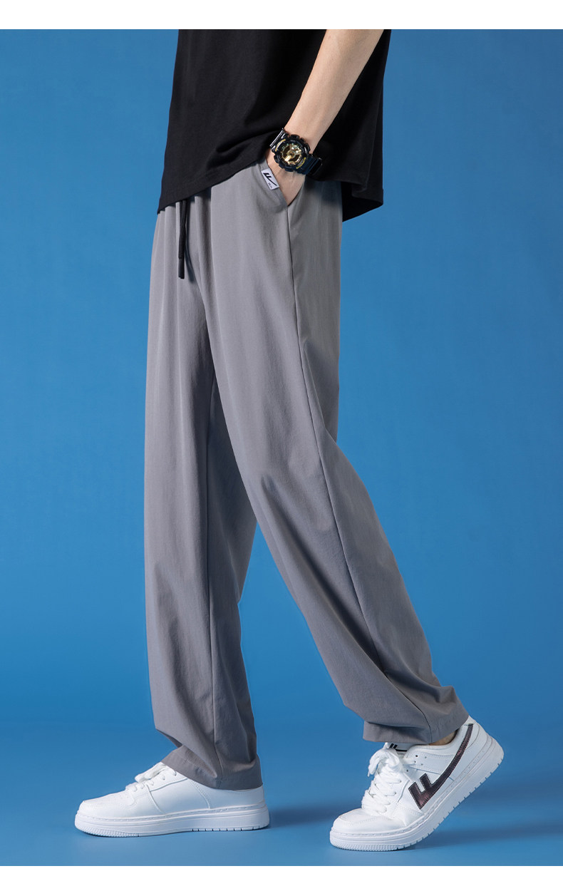 Pull-Back Ice Silk Pants for Men, Summer Thin Sports Quick-Drying Pants, Men's Drapey Straight-Leg Casual Pants for Spring and Autumn