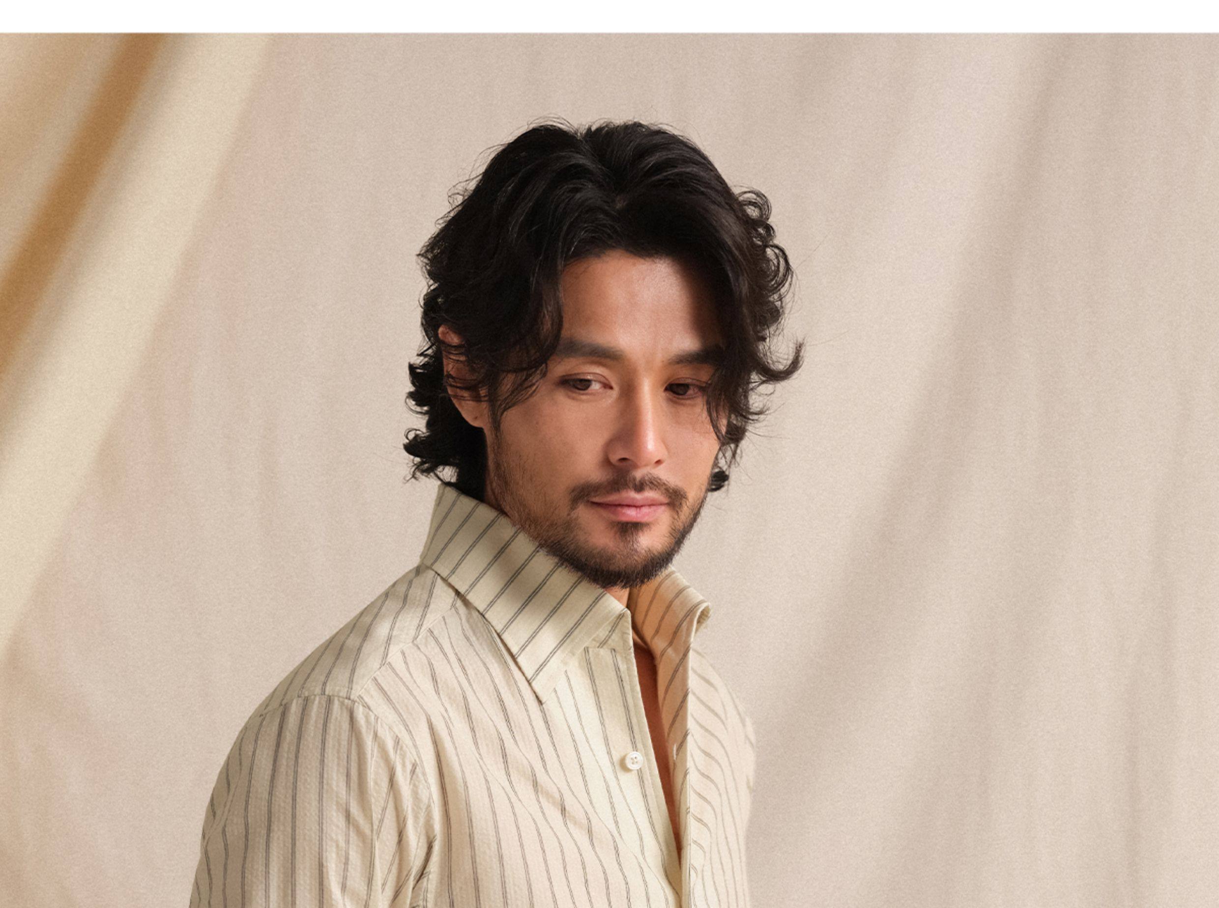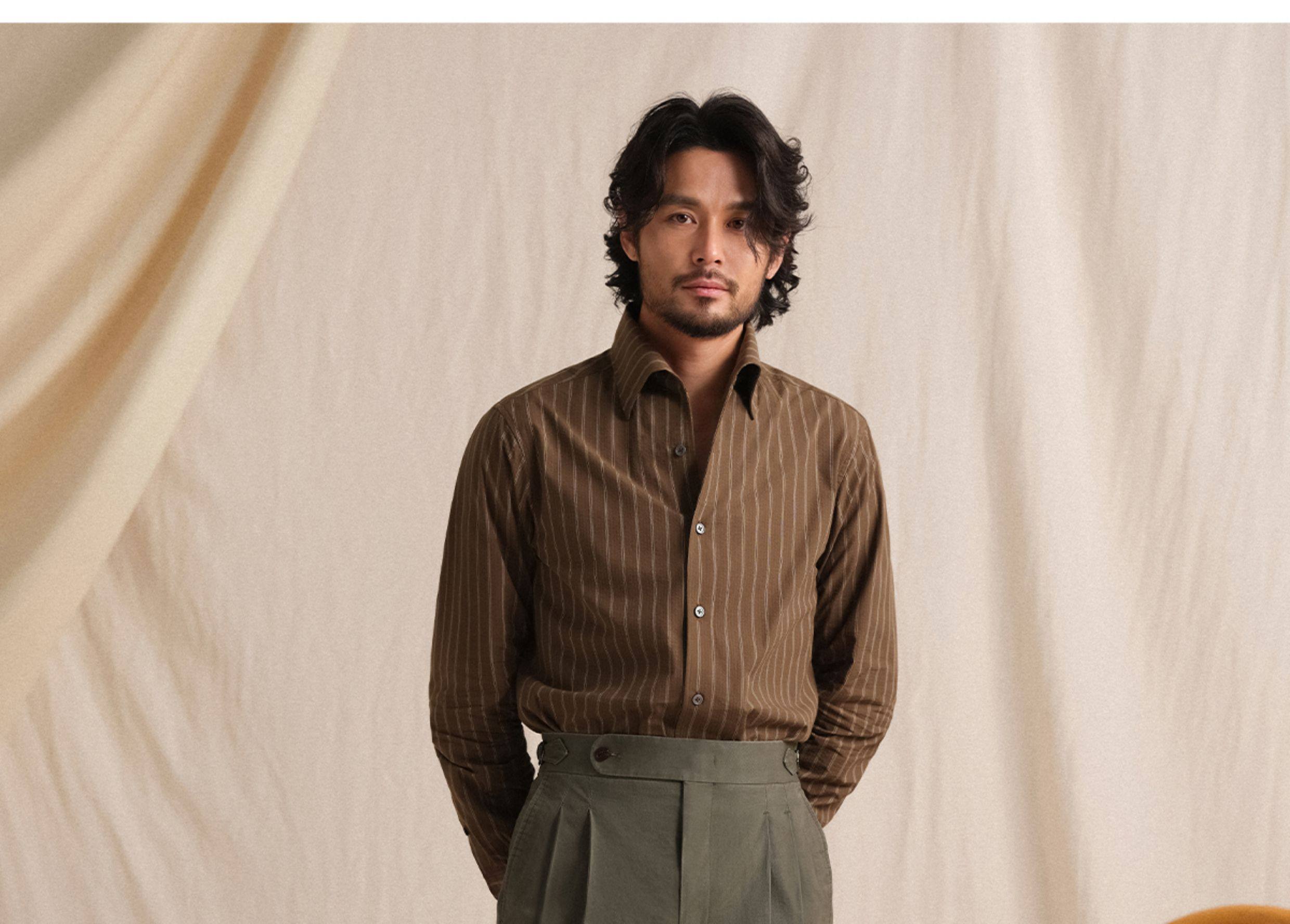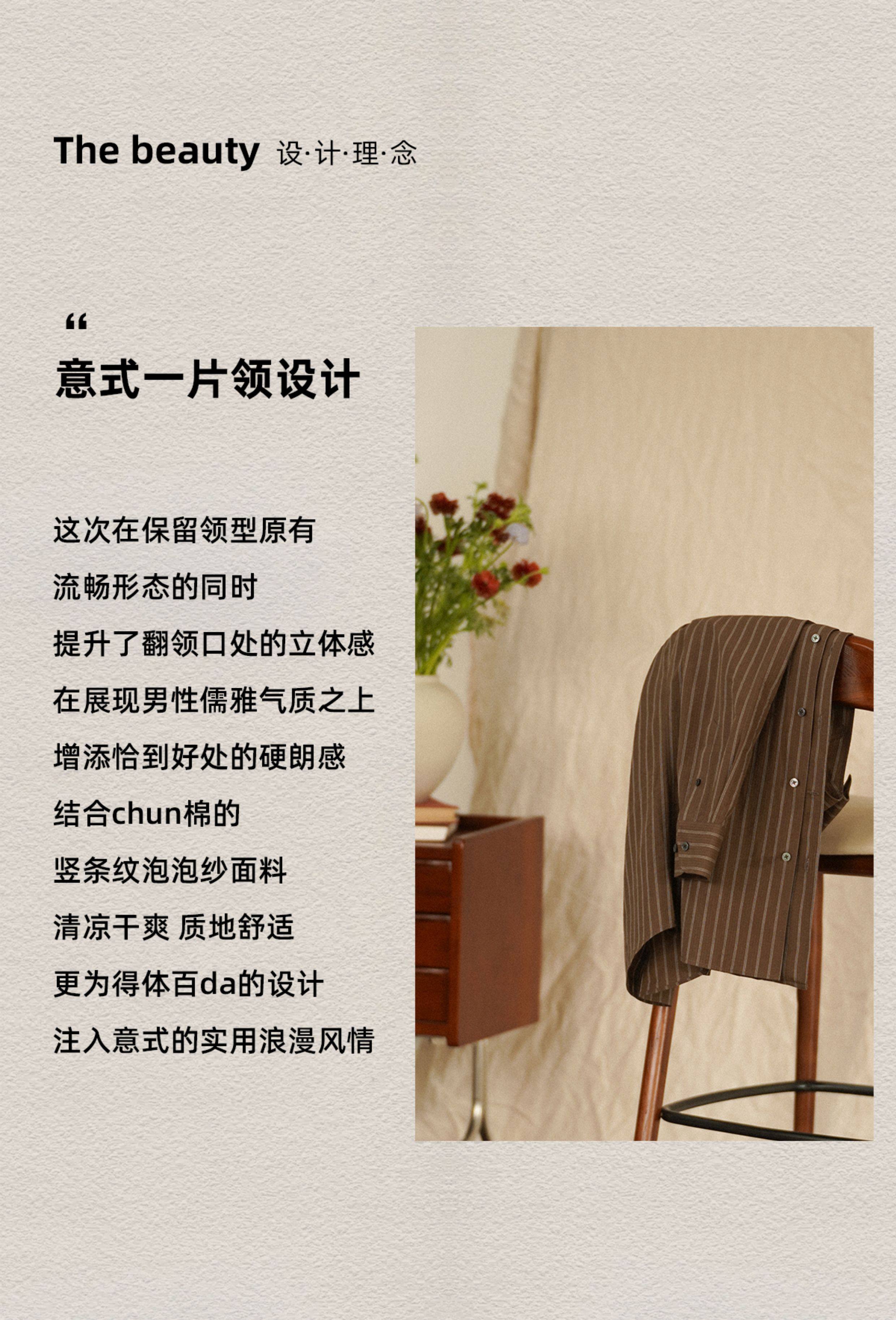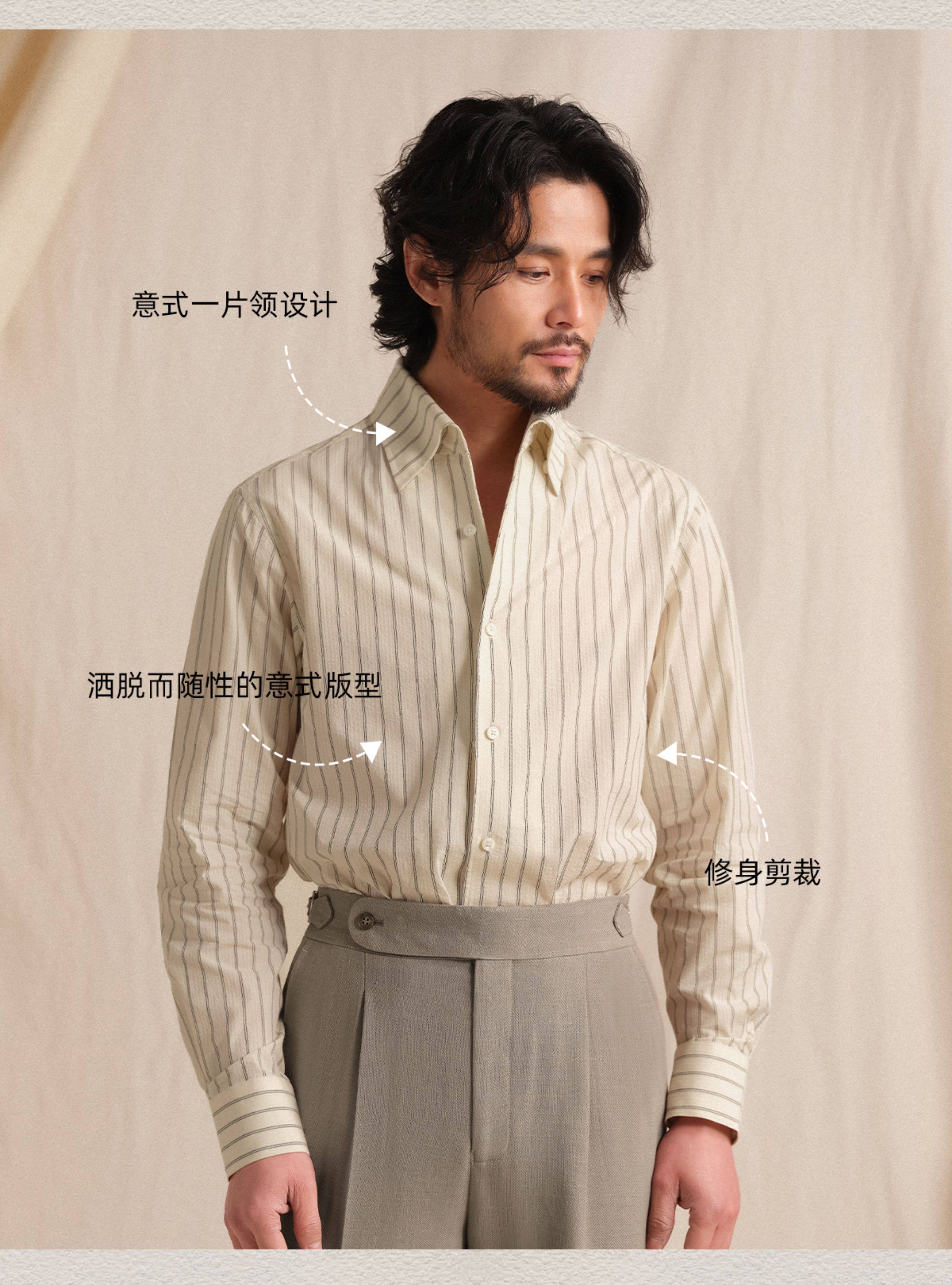 【Pure Cotton Bubble Yarn】Cultum Italian-Style One-Collar Striped Shirt for Men, Long Sleeve, Casual, Vintage, Lightweight Shirt