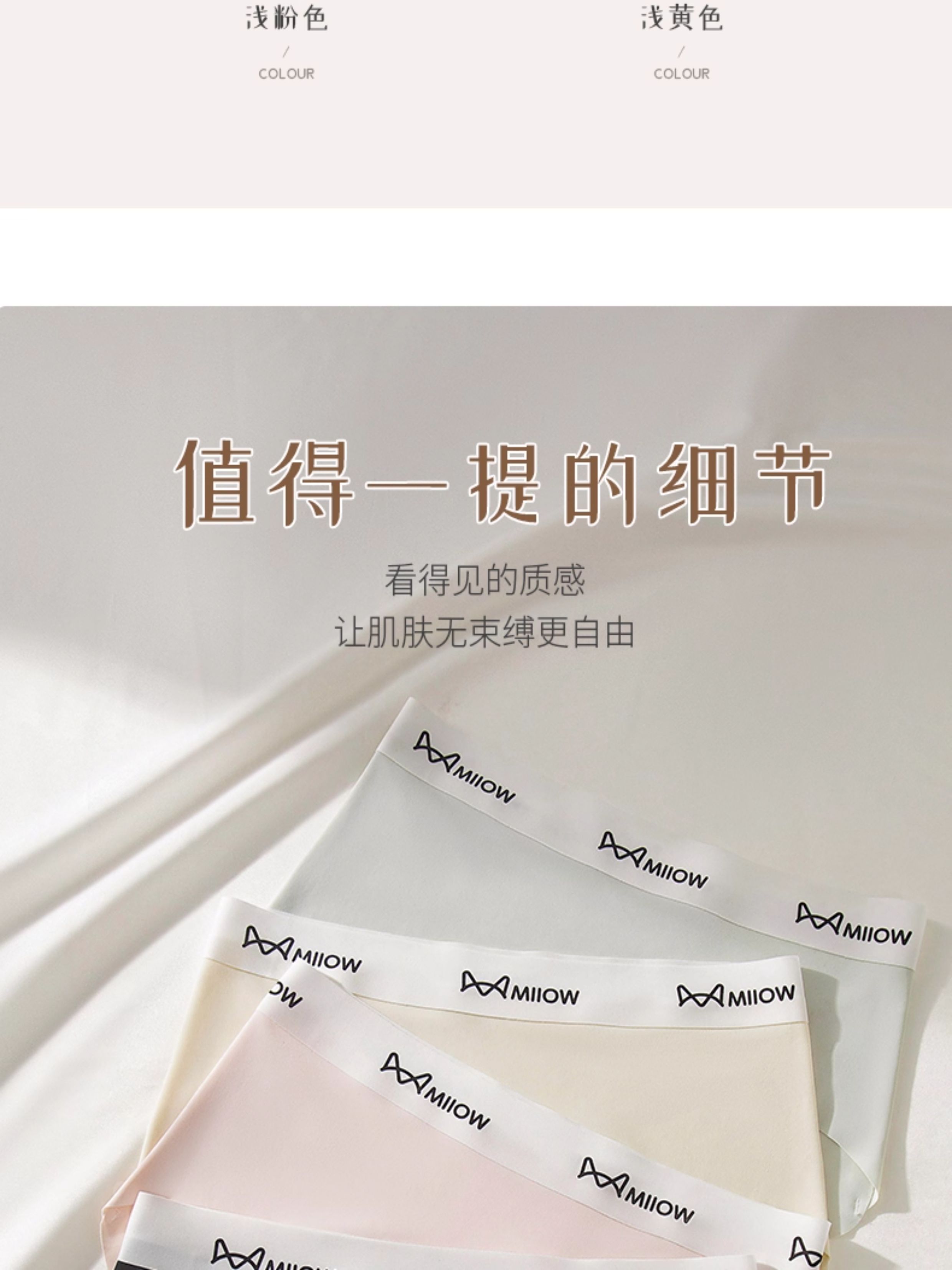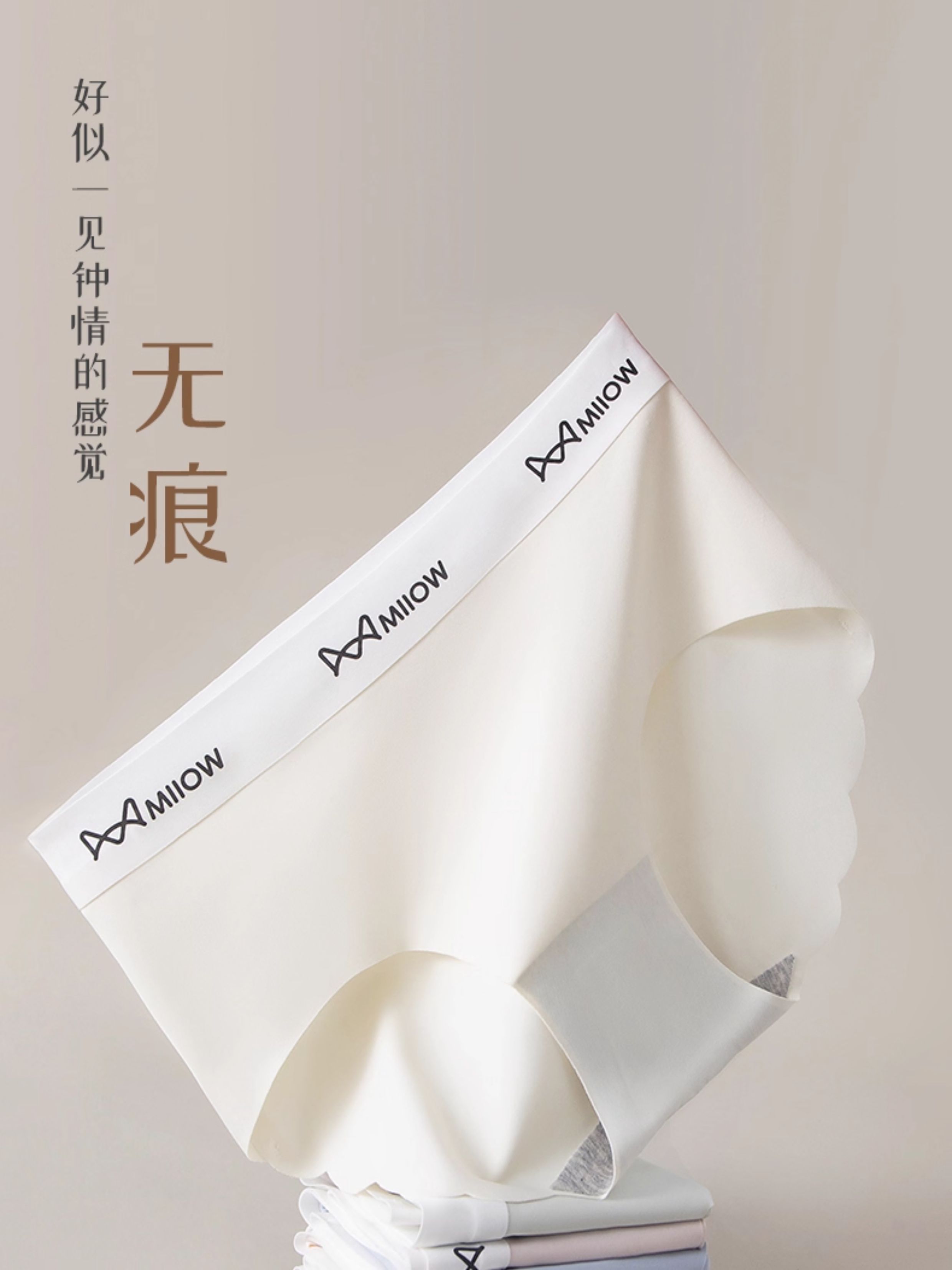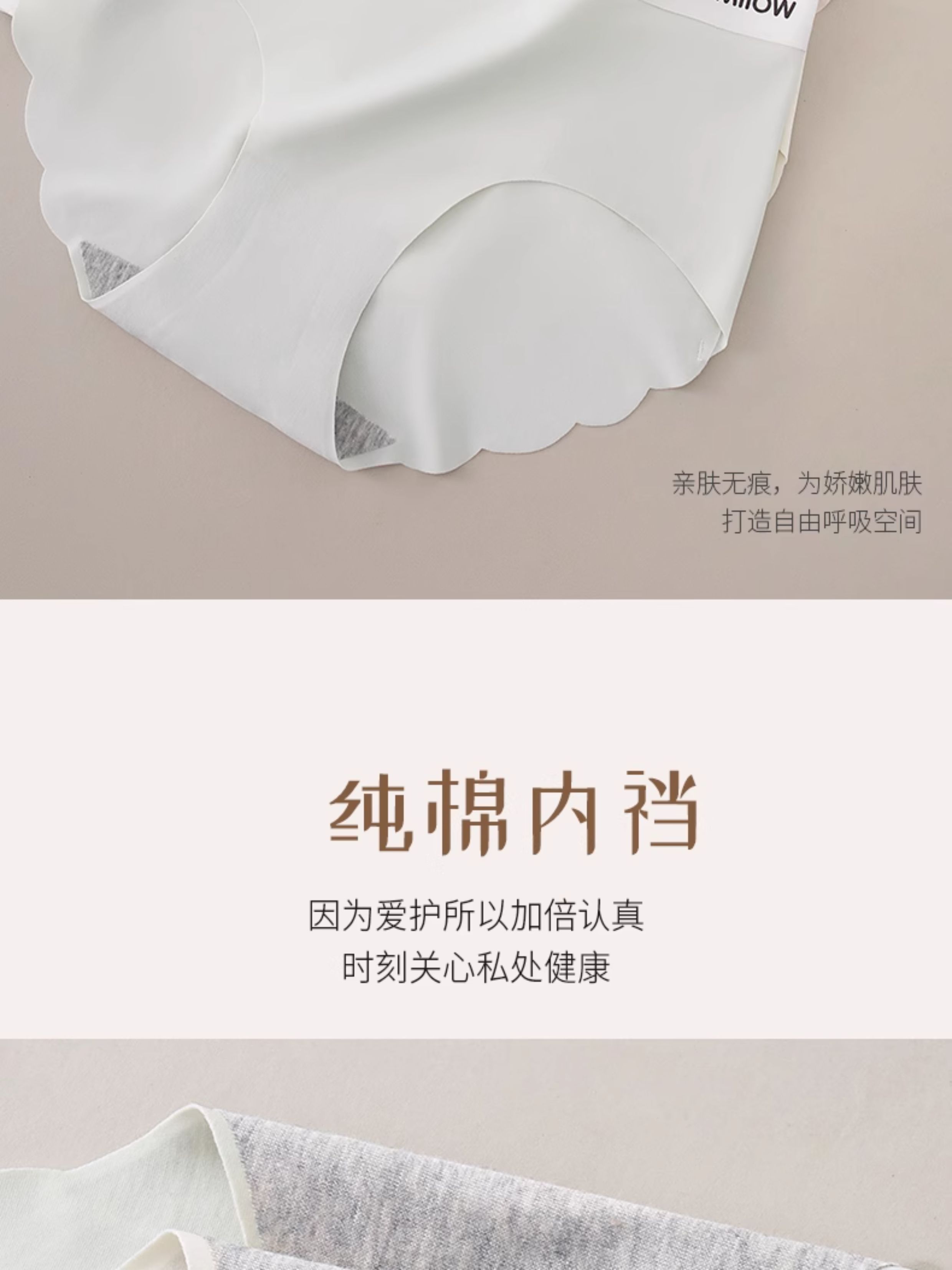 Catman Pure Cotton Women's Underwear Antibacterial Crotch Ice Silk Seamless Sexy Non-Binding Mid-Waist Breathable Briefs