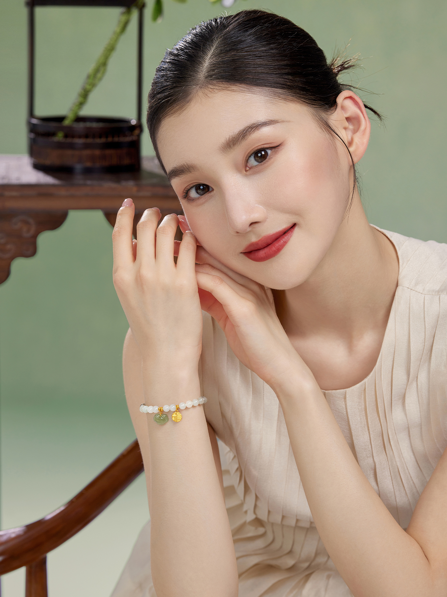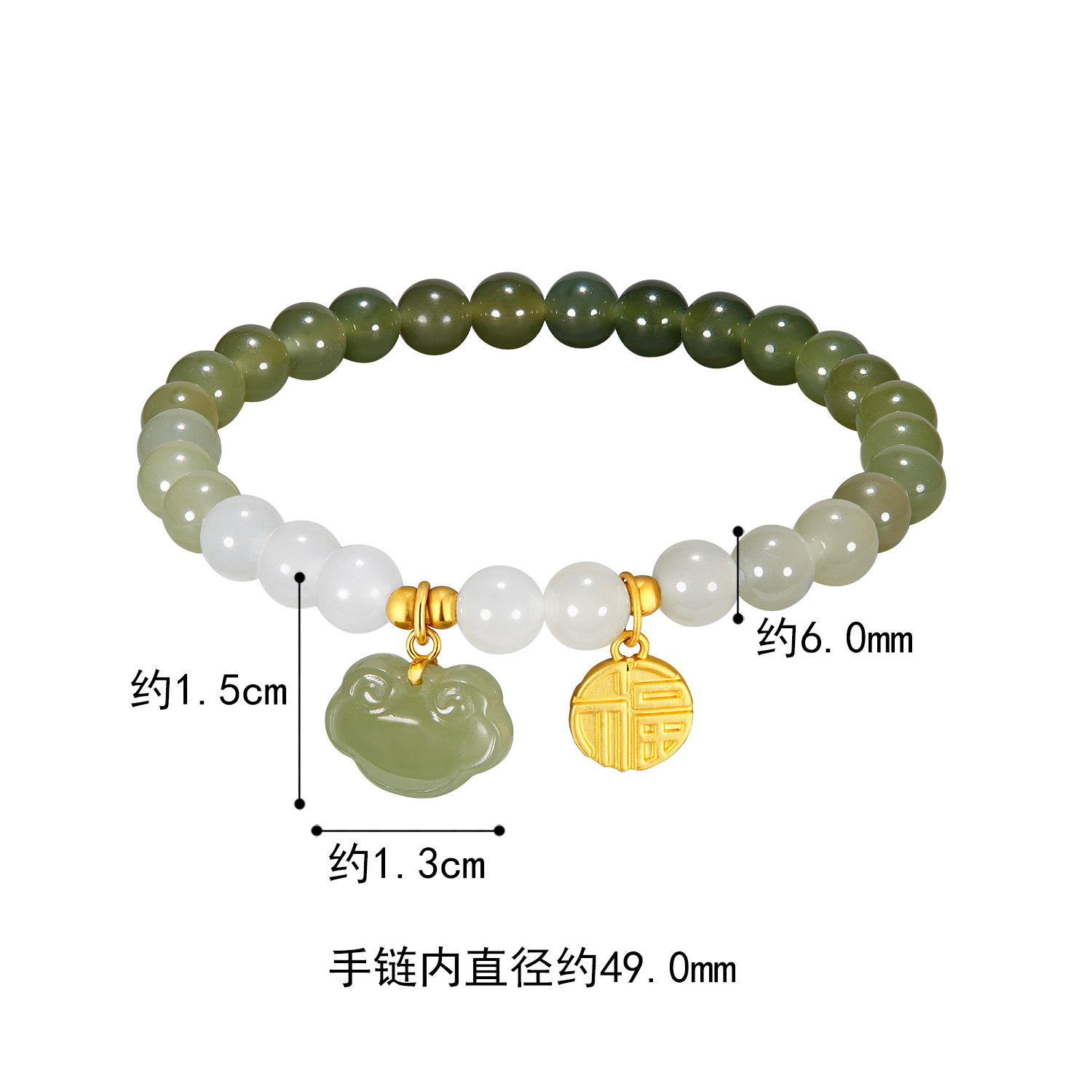 Lukfook Jewelry Ruyi Xiangyun Fortune Pendant Gold Bracelet for Women Hetian Jade Beaded Bracelet Pricing G31Tba1B0010