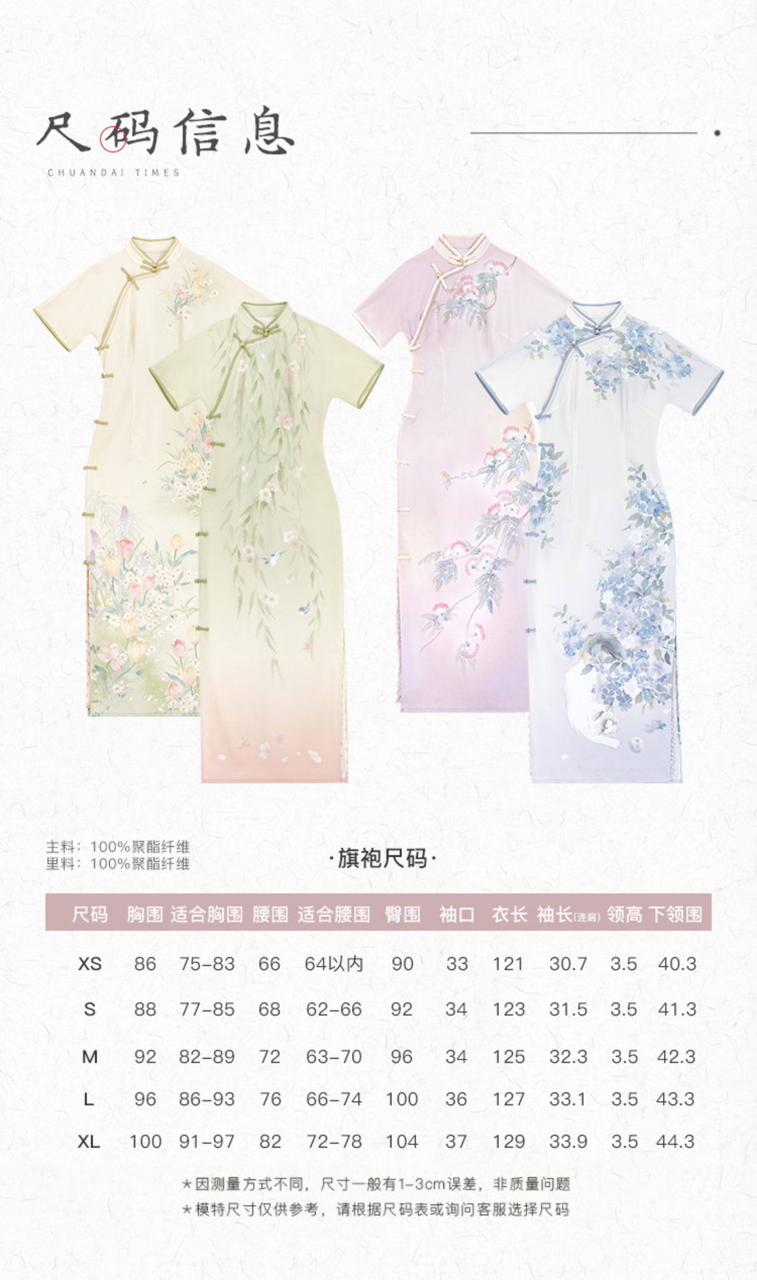 Chuandai Time: Spring and Clear Weather, Cheongsam-Style Printed Dress for Women, Waist-Cinching, Mid-Length, Full-Buttoned Qipao