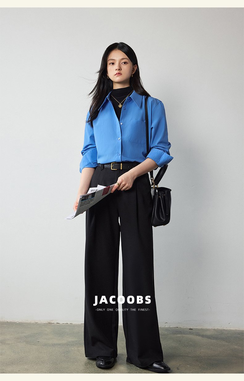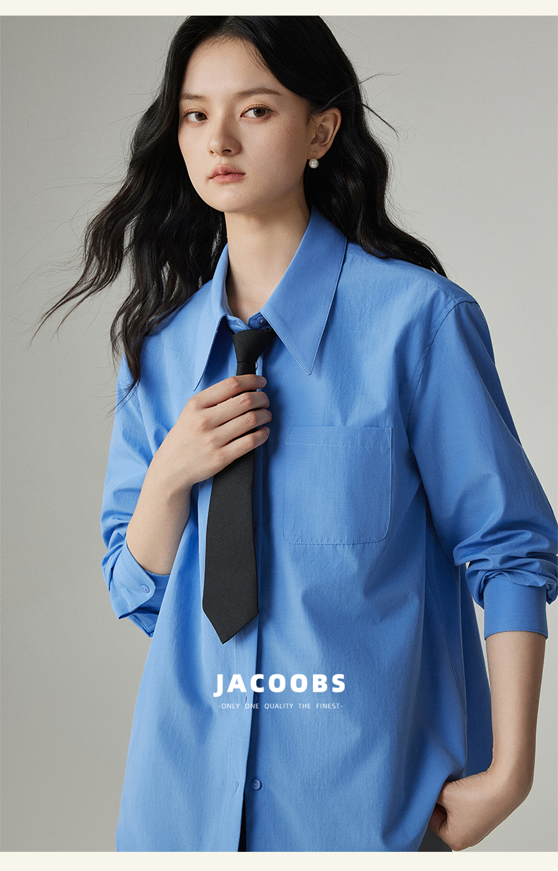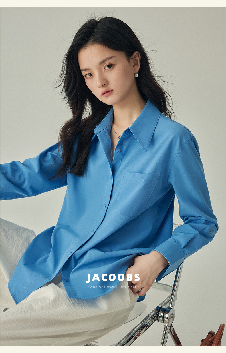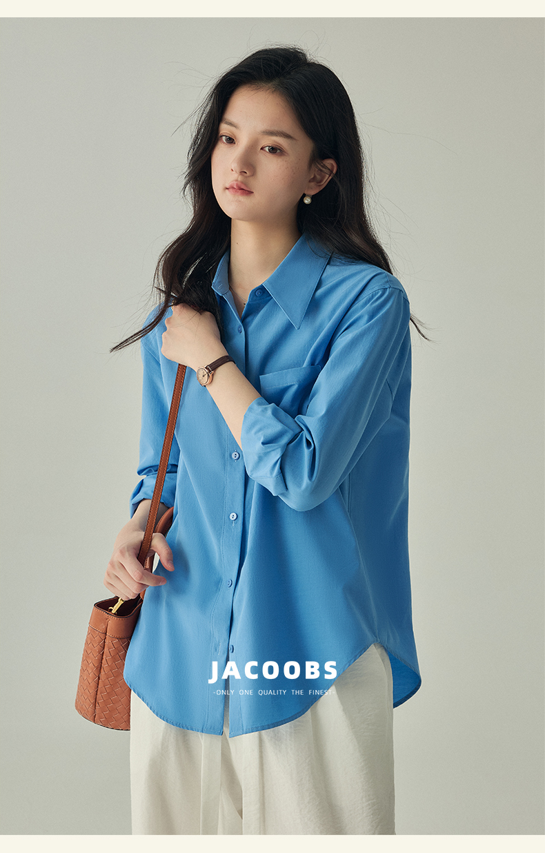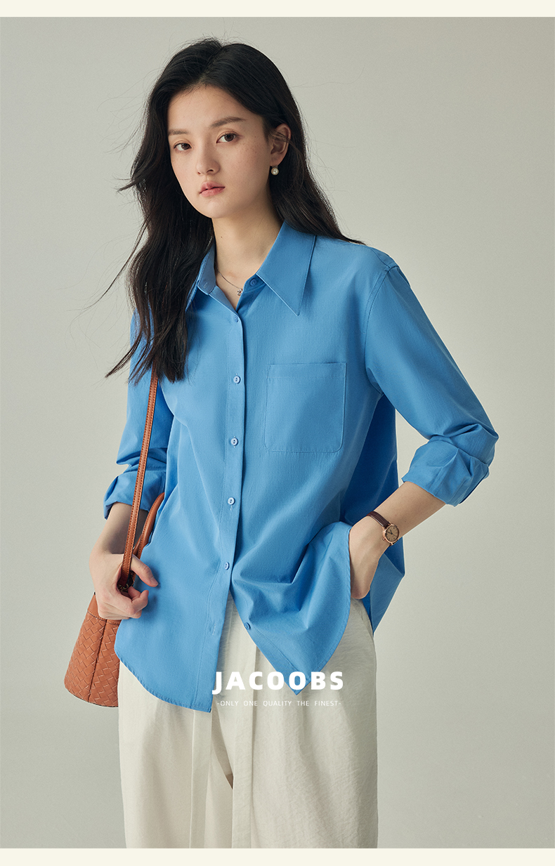 Yakejia's Shirts Can Be Worn in All Seasons! Klein Blue French-Style Airy Professional Commuting Slightly Loose Long-Sleeved Shirt