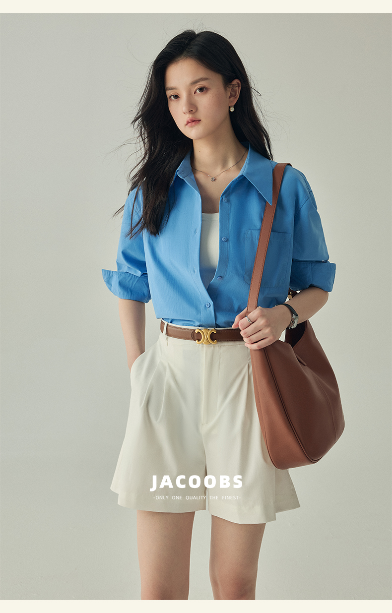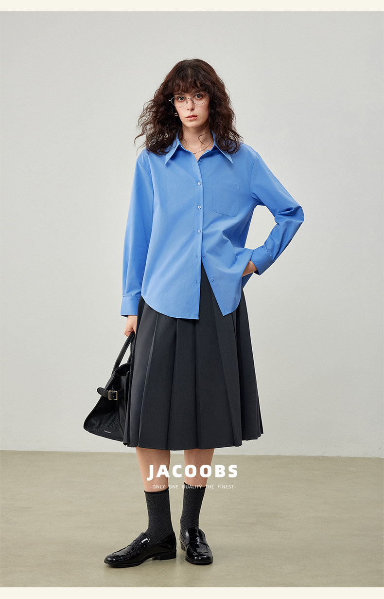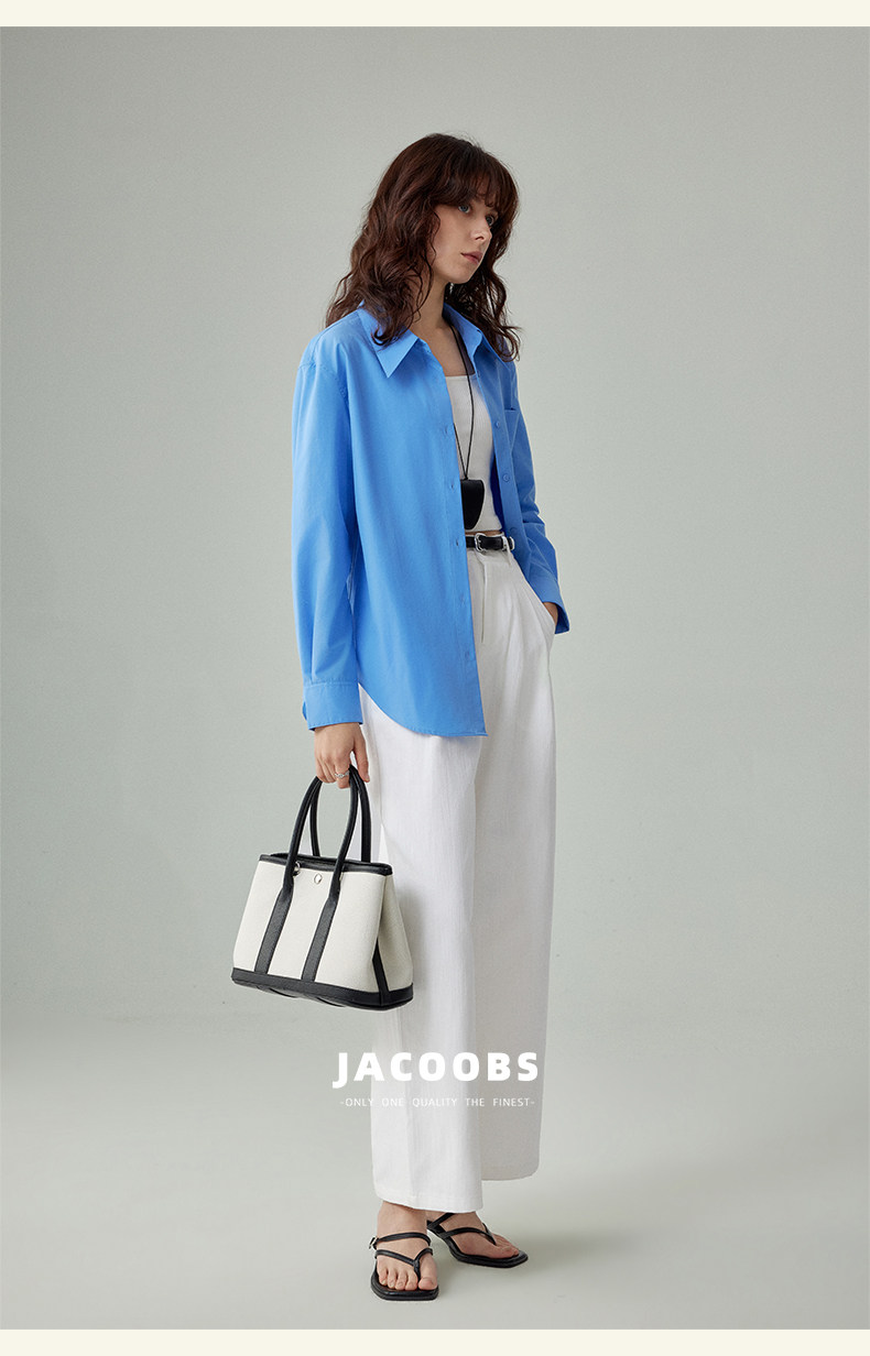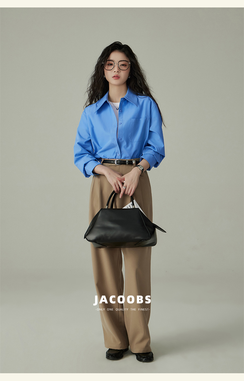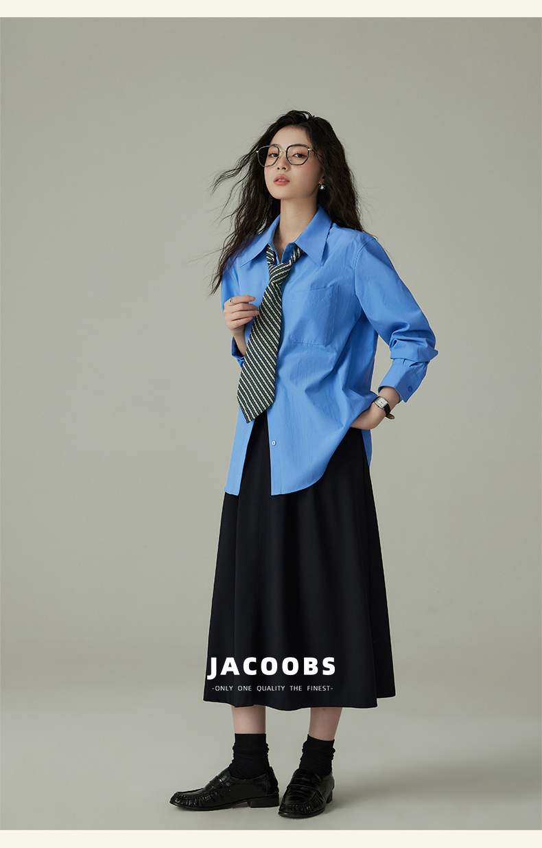 Yakejia's Shirts Can Be Worn in All Seasons! Klein Blue French-Style Airy Professional Commuting Slightly Loose Long-Sleeved Shirt
