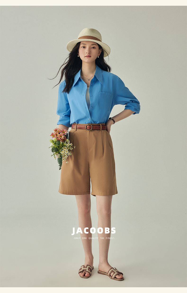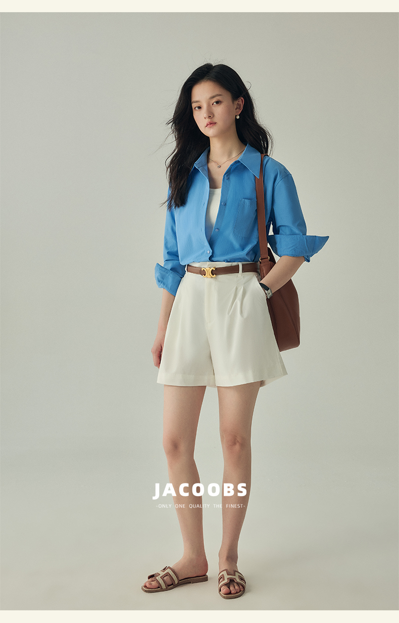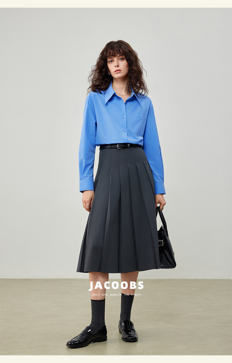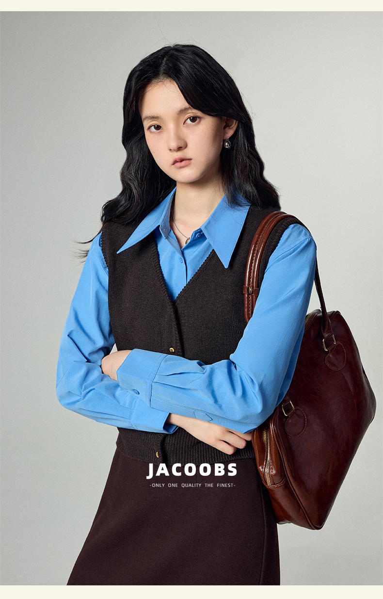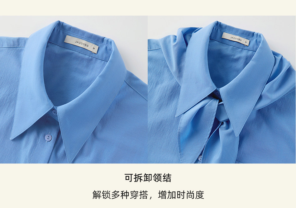 Yakejia's Shirts Can Be Worn in All Seasons! Klein Blue French-Style Airy Professional Commuting Slightly Loose Long-Sleeved Shirt