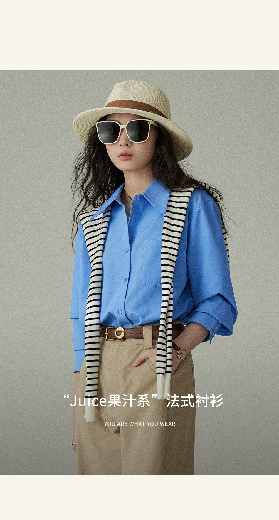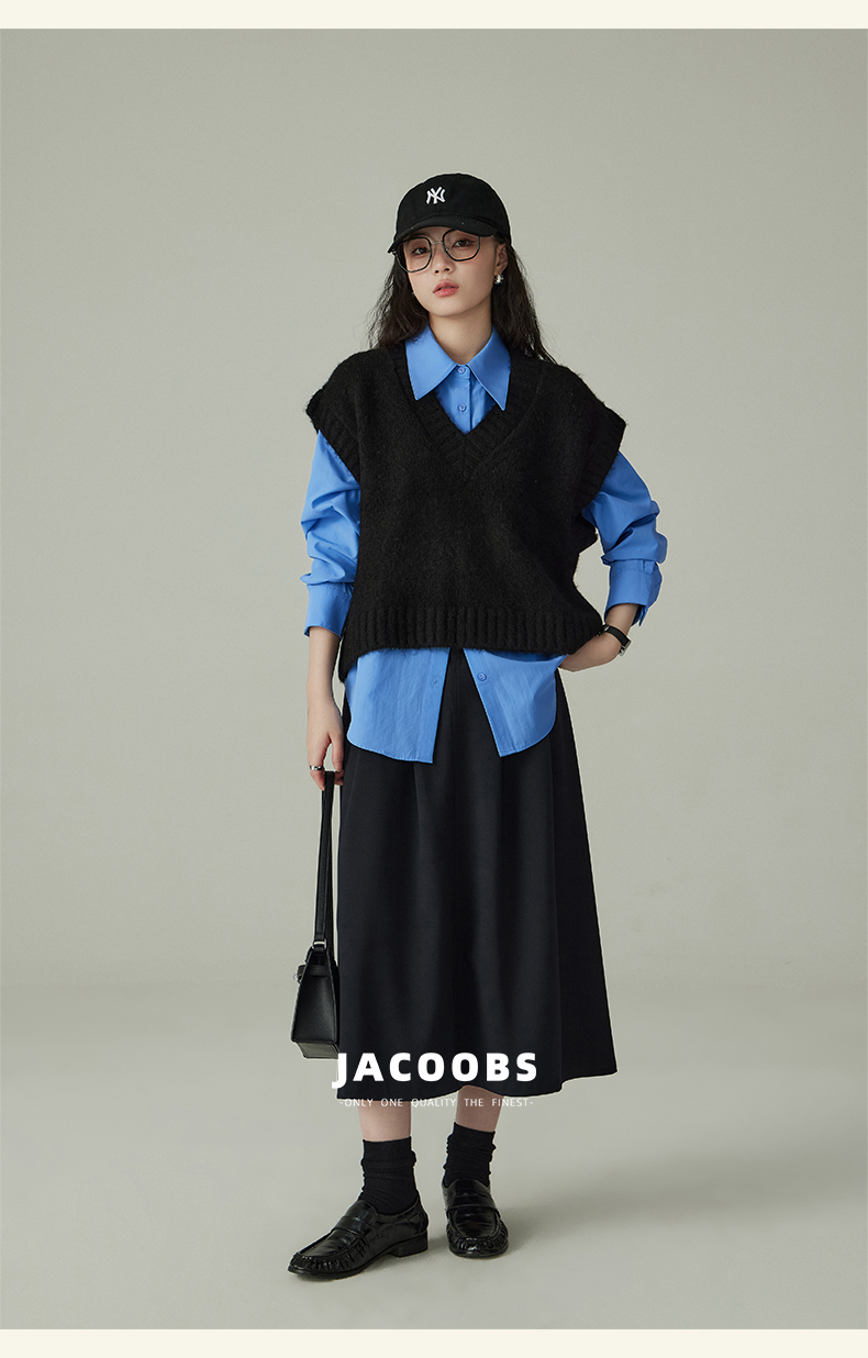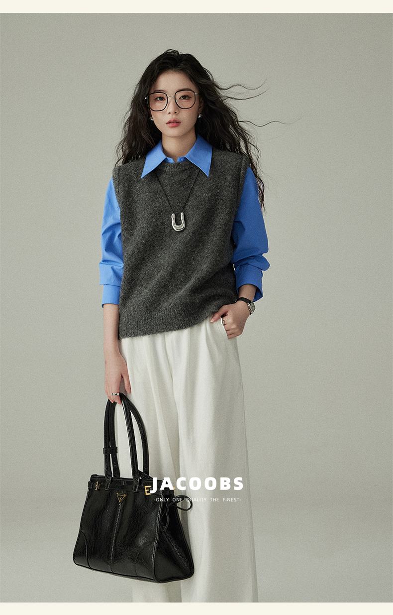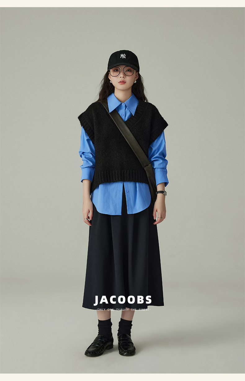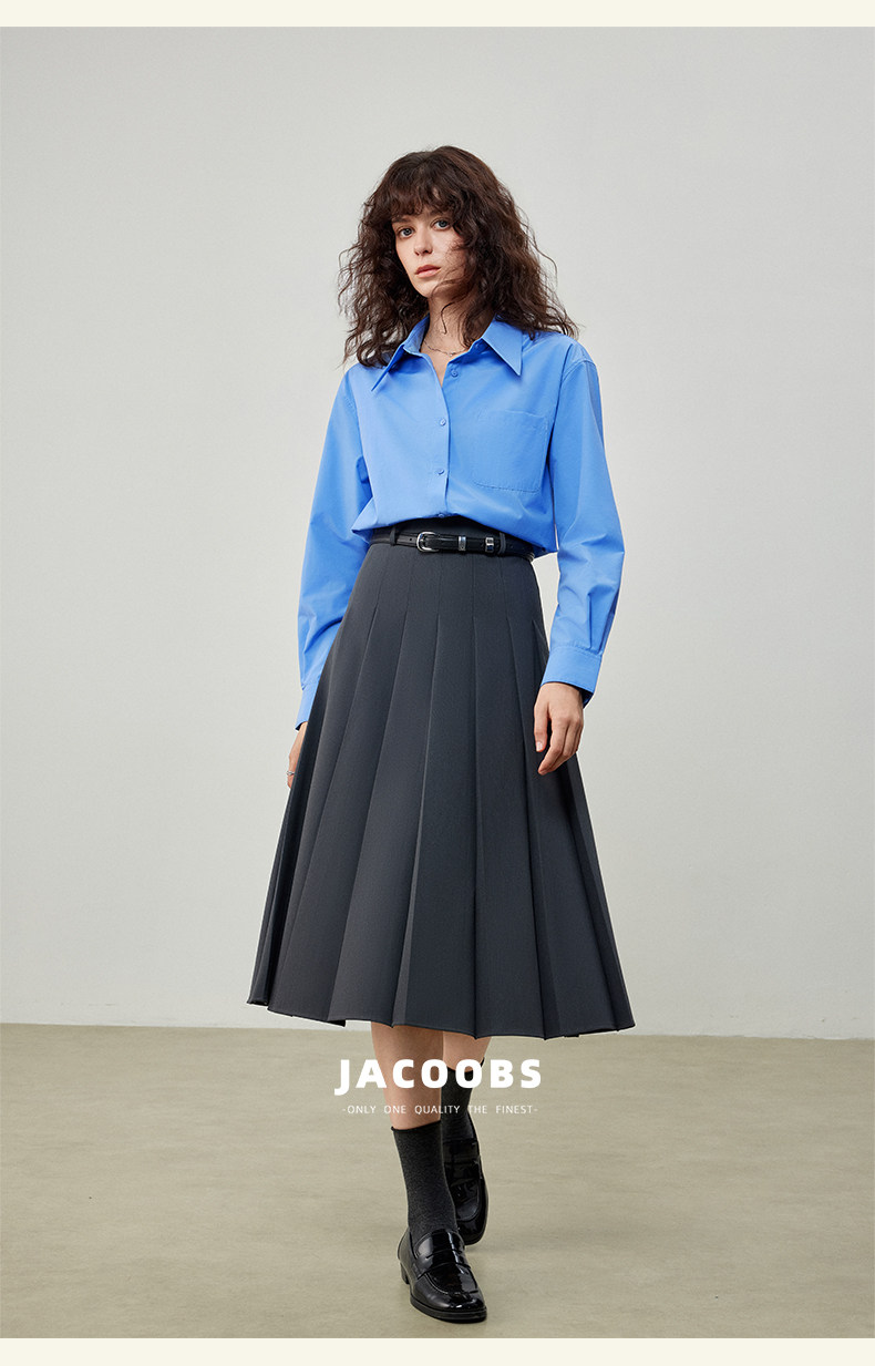 Yakejia's Shirts Can Be Worn in All Seasons! Klein Blue French-Style Airy Professional Commuting Slightly Loose Long-Sleeved Shirt