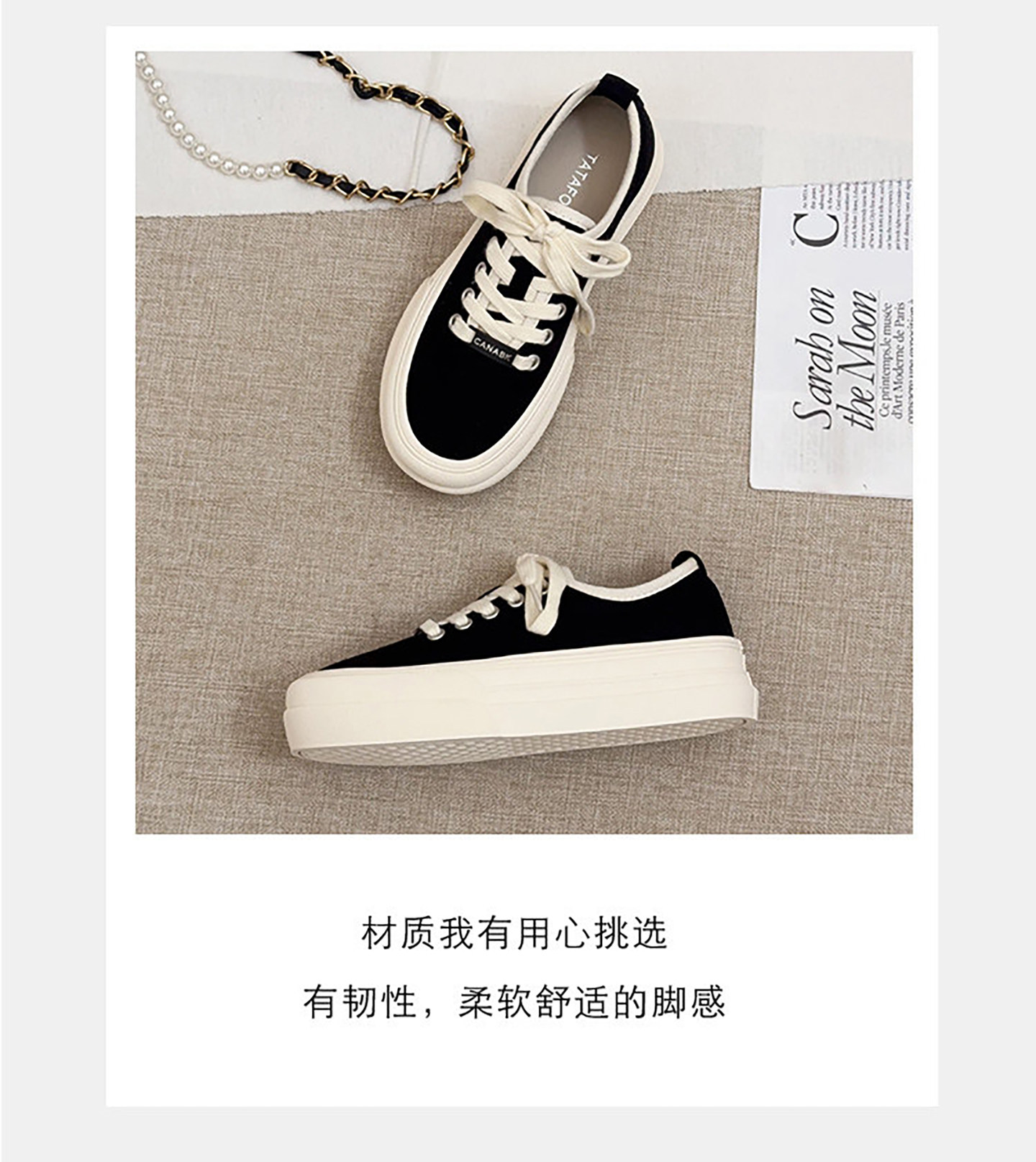 Hong Kong Genuine Leather Thick-Soled Height-Increasing Canvas Shoes for Women 2026 Spring New Platform Shoes Versatile Casual Sports Sneakers Korean Style
