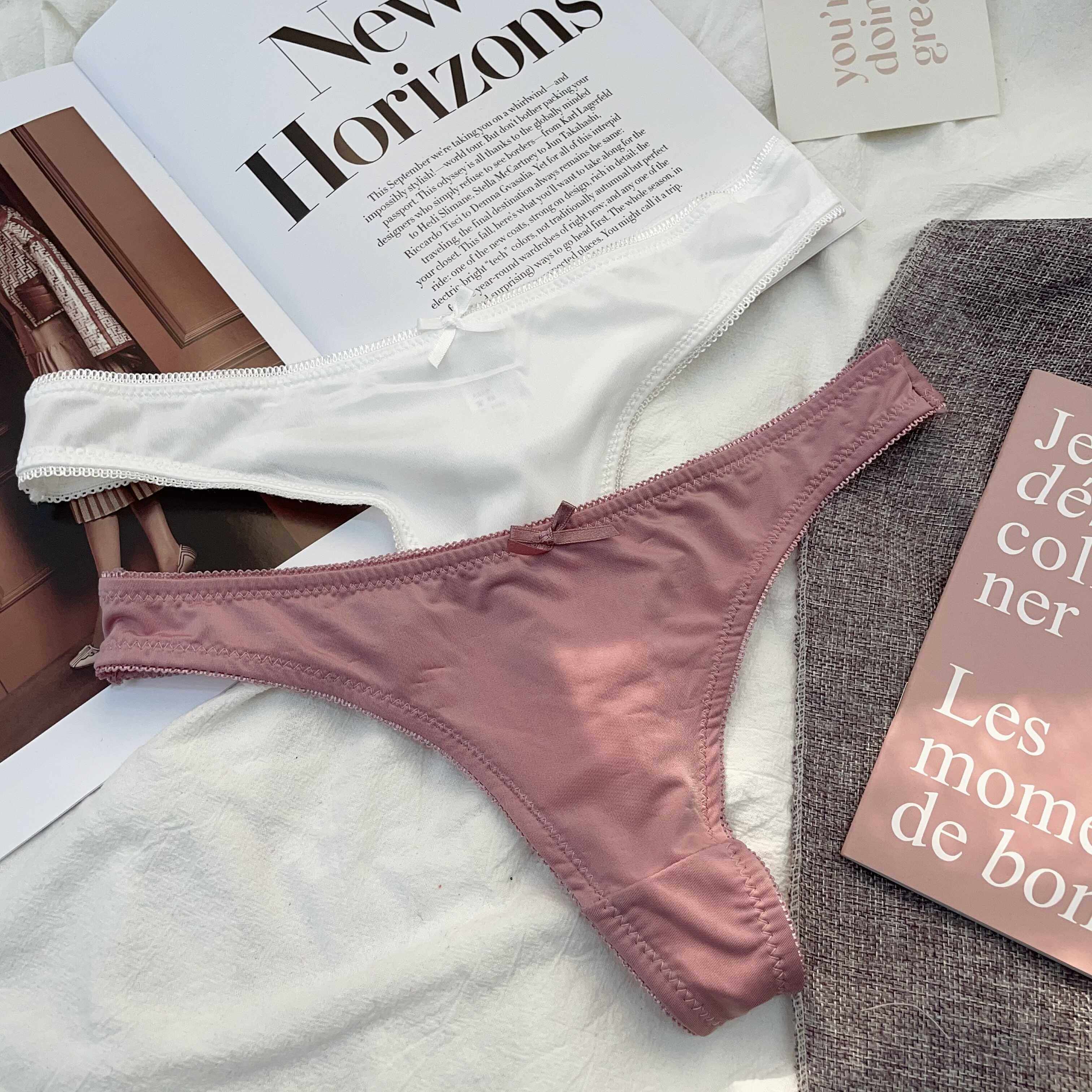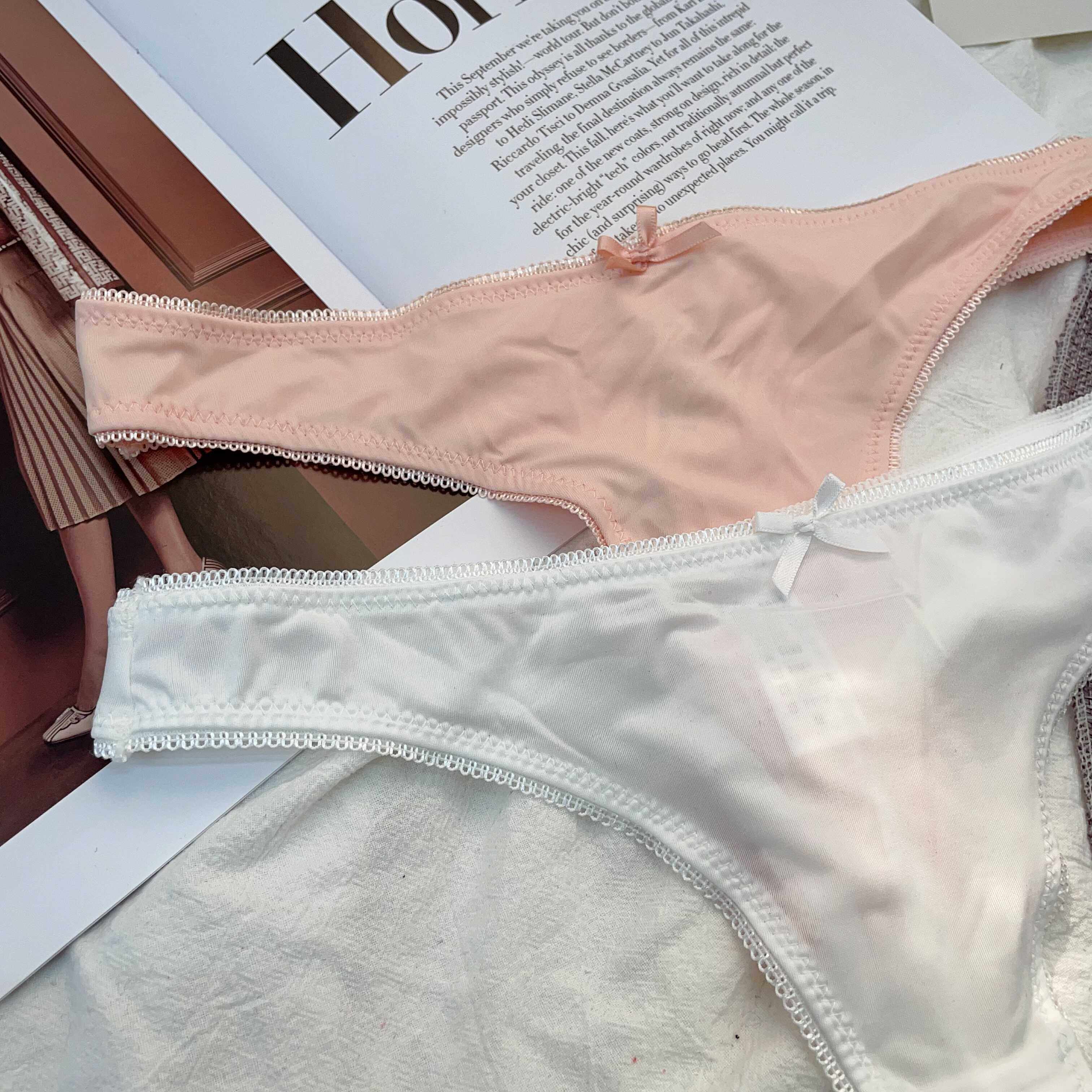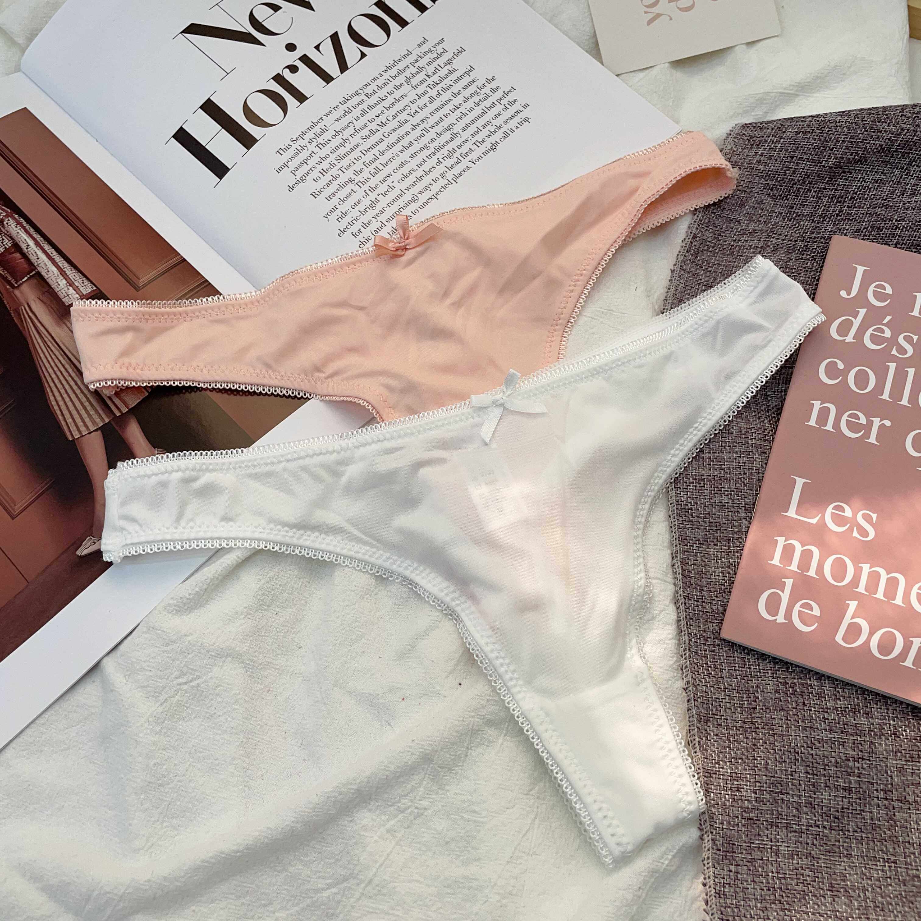 Simple and Comfortable Thong Underwear for Women, Ultra-Thin and Breathable, Low-Waist Solid Color European and American Style Thin T-Pants Two-Piece Set