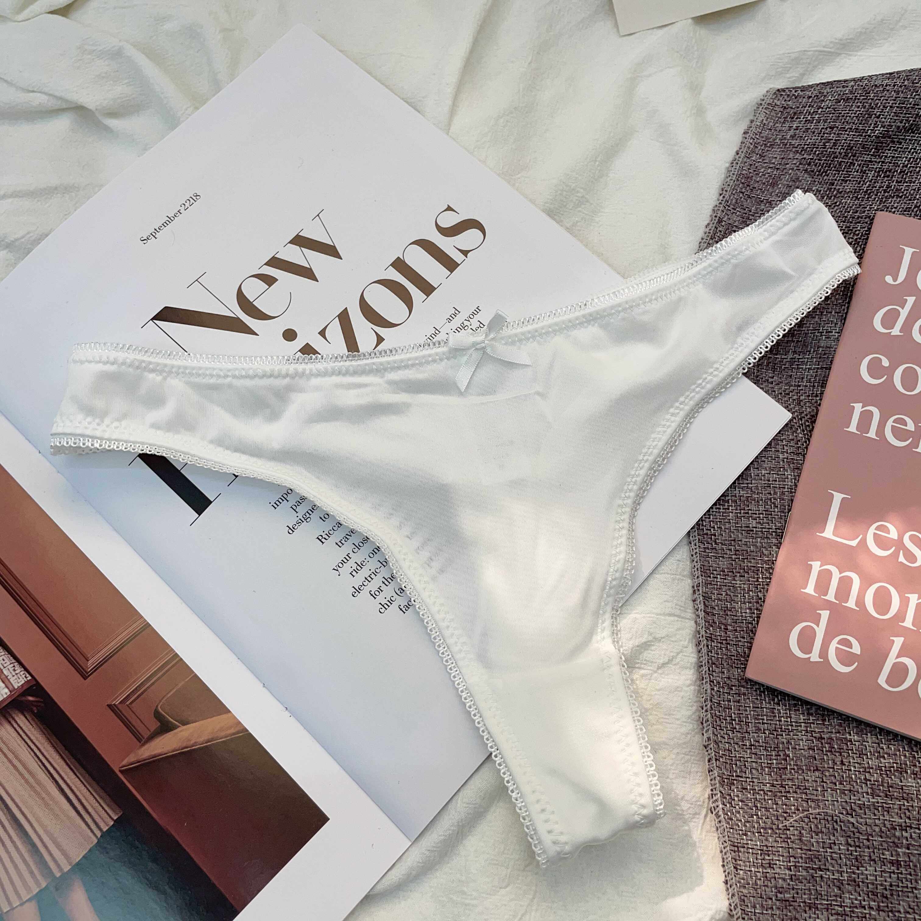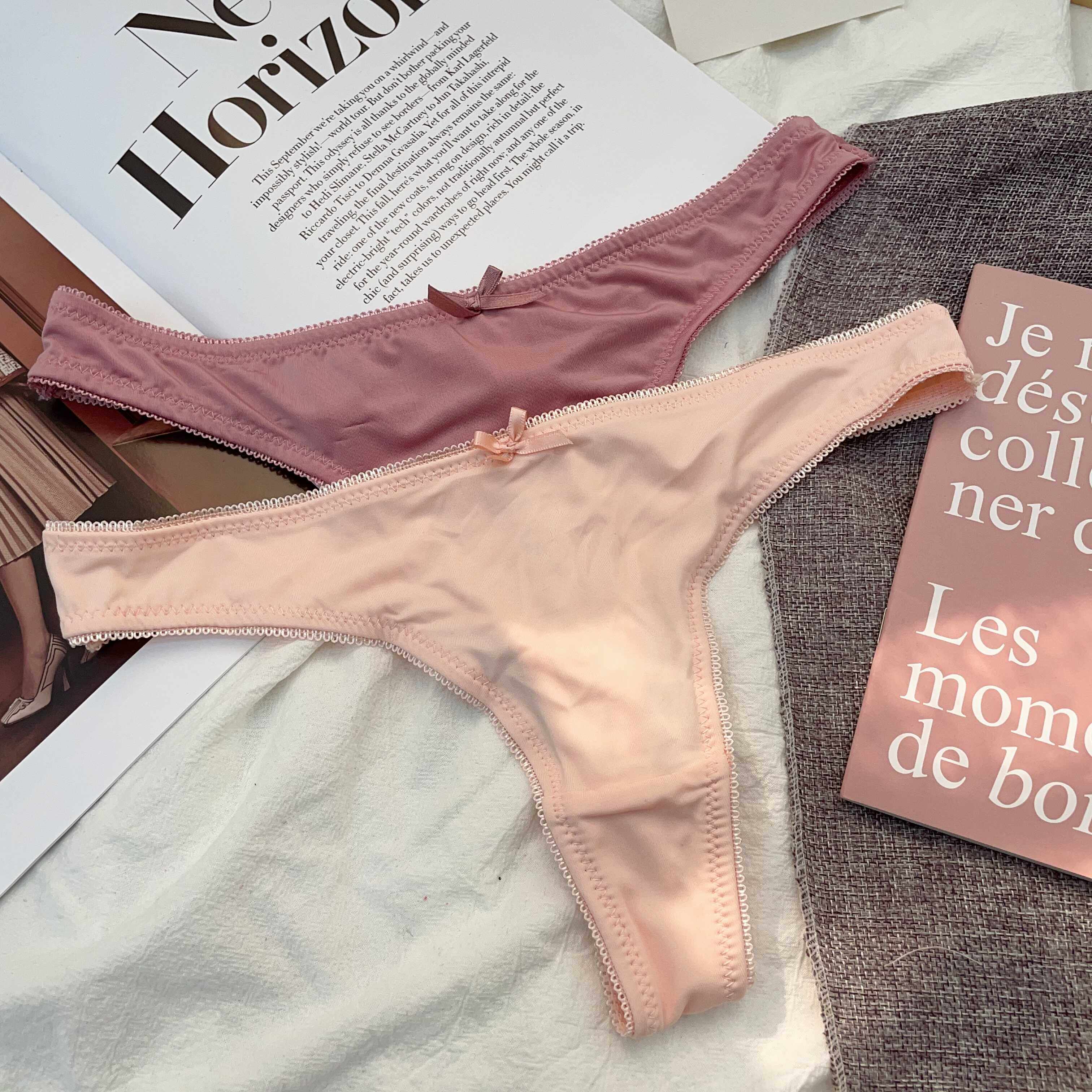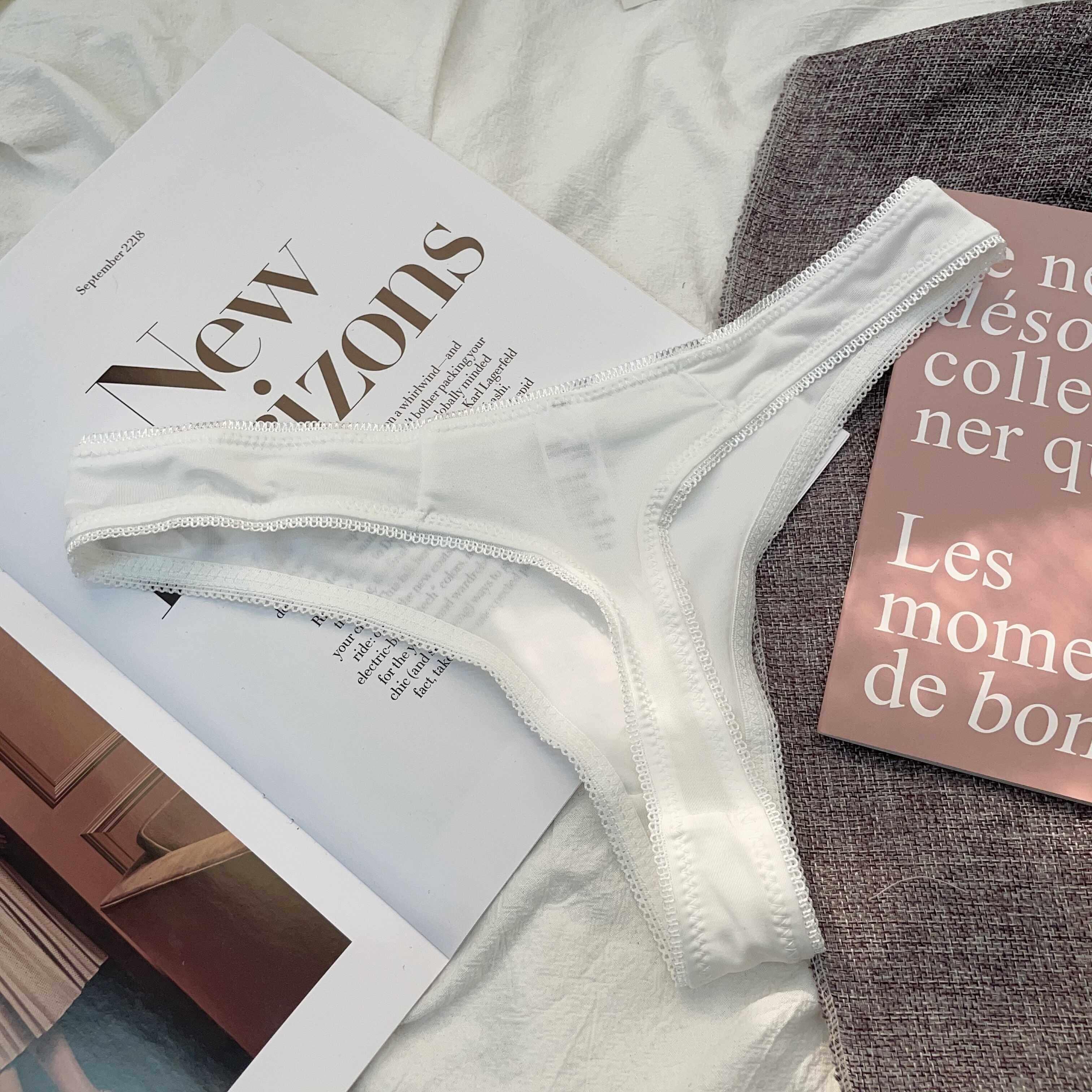 Simple and Comfortable Thong Underwear for Women, Ultra-Thin and Breathable, Low-Waist Solid Color European and American Style Thin T-Pants Two-Piece Set