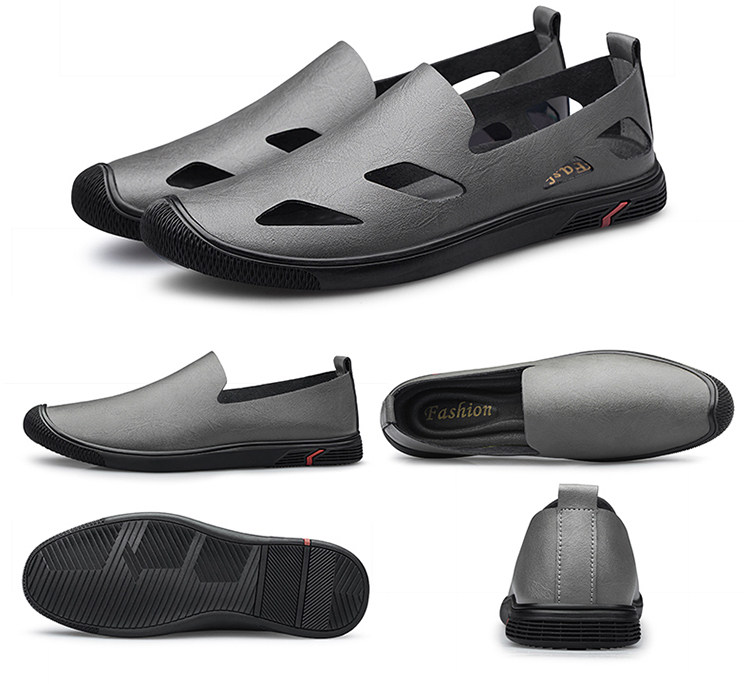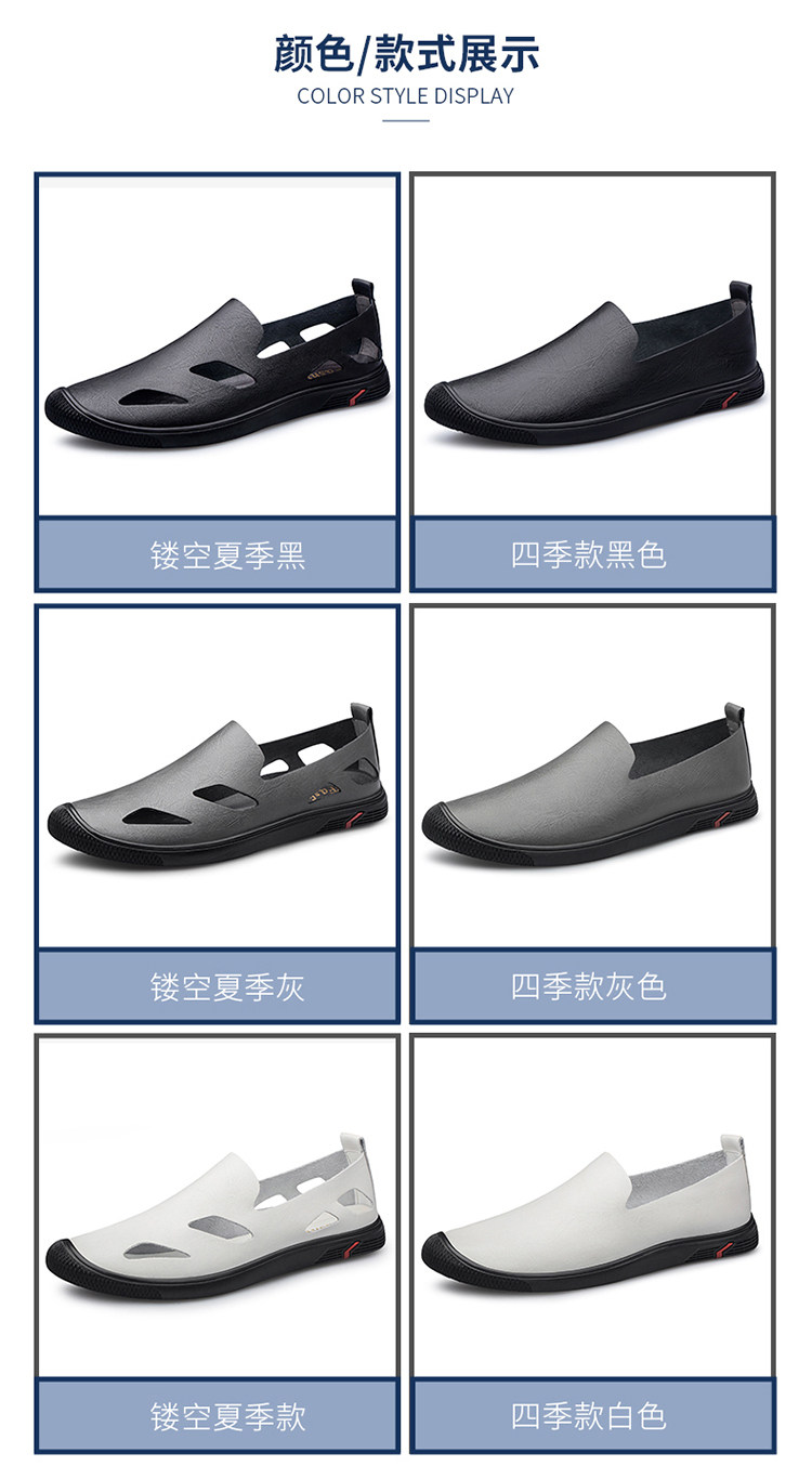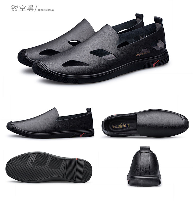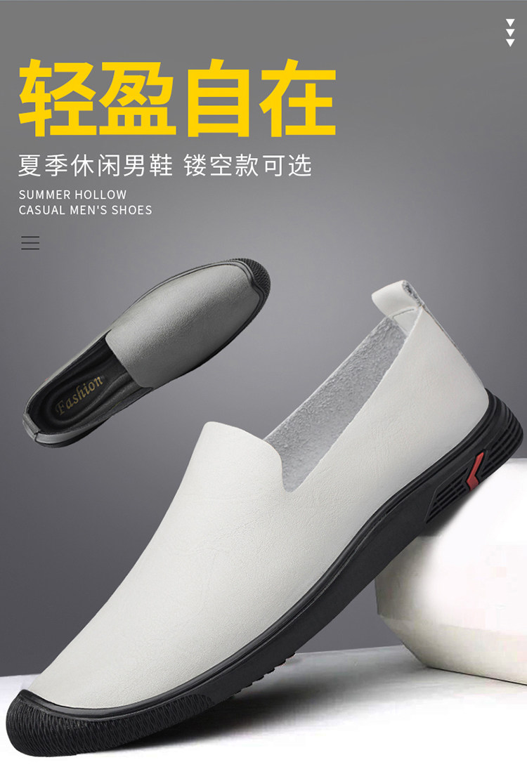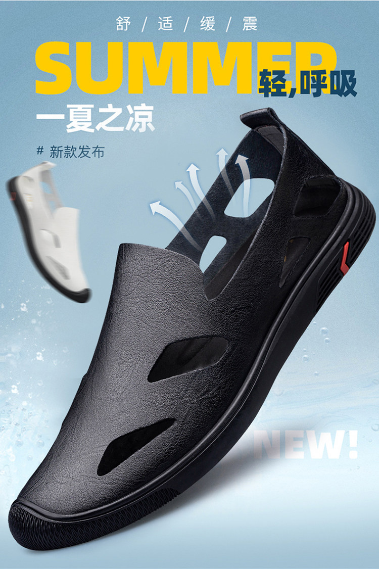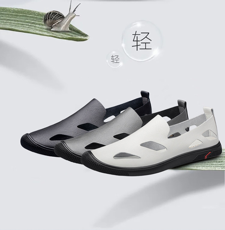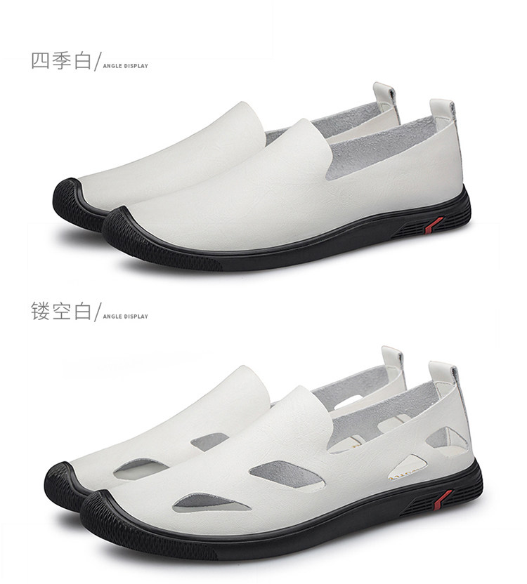 Woodpecker Genuine Men's Shoes, Summer Hollow Breathable White Genuine Leather Soft Sole Perforated Sandals, Men's Single-Layer Leather