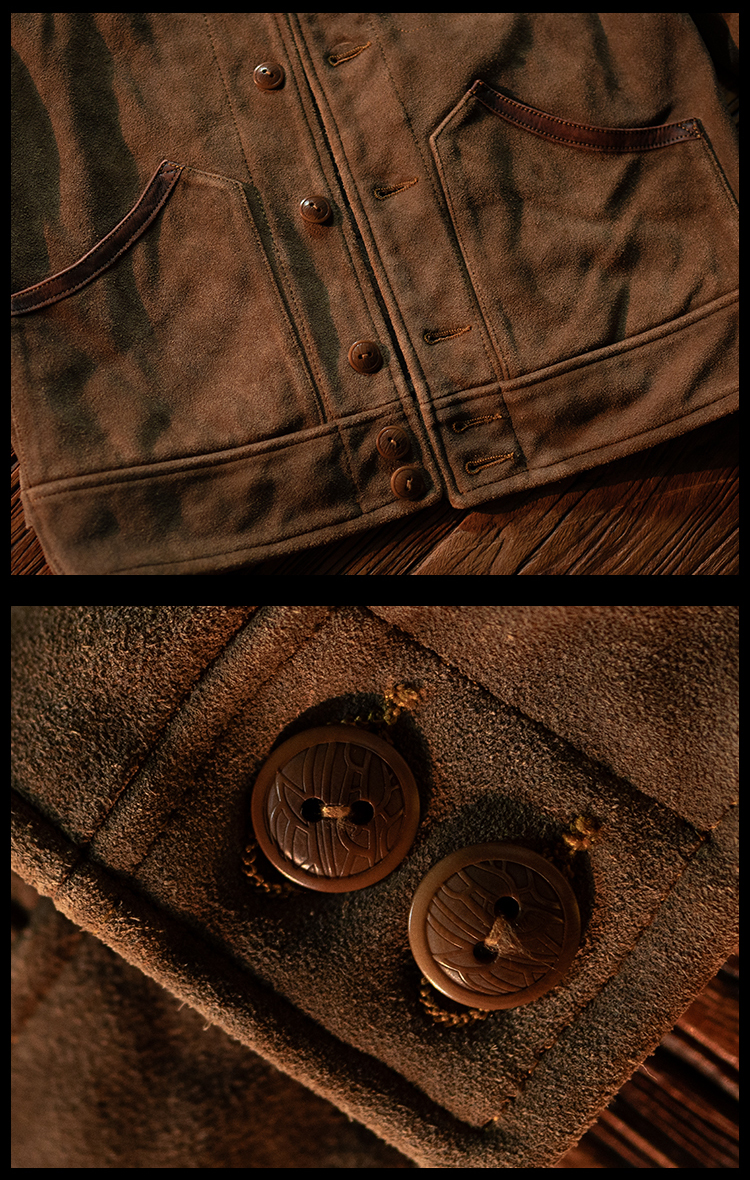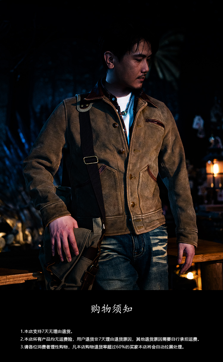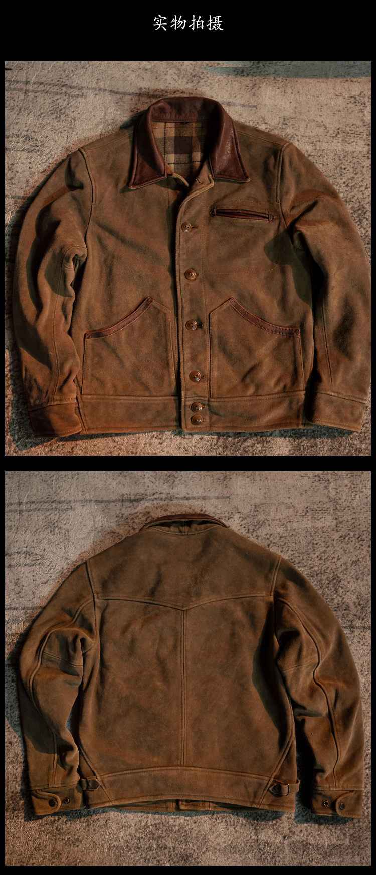 Mochen Men's New Leather Jacket American Casual Washed Vintage Turn-Down Collar Suede Cowhide Genuine Leather Jacket F2358