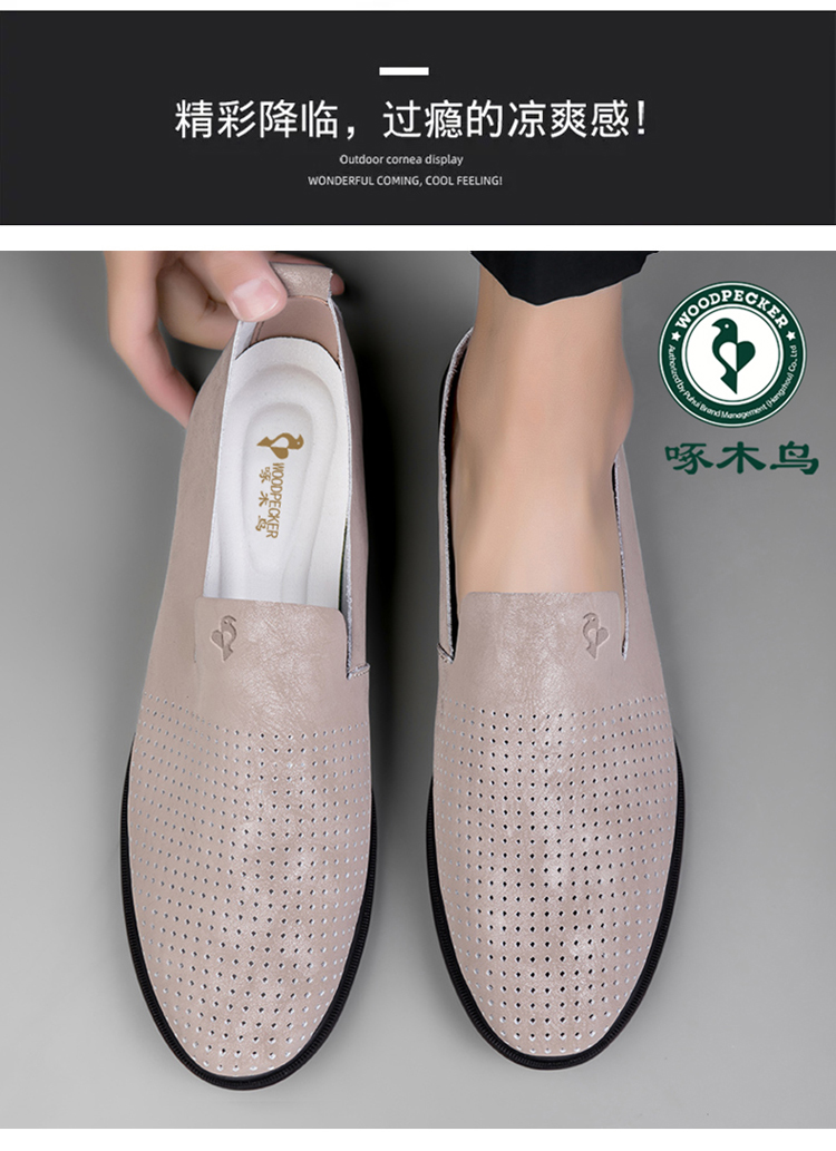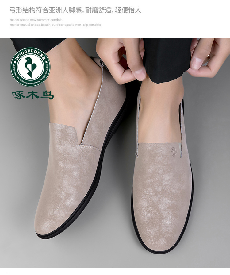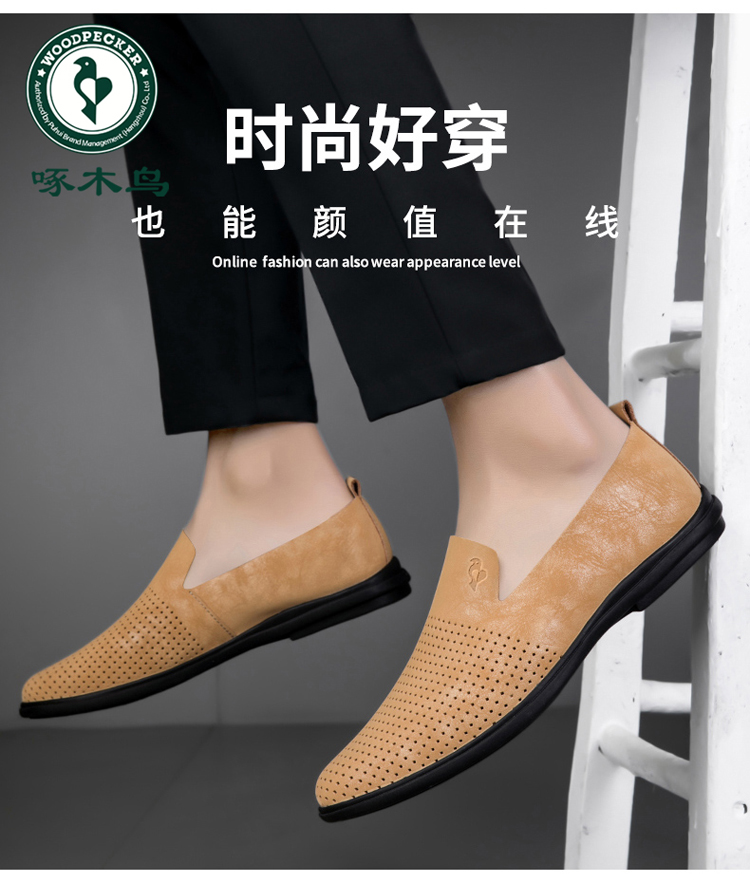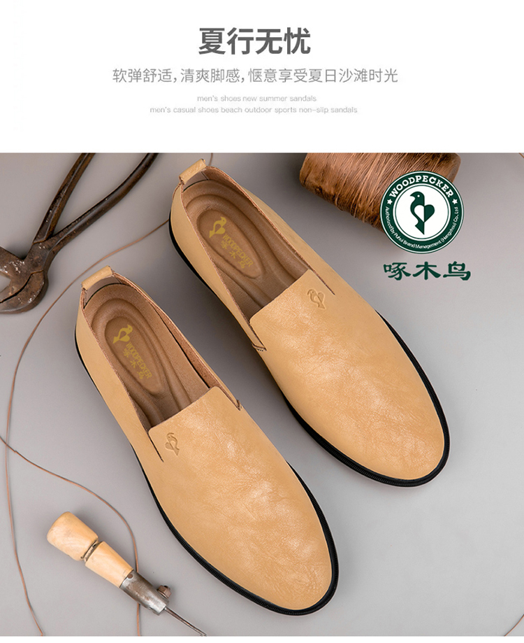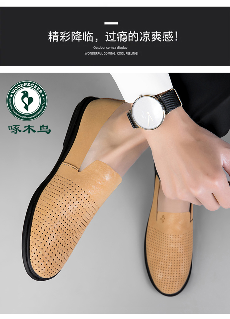 Woodpecker Brand Men's Shoes, New Summer Model, Hollow Breathable Single-Layer Leather Sandals, Men's Soft Surface, Soft Sole, Non-Slip Clogs