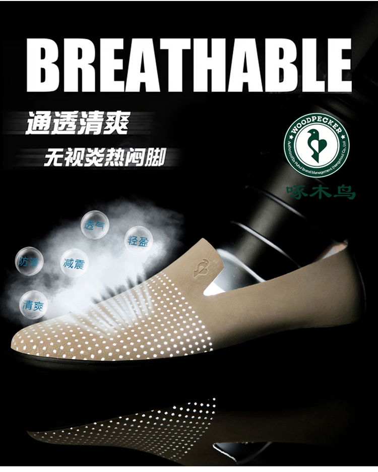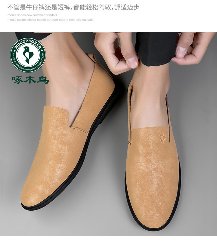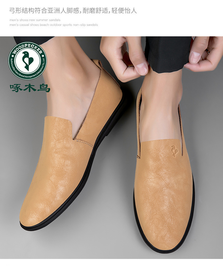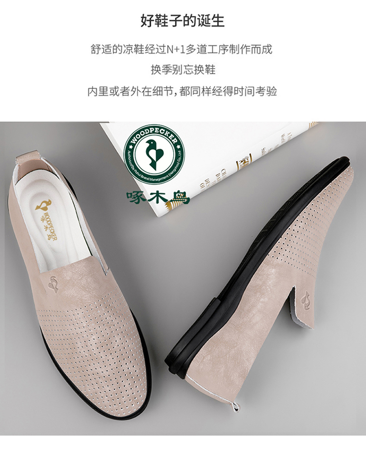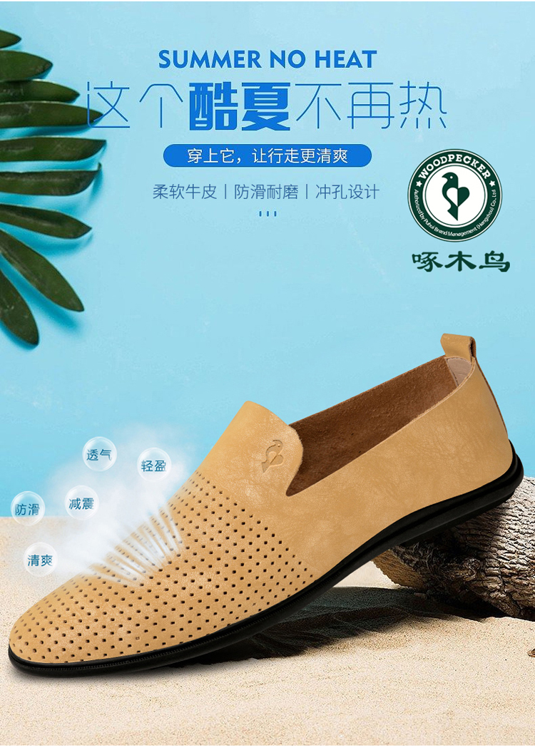 Woodpecker Brand Men's Shoes, New Summer Model, Hollow Breathable Single-Layer Leather Sandals, Men's Soft Surface, Soft Sole, Non-Slip Clogs