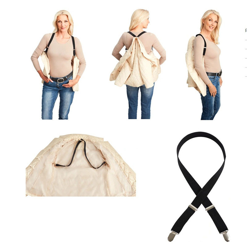 Outdoor Portable Clothing with a Detachable down Jacket, Built-In Suspender Clips, and Elastic Suspenders for Carrying and Storing a Jacket