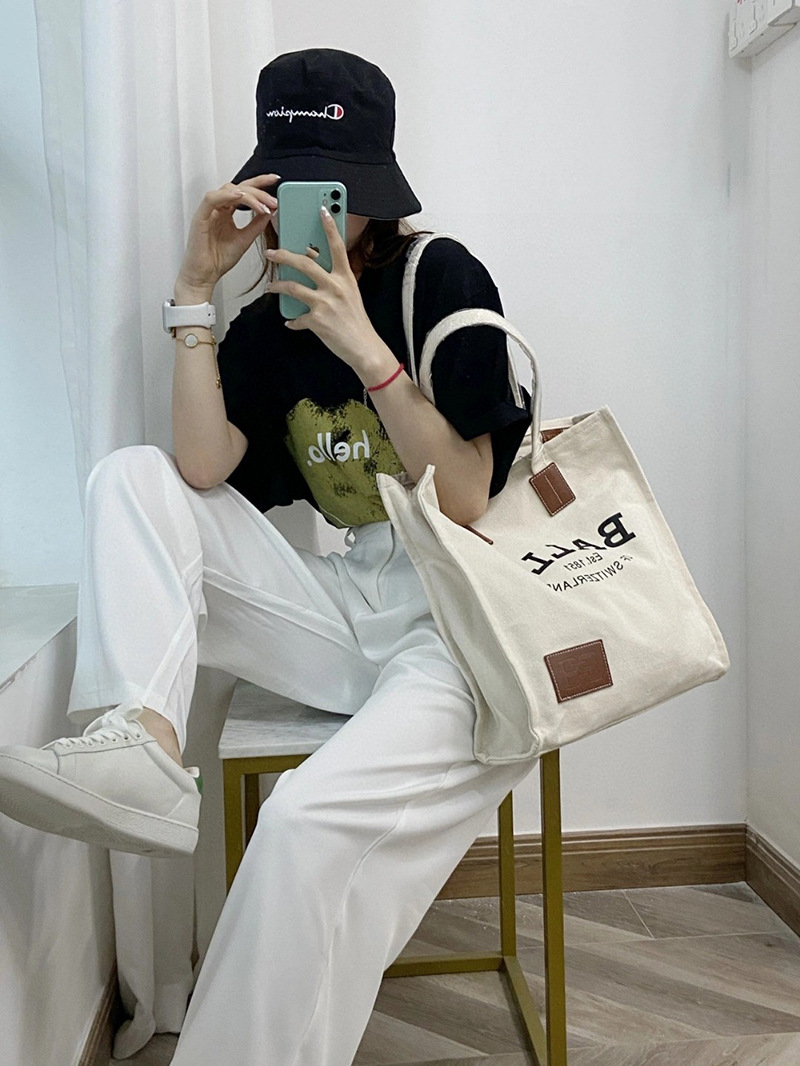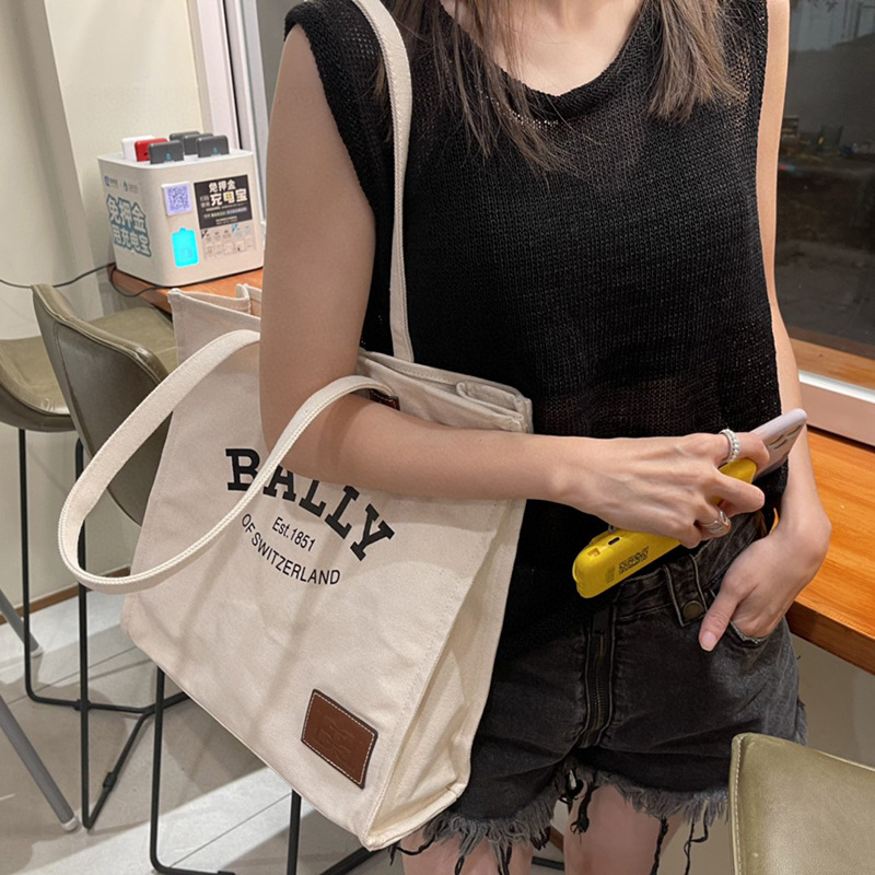 Zhao Lusi's Same Style Canvas Bag for Female Students, Suitable for Class and Commuting, Casual, Large Capacity, Lightweight, Portable Underarm Tote Bag