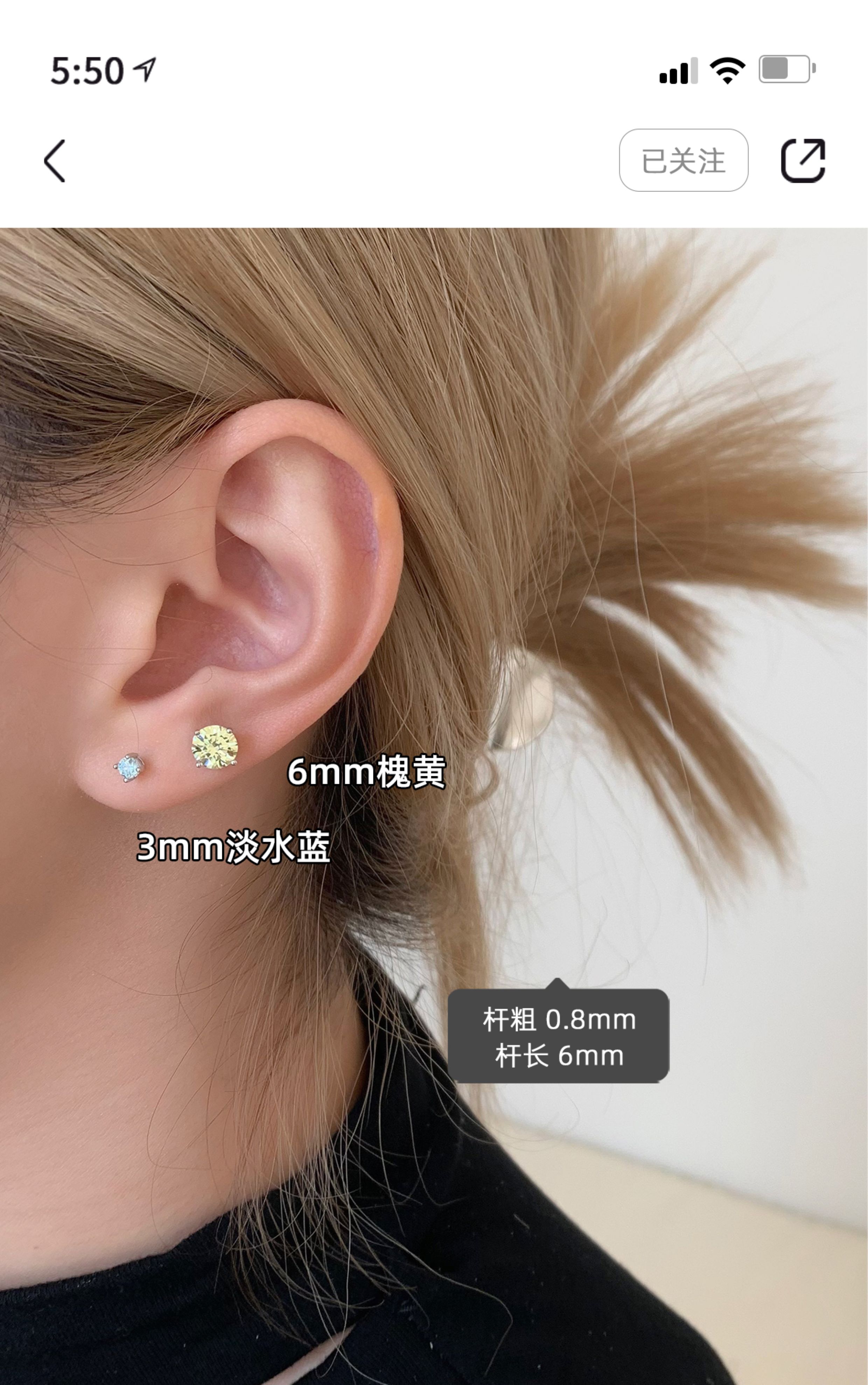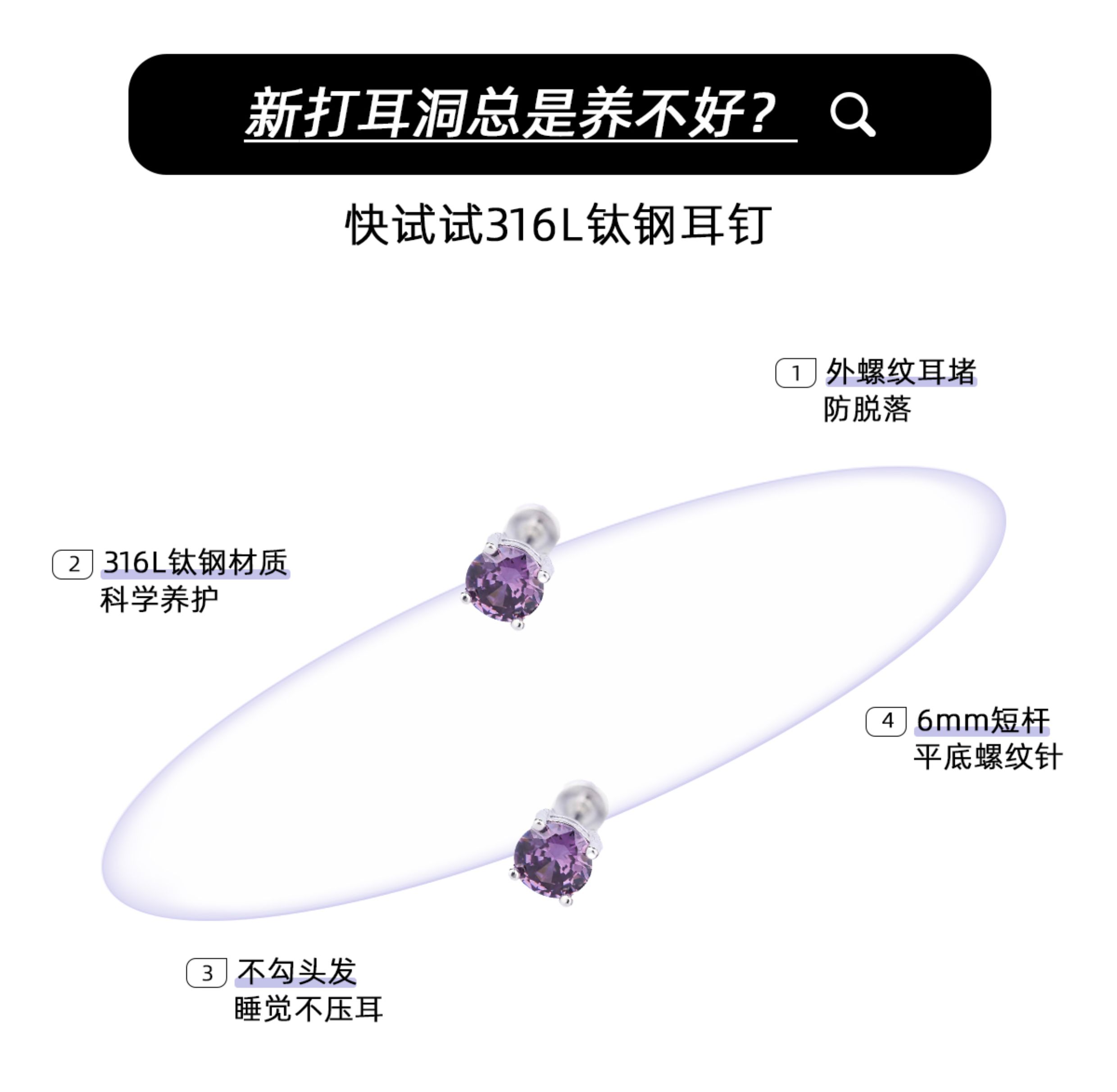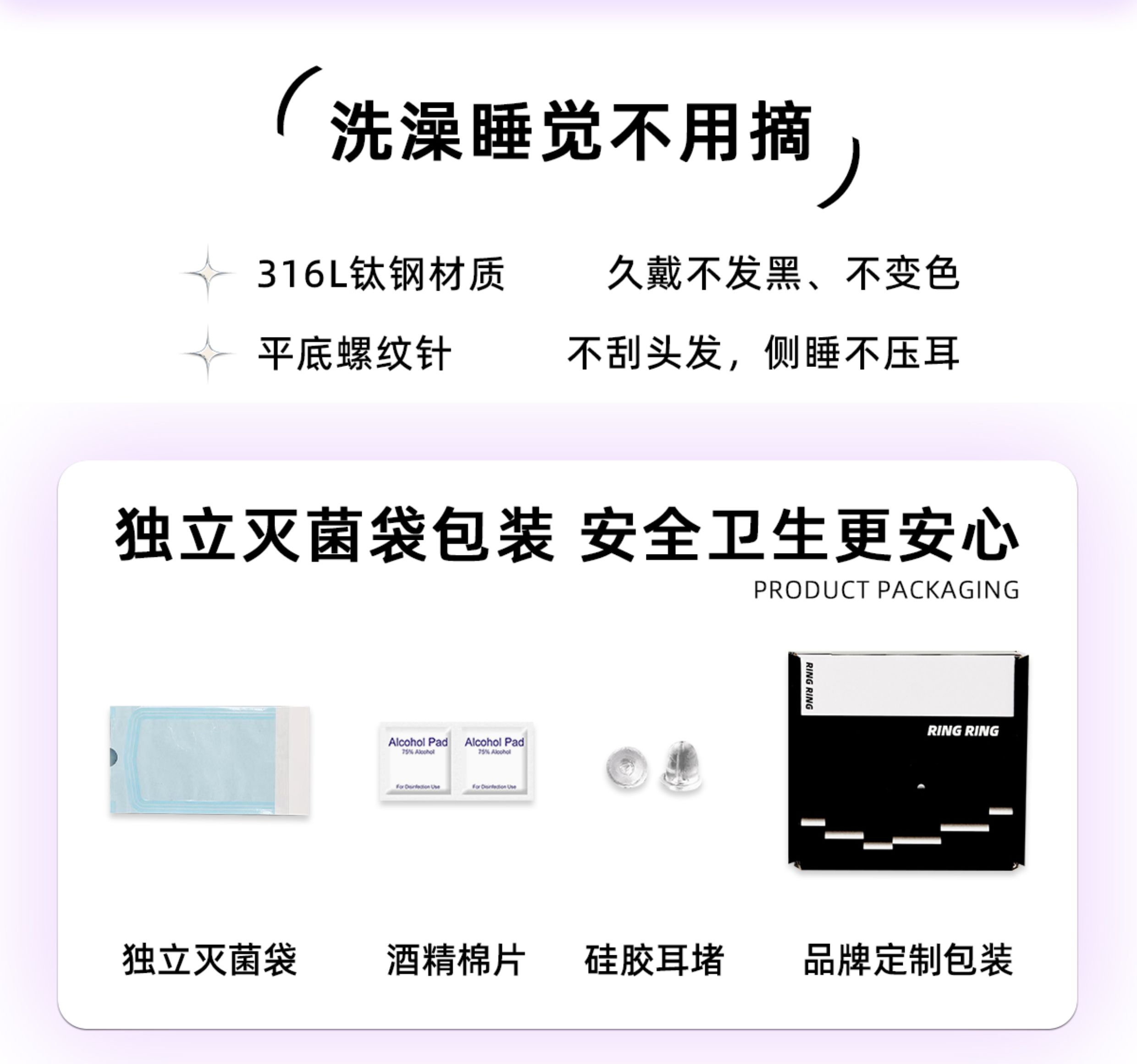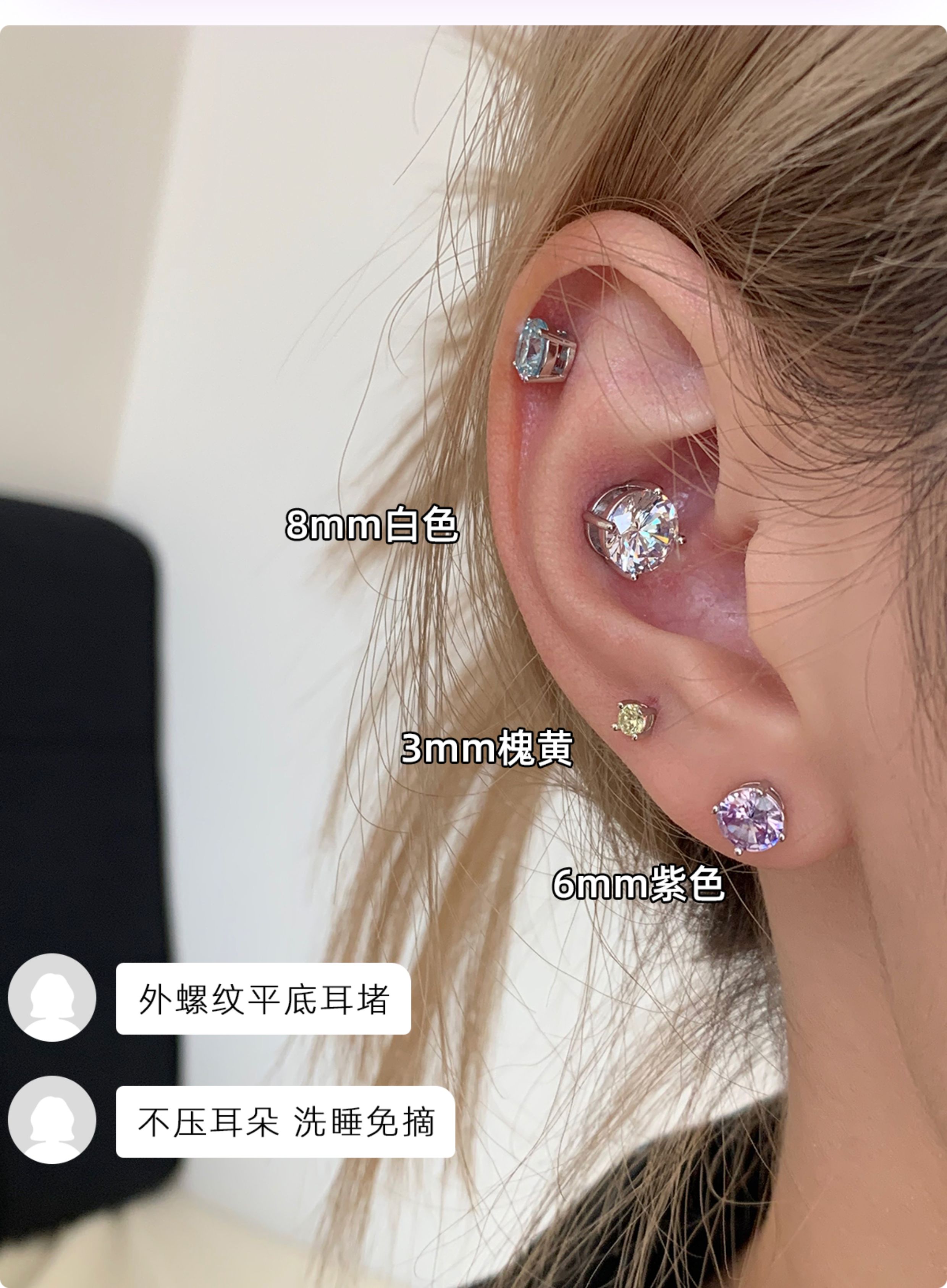 Ringring Store Medical Titanium Steel Earrings Titanium Alloy Ear Piercing Ear Bone Studs Sparkling Zircon Cochlear Drill
