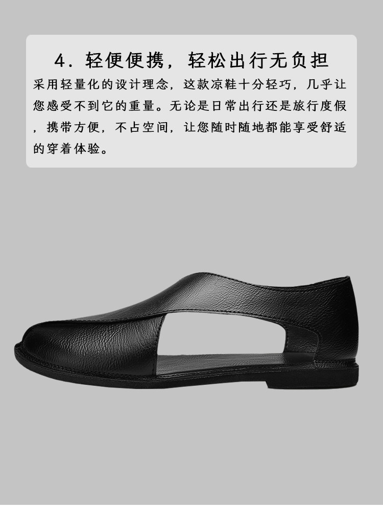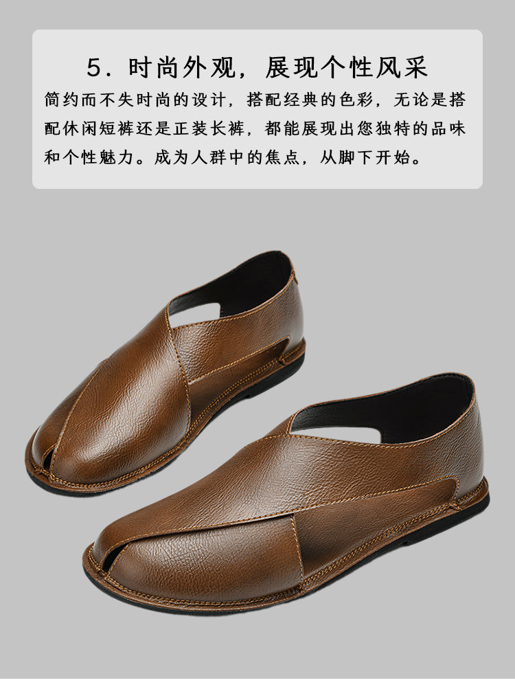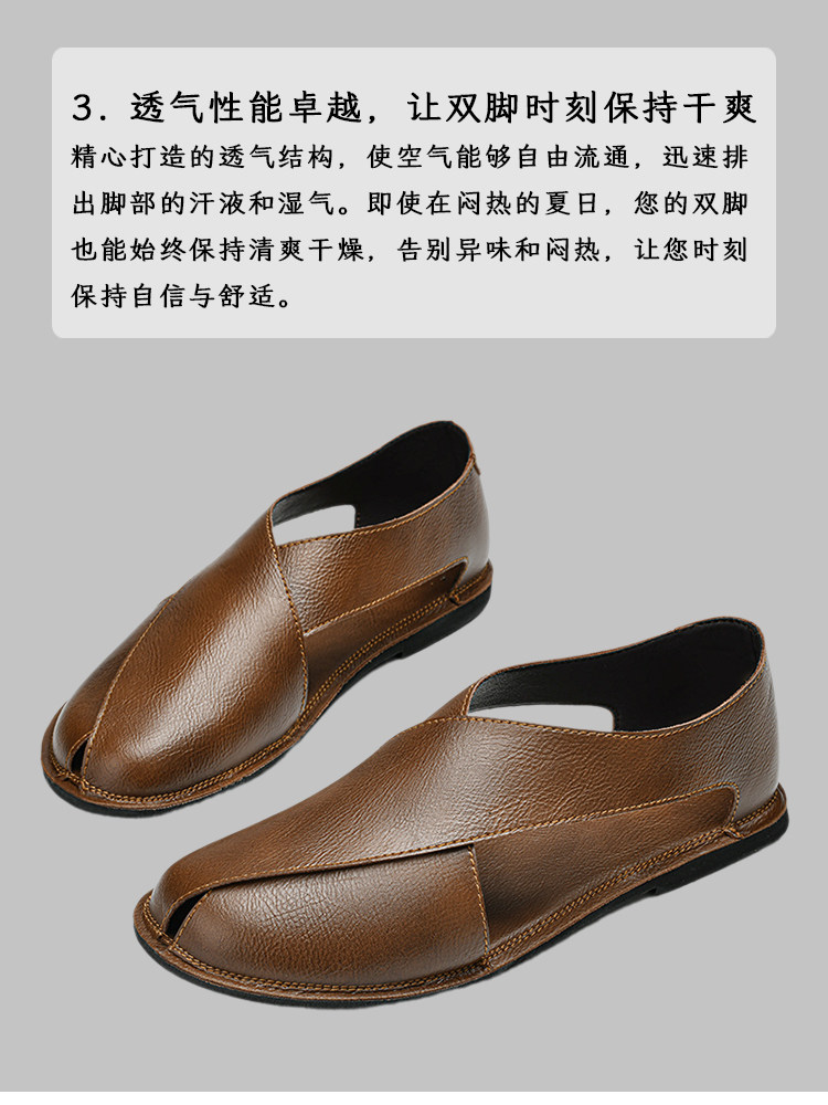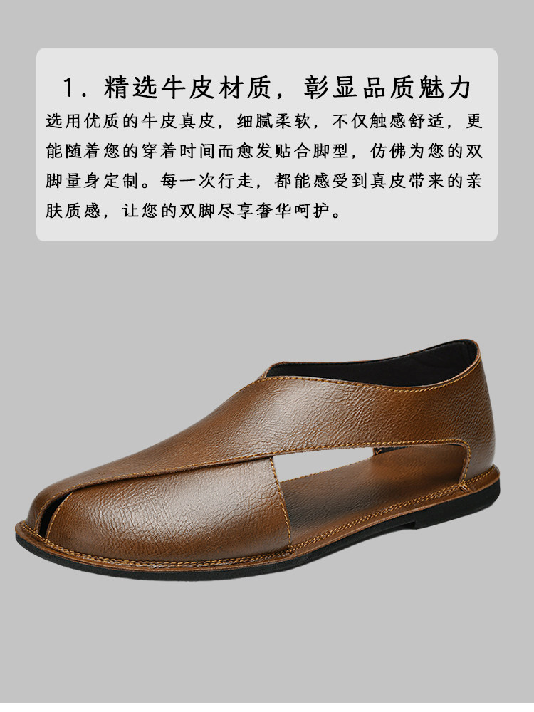 Hong Kong Brand Handmade Leather Sandals Men's Shoes Summer Breathable Roman Slip-On Hollow Leather Shoes Casual Genuine Leather