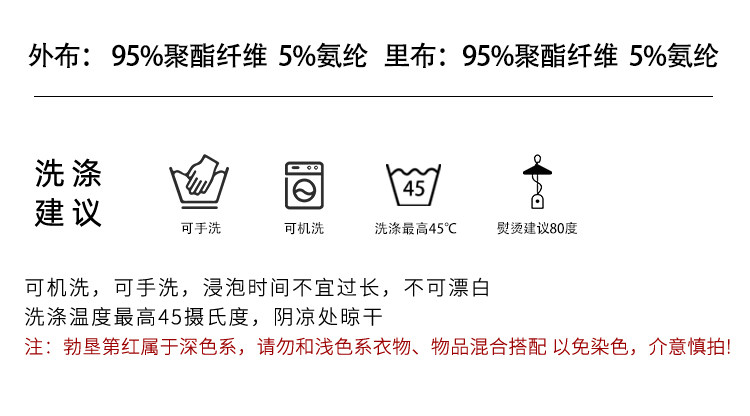 勃垦第红属于深色系,请勿和浅色系衣物、物品混合搭配