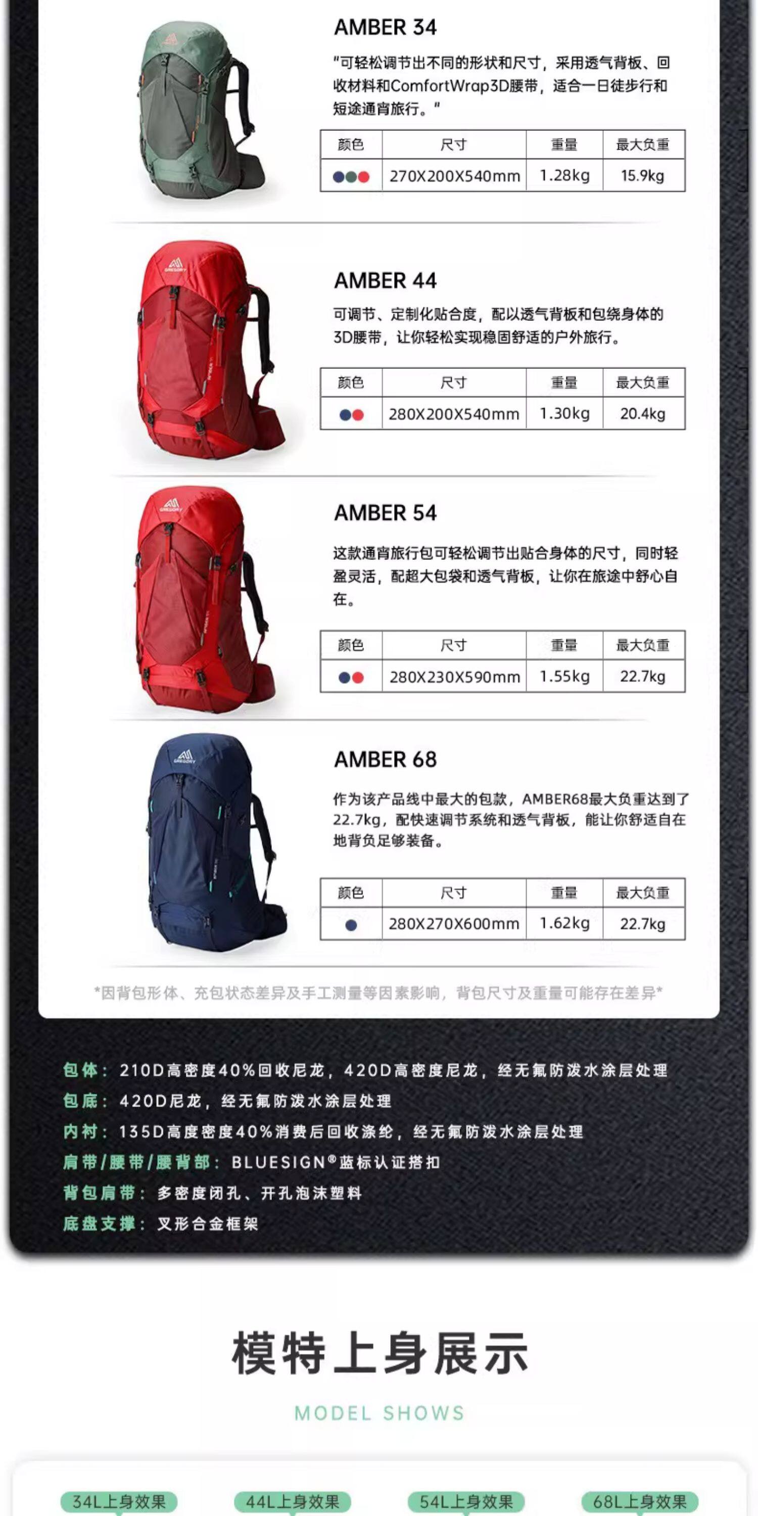 Gregory Amber Outdoor Professional Hiking and Mountaineering Backpack Large Capacity for Women