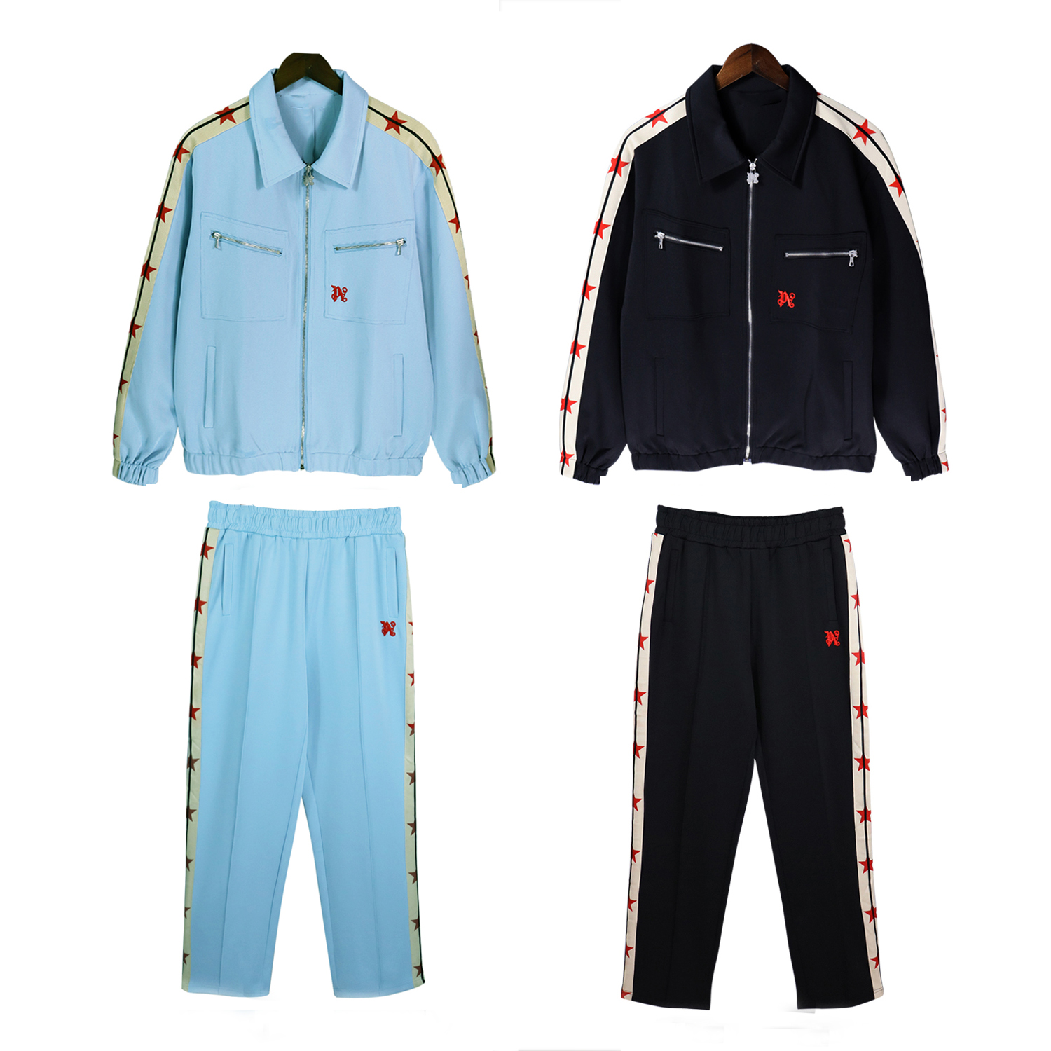 European and American Style Spring and Autumn Loose Trendy Striped Solid Color Retro Long-Sleeve Casual Sports Top and Pants Set for Men and Women