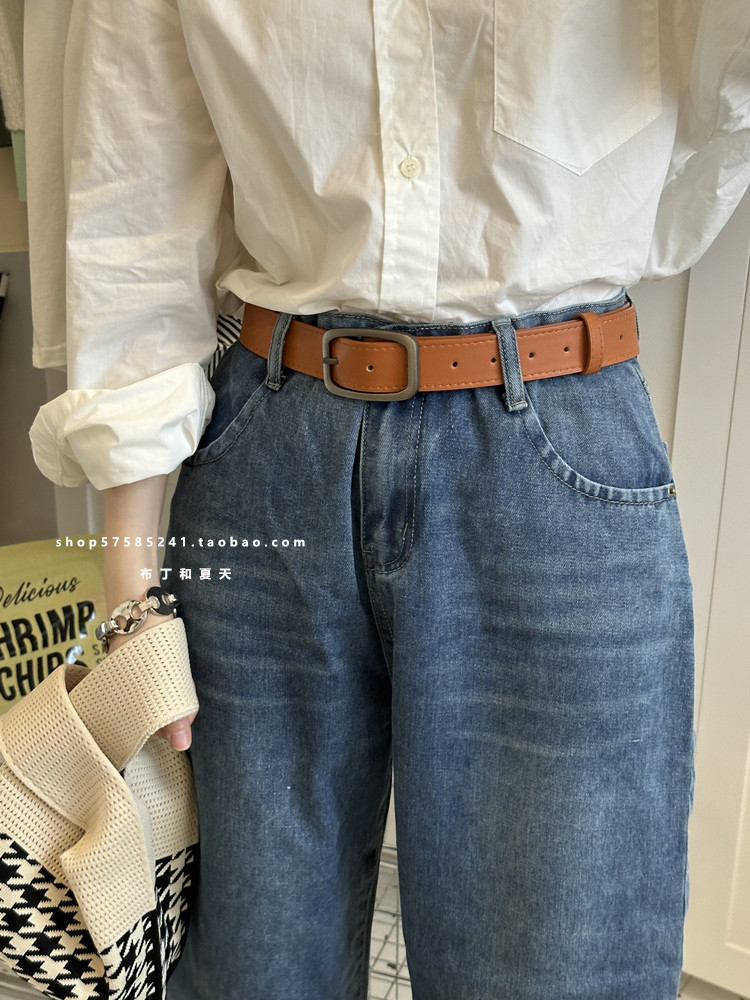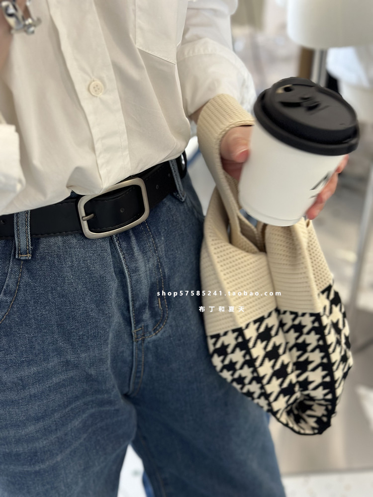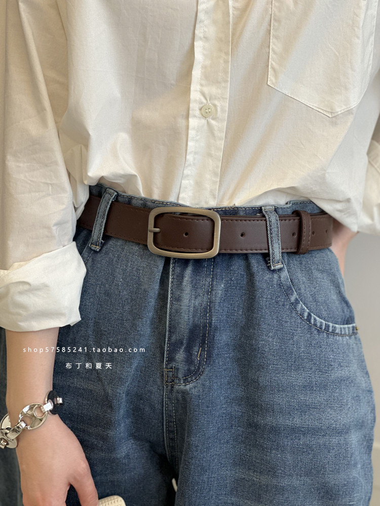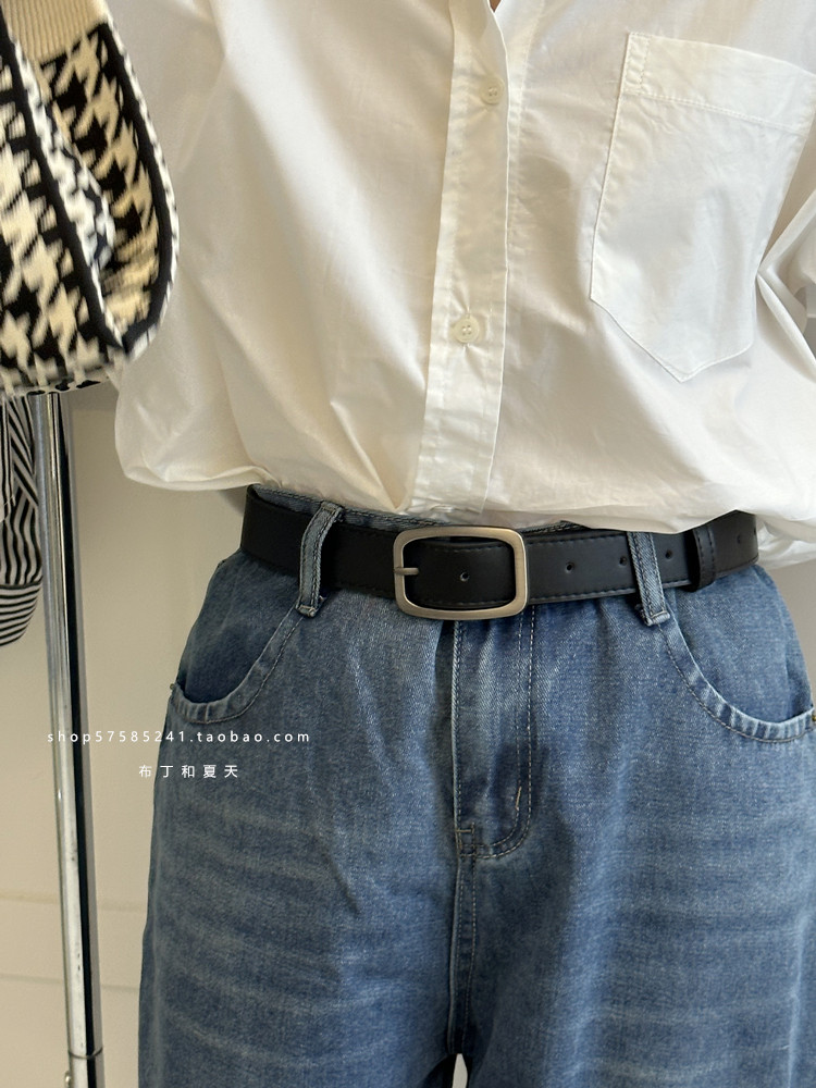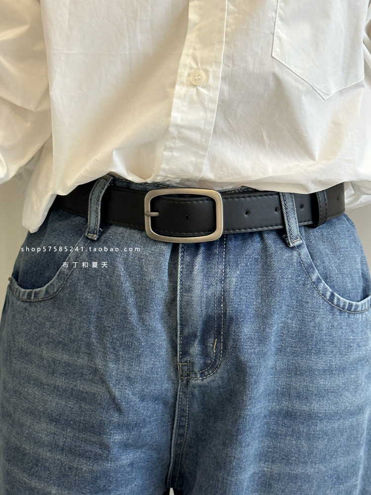 Simple and Versatile Bf Style Hong Kong Style Wide Belt Student Black Belt Youth Jeans Belt Square Buckle Unisex
