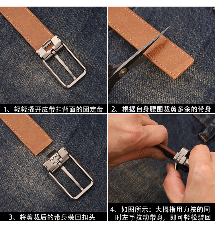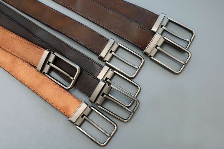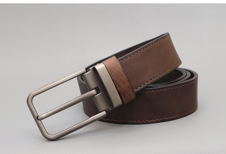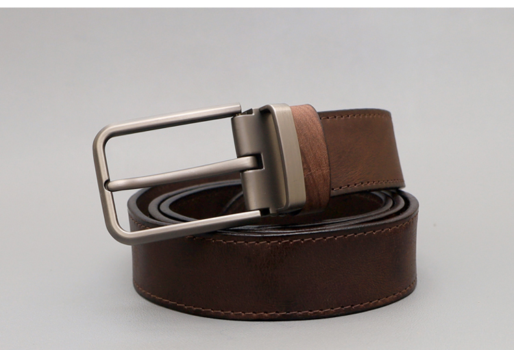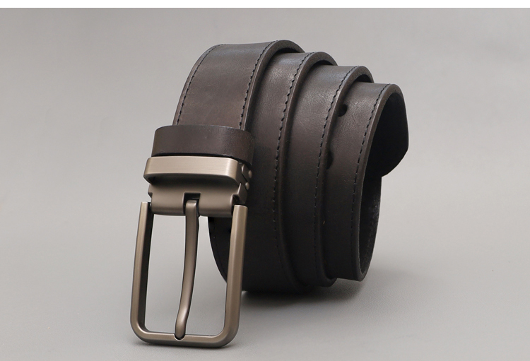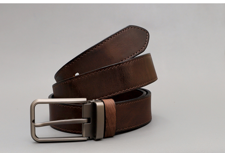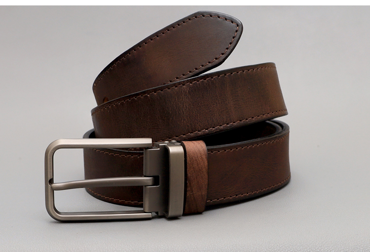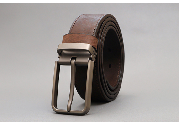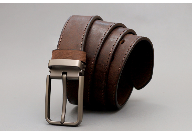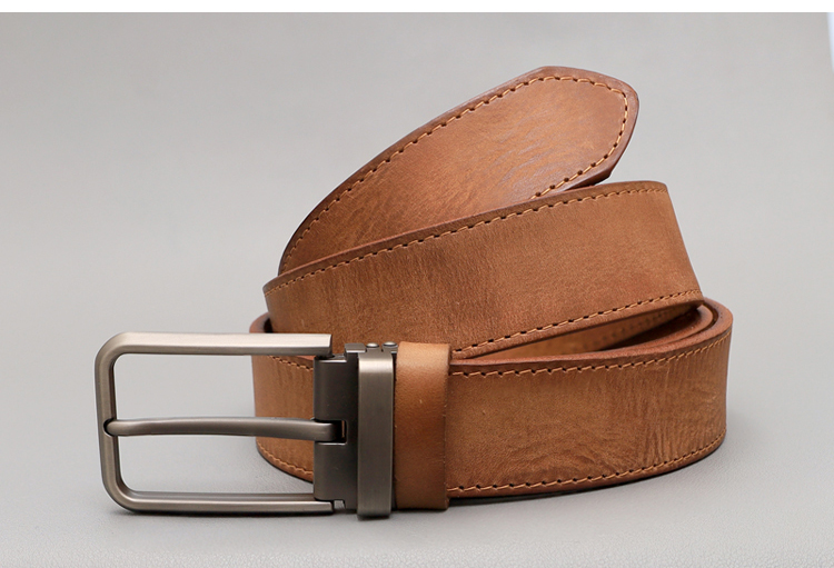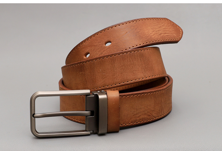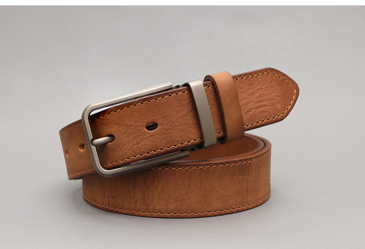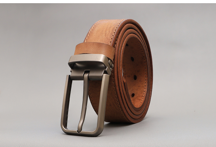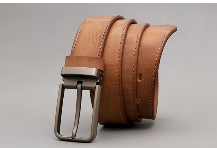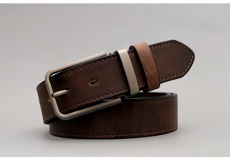 First-Layer Genuine Cowhide Leather Belt for Men, Handmade Vegetable-Tanned Vintage Pin Buckle Men's Belt, Casual Trouser Belt, Genuine Leather Distressed Style