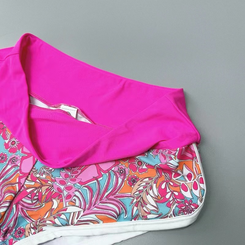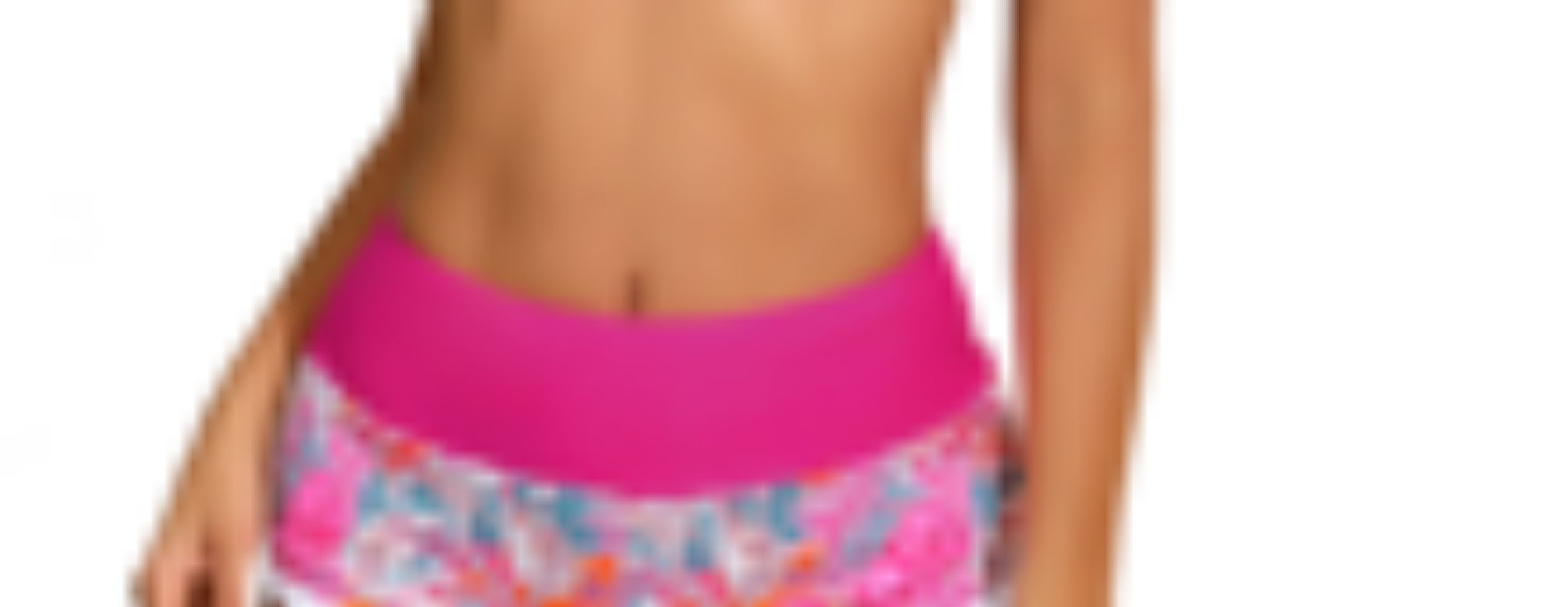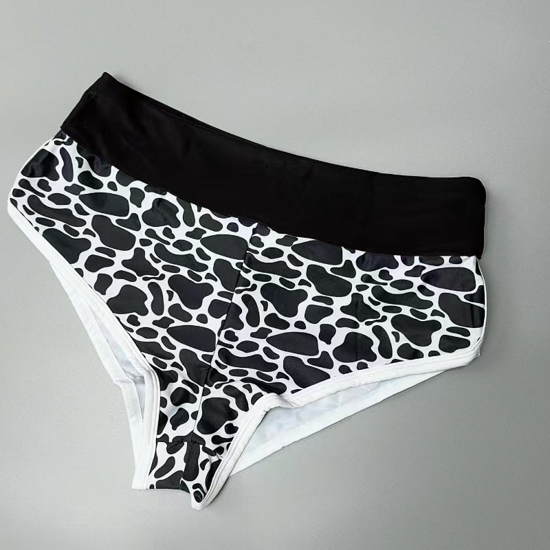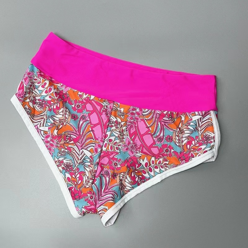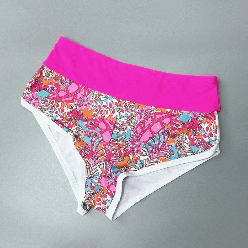 Amber Women's Triangle Split Swimsuit with Mid-High Waist, Wide-Brimmed Swim Trunks, Unique Amazon Print, Hip-Covering