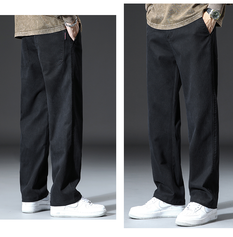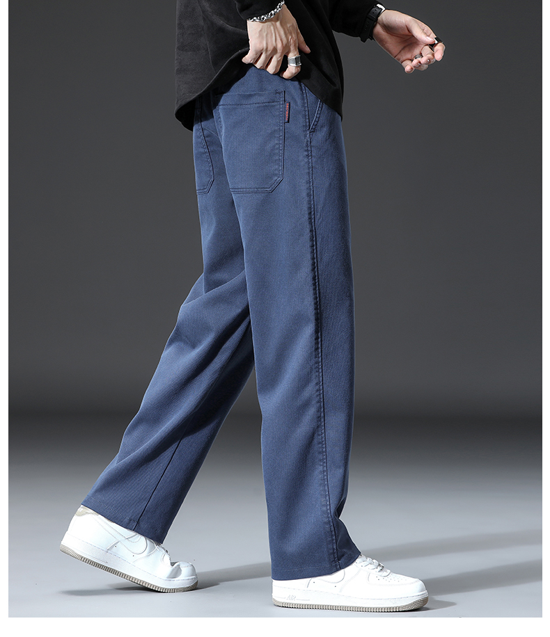 Jeanswest Autumn New arrival Tencel Anti-wrinkle Imitation Denim Casual Pants Men's Winter Fleece-lined thickened Loose Men pants